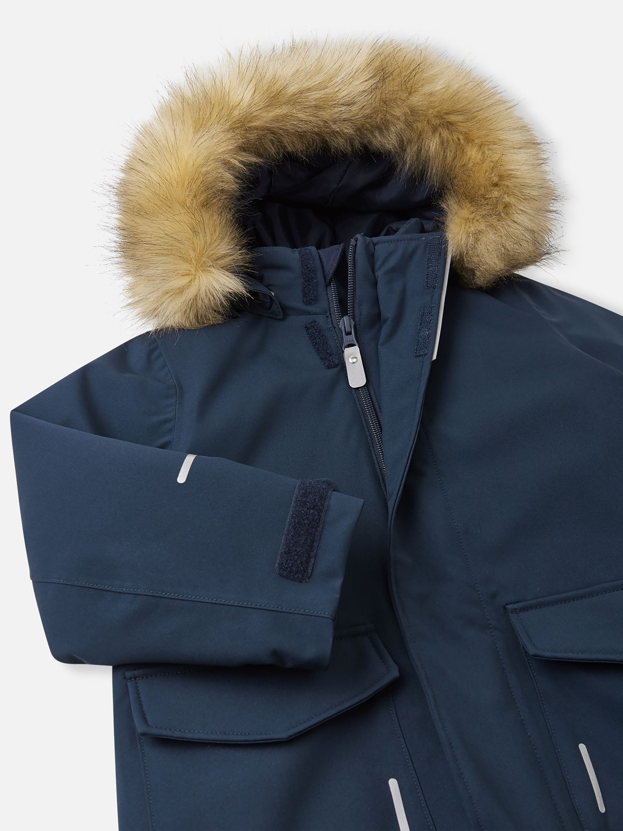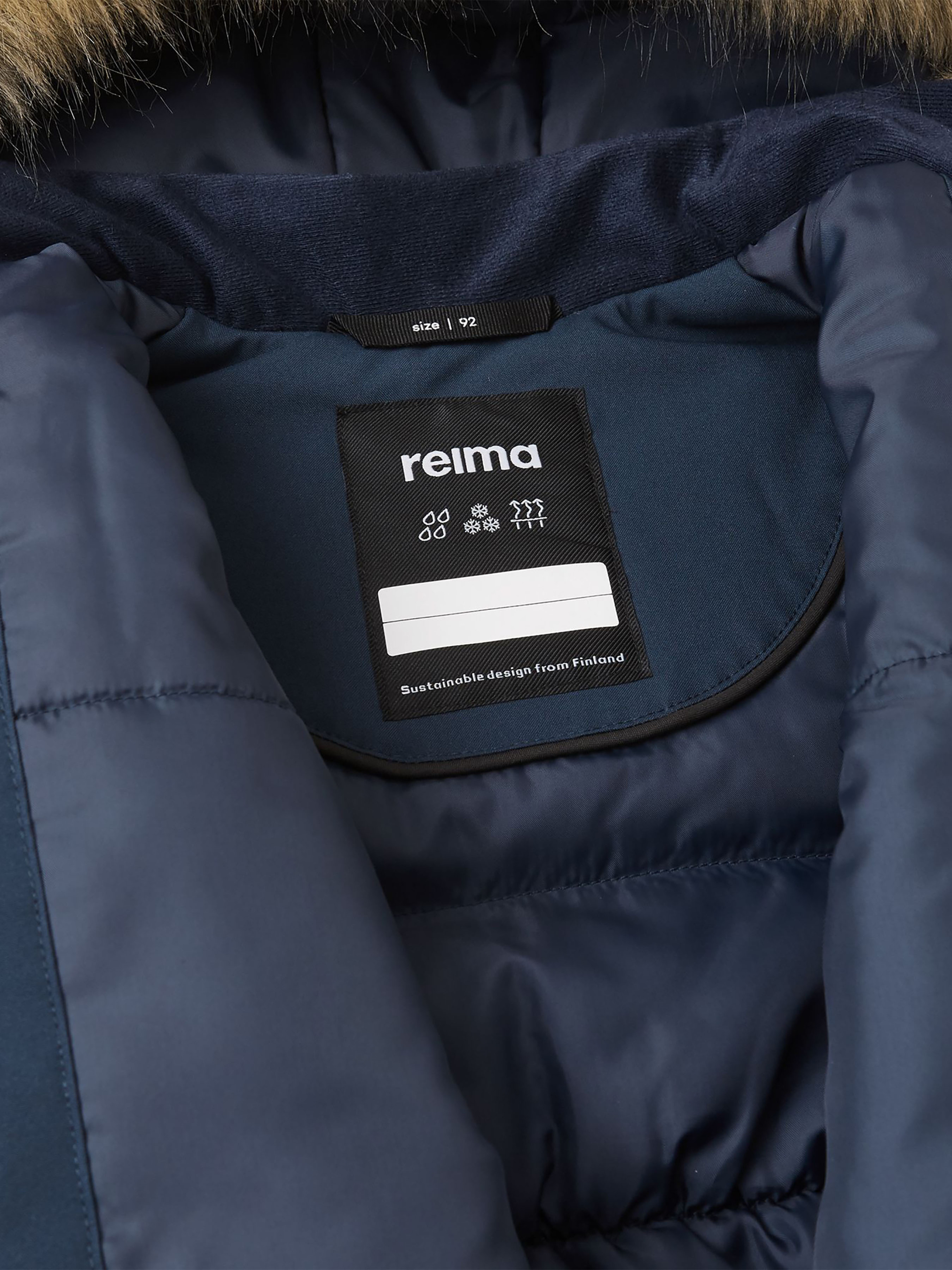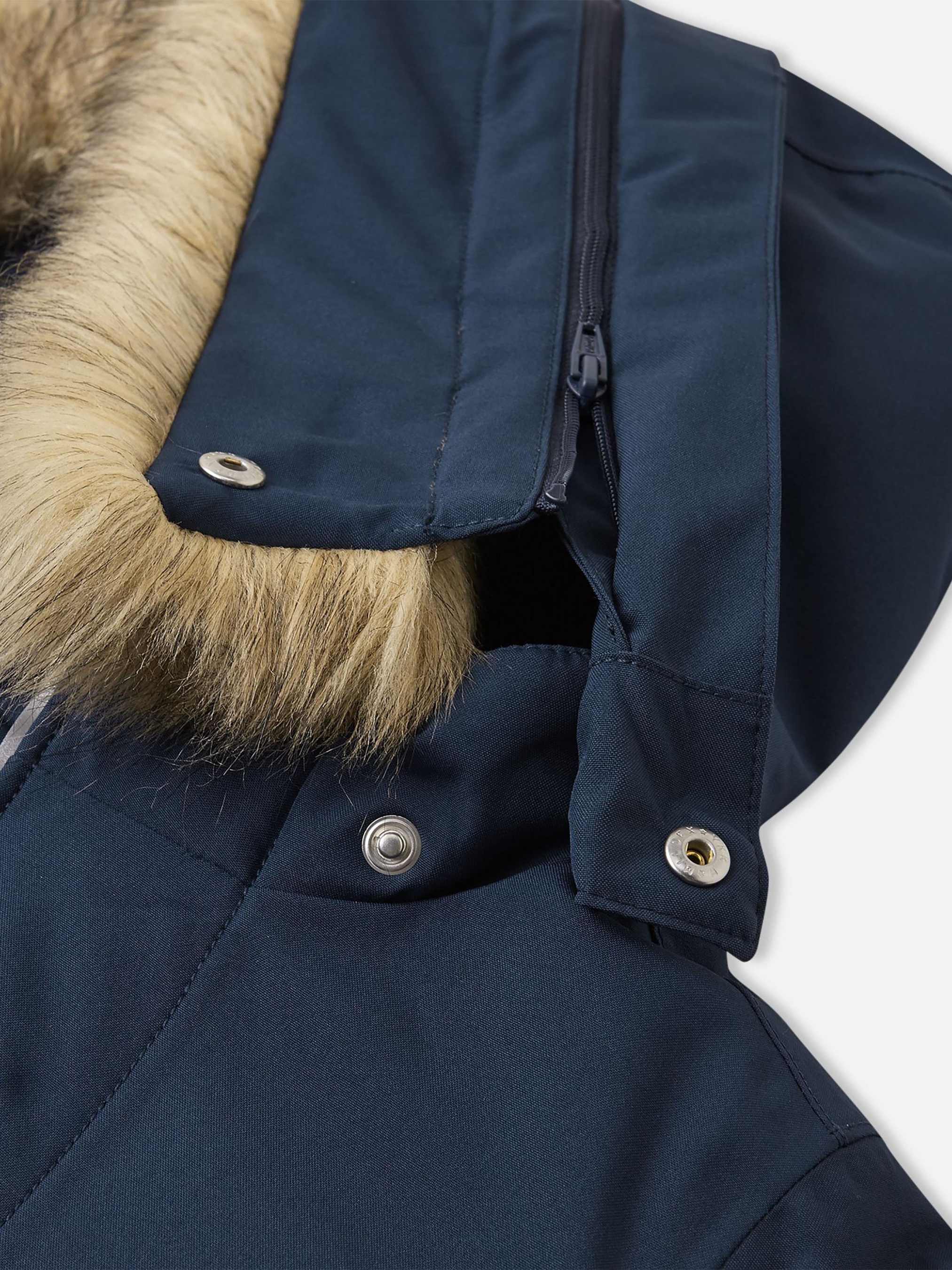 Парка зимова Reimatec Mutka Склад: 100% поліестер, з поліуретановим покриттям Матеріал: Reimatec flex BS GRS Температурний режим: 0°...-20°C Показник водонепроникності, мм: 10000 Показник повітряпровідності: 8000 Вітронепроникний матеріал Еластичний матеріал Водовідштовхувальний і брудовідштовхувальний матеріал Дозволено сушіння у пральній машині/сушильній шафі Не містить фторвуглецю Перероблений матеріал Усі шви запаяні, водонепроникні|Містить перероблені волокна із сертифікатом якості|Еластичний матеріал|Водо- та брудовідштовхуюче просочення без вмісту фторвуглеців BIONIC-FINISH®ECO|Гладка підкладка з поліестеру, що містить сертифіковане повторно перероблене волокно|Сертифікований за стандартом bluesign® утеплювач Fellex® повністю із переробленого поліестеру|Матеріал підкладки схвалено стандартом bluesign®|Безпечний капюшон, що відстібається і регулюється, зі знімним штучним хутром|Регульований обхват талії та рукави|Дві прорізні кишені|Петля для додаткових деталей, що відбивають світло Догляд: Перед пранням відстебніть штучне хутро. Застебнути блискавки та липучки. Прати миючим засобом, що не містить відбілюючих речовин. Полоскати без спеціального засобу. Щоб уникнути зміни кольору, виріб необхідно вийняти з пральної машинки відразу після закінчення програми прання. Можна сушити в сушильній шафі або центрифузі (макс. 40°C). Зимова куртка для малюків Reimatec – чудовий варіант для рухливих ігор та зимового спорту. Ця утеплена куртка-парка для дітей молодшого віку – справжня знахідка. Всі шви в ній запаяні для повної водонепроникності, а матеріал відштовхує не лише воду, а й бруд. Теплий синтепоновий утеплювач дуже еластичний і зовсім не сковує рухів. Знімний капюшон з пухнастим штучним хутром, що відстібається, абсолютно безпечний. Він легко відстібнеться, якщо випадково за щось зачепиться. Крім того, він забезпечує додатковий захист від вітру. У двох накладних кишенях вмістяться всі знайдені скарби та цінні дрібниці.