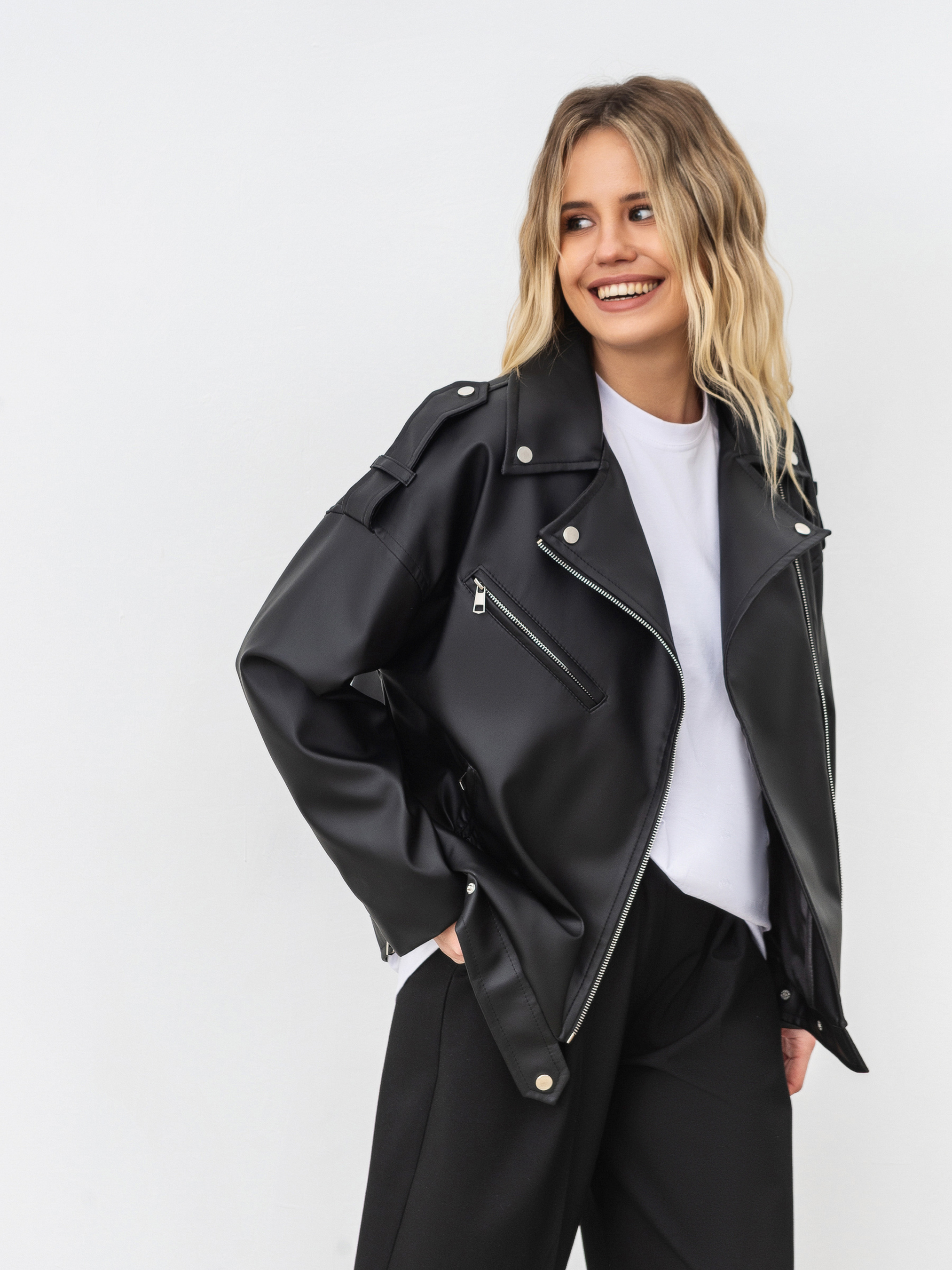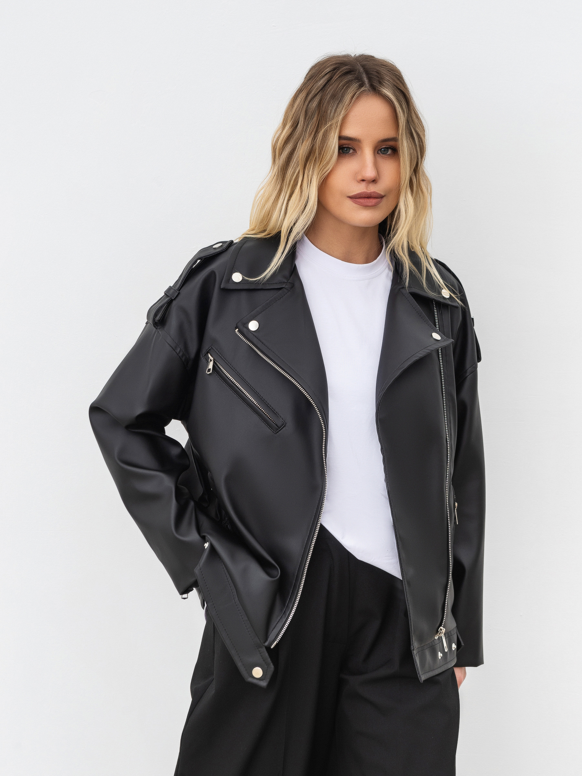 Наша найпопулярніша модель верхнього одягу на сезон весна-осінь. Ідеальна, без перебільшень, косуха з матової екошкіри фасону оверсайз. Іде у трьох розмірах. Рекомендуємо обирати на один розмір більше для вільної посадки. Косуха плотна, тримає форму. Фурнітура виконана з нікелю. Не темніє. Косуха є універсальною річчю та поєднується абсолютно з усіма речами у гардеробі. Радимо експериментувати з поєднаннями: наприклад, накинути косуху на діловий костюм (піджак Уельс, брюки Хельсінки), ніжну жіночну сукню (Альбі, Елва, Ірвін,Соррент) або на повсякденний образ із джинсами Таллін та базовою футболкою Мойта. Варіацій є безліч, потрібна лише дрібка фантазії та любов до стилю! Колір виробу на фотографії може відрізнятися від реального кольору товару, що пов'язано з особливостями передачі кольору на моніторі, налаштуваннями фотоапаратури чи іншими факторами. " XS|S: довжина по спині 63 см, довжина рукава від горла 71 см, напівобхват грудей 50 см S|M: довжина по спині 65 см, довжина рукава від горла 72 см, напівобхват грудей 51 см M|L: довжина по спині 66 см, довжина рукава від горла 74 см, напівобхват грудей 54 см L-XL довжина по спині 62 см, довжина рукава від горла 75 см, напівобхват грудей 56 см XL-2XL Довжина по спині : 67 см ,довжина рукава від горла 80 см, Напівобхват грудей : 57 см