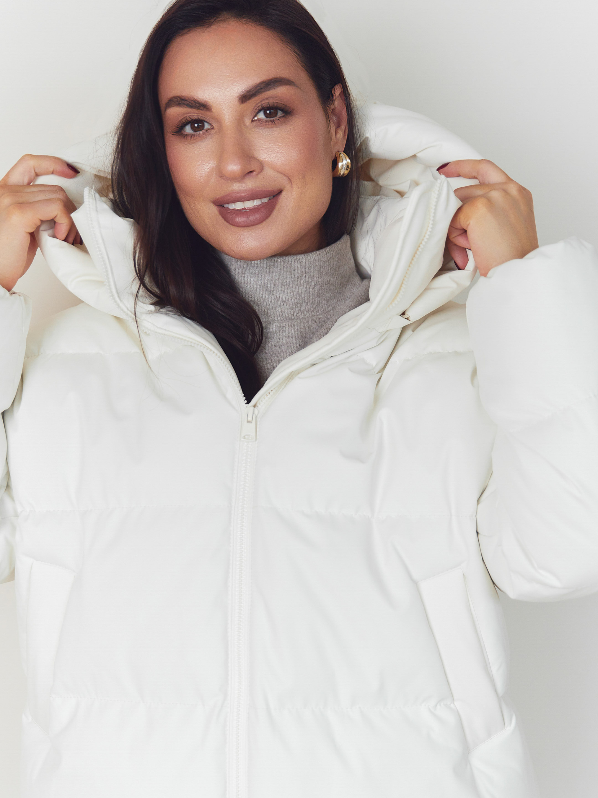 Куртка Seventeen 2347. | Winter 25 part 2 Зимова куртка в білому кольорі — мов тиха сила холодного сезону. Вона огортає простір навколо фігури, даруючи відчуття захищеності, тепла й свободи руху. Модель створена для зими, де комфорт має бути безкомпромісним, а силует — сучасним і впевненим. Фасон Вільний крій з приспущеною лінією рукава формує розслаблений, актуальний об’єм. Куртка легко вписується у багатошарові образи, не обмежує рухів і добре сідає на різні типи фігур. Зйомний капюшон додає універсальності — ви самі обираєте настрій образу. Затяжка по низу дозволяє регулювати посадку та захищає від холодного повітря. Матеріал Верх виконаний із плащівки Вента — міцної, зносостійкої та практичної тканини, розрахованої на зимові умови. Наповнювач — набивний синтепух 250, який добре утримує тепло, зберігаючи легкість виробу та комфорт при щоденному носінні. Деталі Декоративна відстрочка підкреслює форму моделі, фурнітура (блискавка, резинка, зажими) виконує не лише функціональну, а й стилістичну роль. Капюшон додає захисту від вітру та снігу, залишаючи образ цілісним і продуманим. S–M: обхват грудей 84–88 см, талії 68–72 см, стегон 92–96 см, довжина виробу — 75 см, довжина рукава — 61 см L–XL: обхват грудей 92–96 см, талії 76–81 см, стегон 100–105 см, довжина виробу — 76 см, довжина рукава — 61 см 2XL–3XL: обхват грудей 100–105 см, талії 86–91 см, стегон 110–115 см, довжина виробу — 77 см, довжина рукава — 61 см