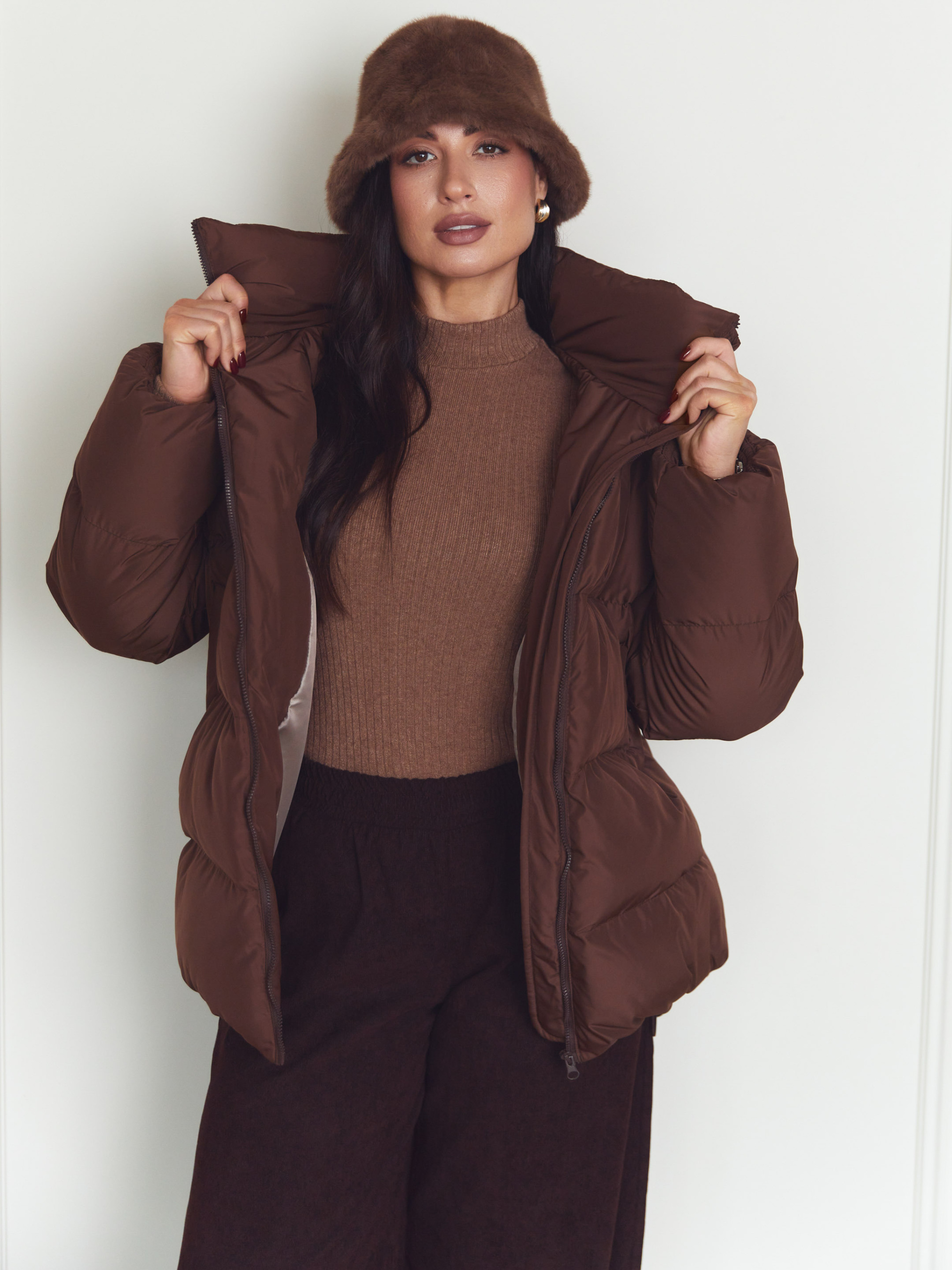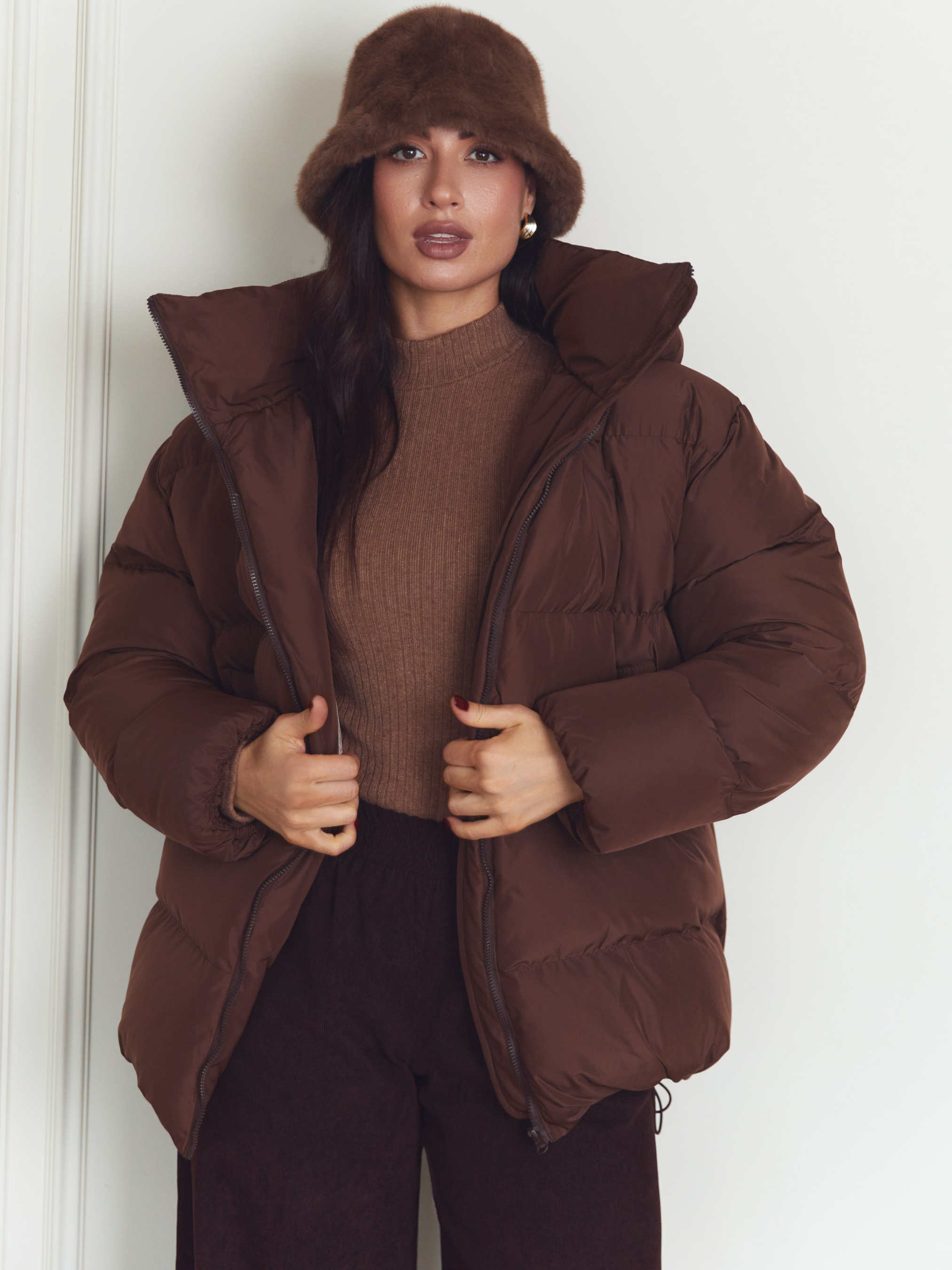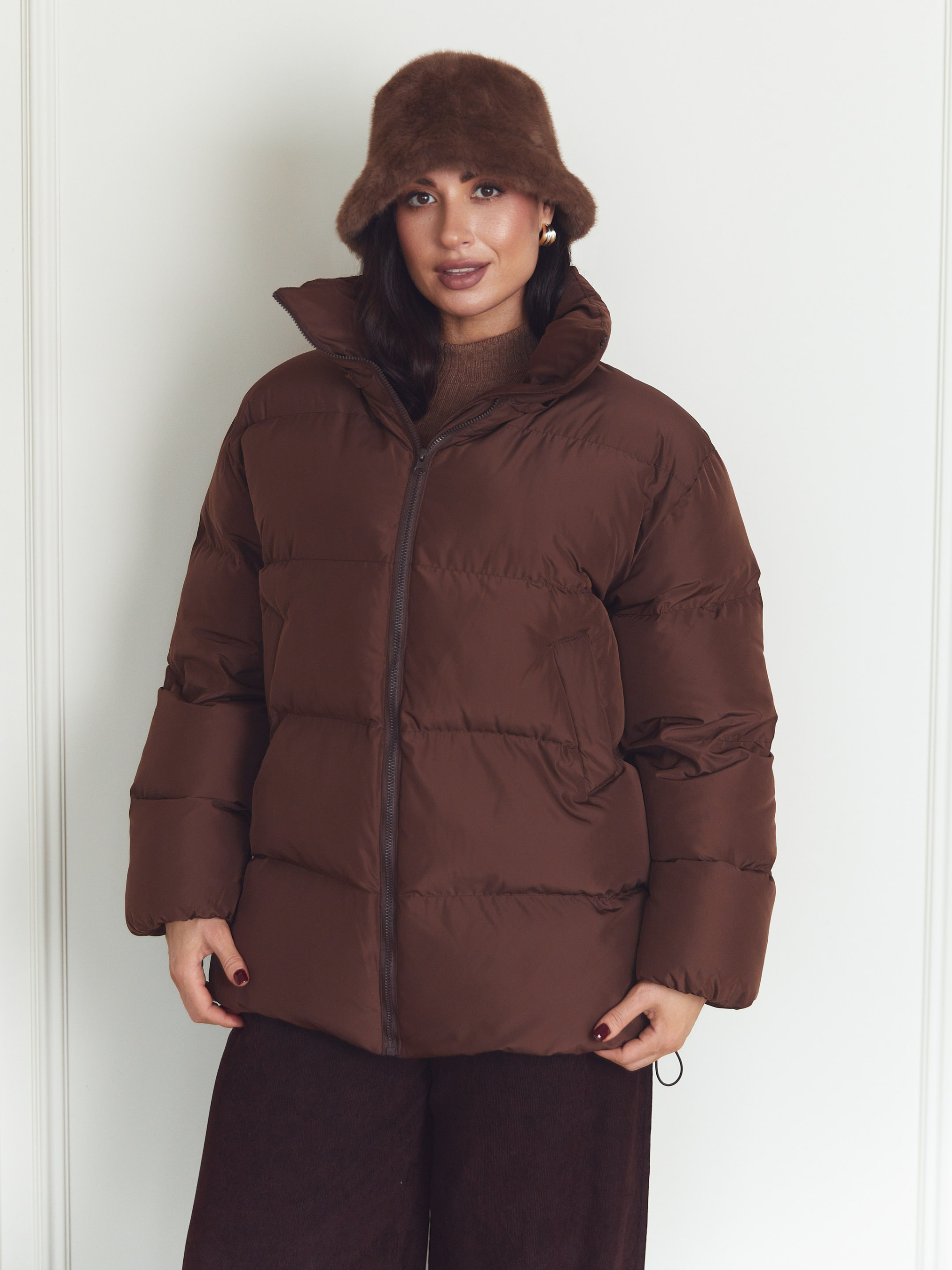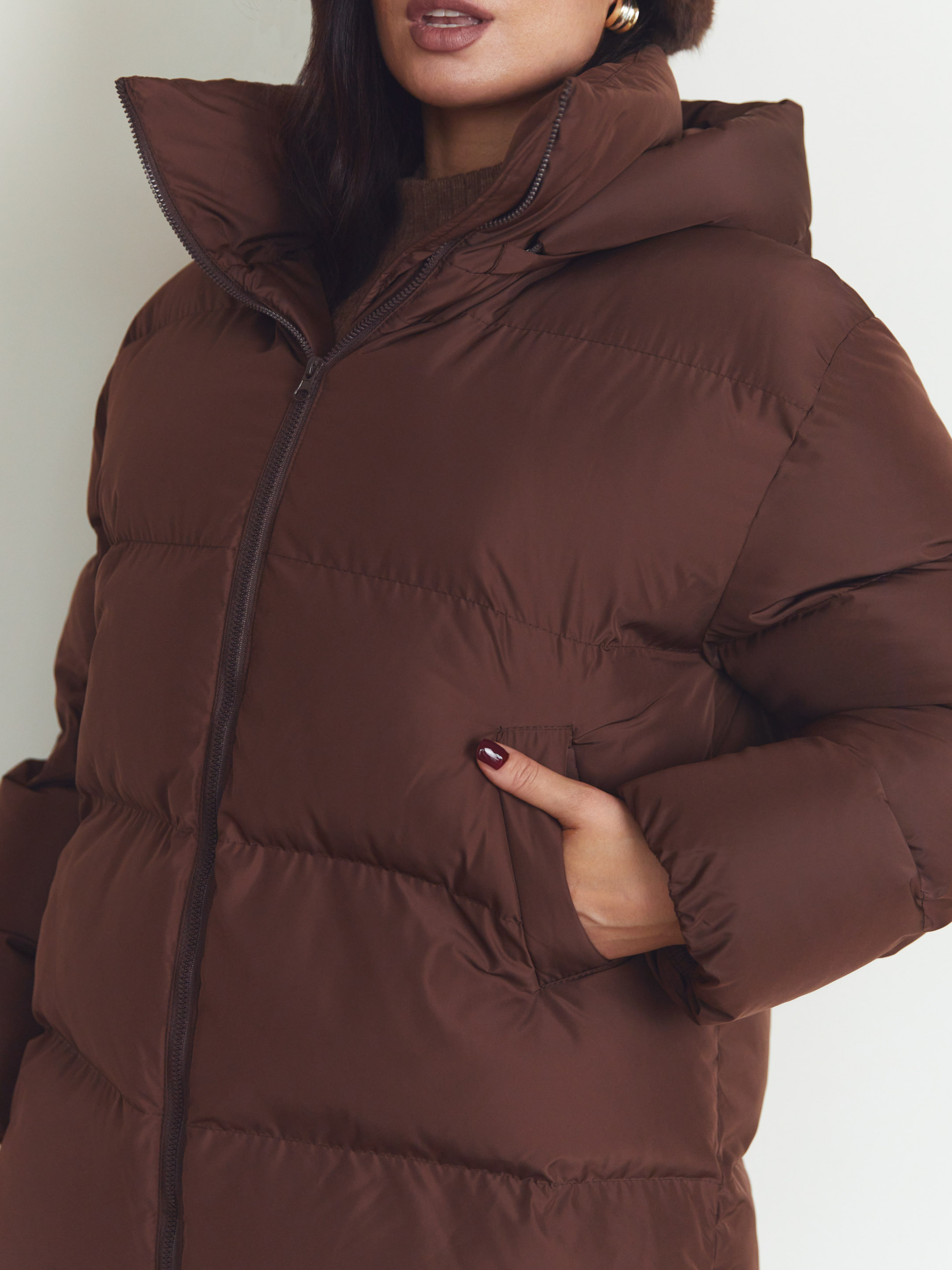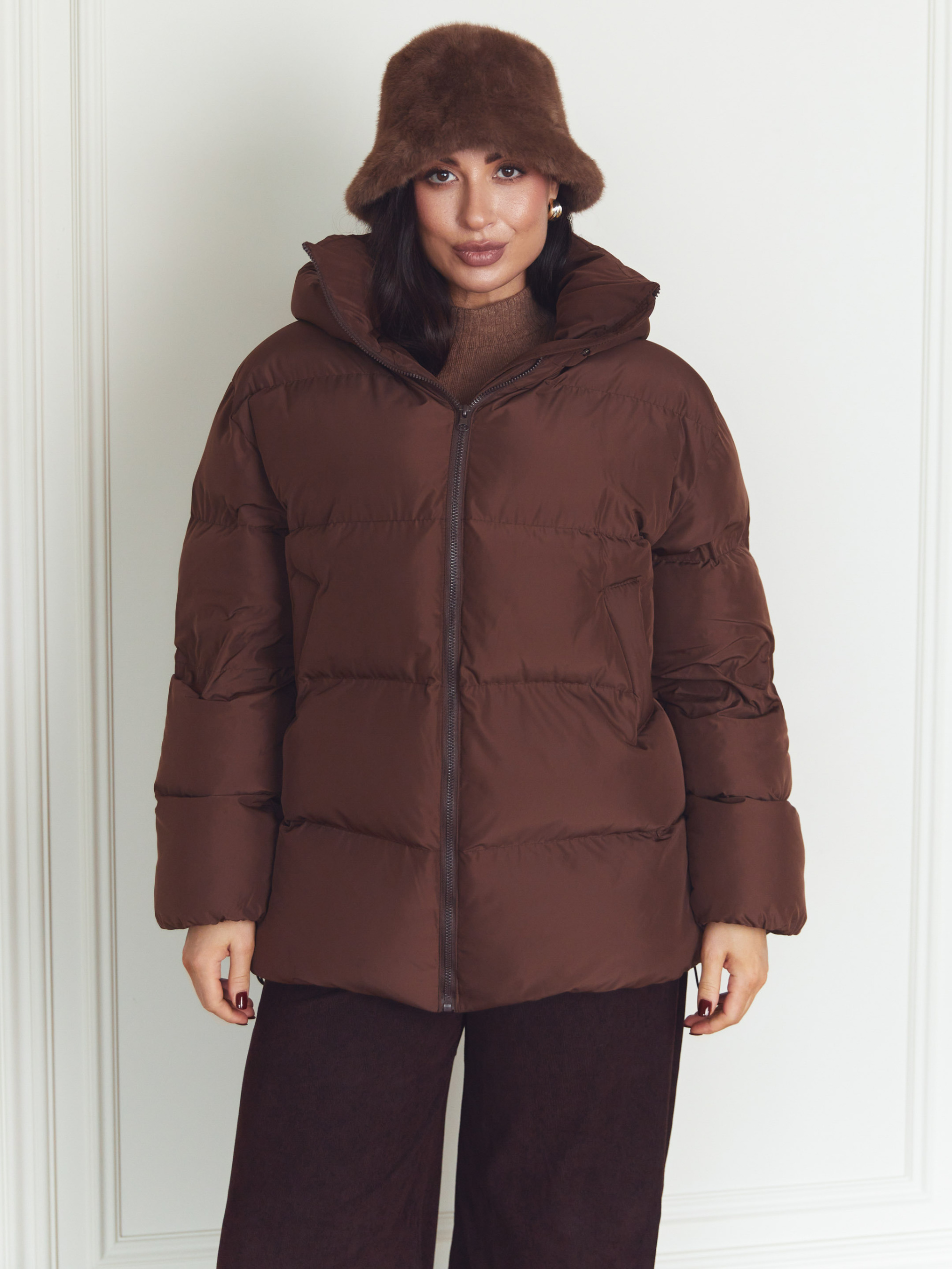 Куртка Seventeen 2347. | Winter 25 part 2 Зимова куртка в шоколадному кольорі — мов тиха сила холодного сезону. Вона огортає простір навколо фігури, даруючи відчуття захищеності, тепла й свободи руху. Модель створена для зими, де комфорт має бути безкомпромісним, а силует — сучасним і впевненим. Фасон Вільний крій з приспущеною лінією рукава формує розслаблений, актуальний об’єм. Куртка легко вписується у багатошарові образи, не обмежує рухів і добре сідає на різні типи фігур. Зйомний капюшон додає універсальності — ви самі обираєте настрій образу. Затяжка по низу дозволяє регулювати посадку та захищає від холодного повітря. Матеріал Верх виконаний із плащівки Вента — міцної, зносостійкої та практичної тканини, розрахованої на зимові умови. Наповнювач — набивний синтепух 250, який добре утримує тепло, зберігаючи легкість виробу та комфорт при щоденному носінні. Деталі Декоративна відстрочка підкреслює форму моделі, фурнітура (блискавка, резинка, зажими) виконує не лише функціональну, а й стилістичну роль. Капюшон додає захисту від вітру та снігу, залишаючи образ цілісним і продуманим. S–M: обхват грудей 84–88 см, талії 68–72 см, стегон 92–96 см, довжина виробу — 75 см, довжина рукава — 61 см L–XL: обхват грудей 92–96 см, талії 76–81 см, стегон 100–105 см, довжина виробу — 76 см, довжина рукава — 61 см 2XL–3XL: обхват грудей 100–105 см, талії 86–91 см, стегон 110–115 см, довжина виробу — 77 см, довжина рукава — 61 см