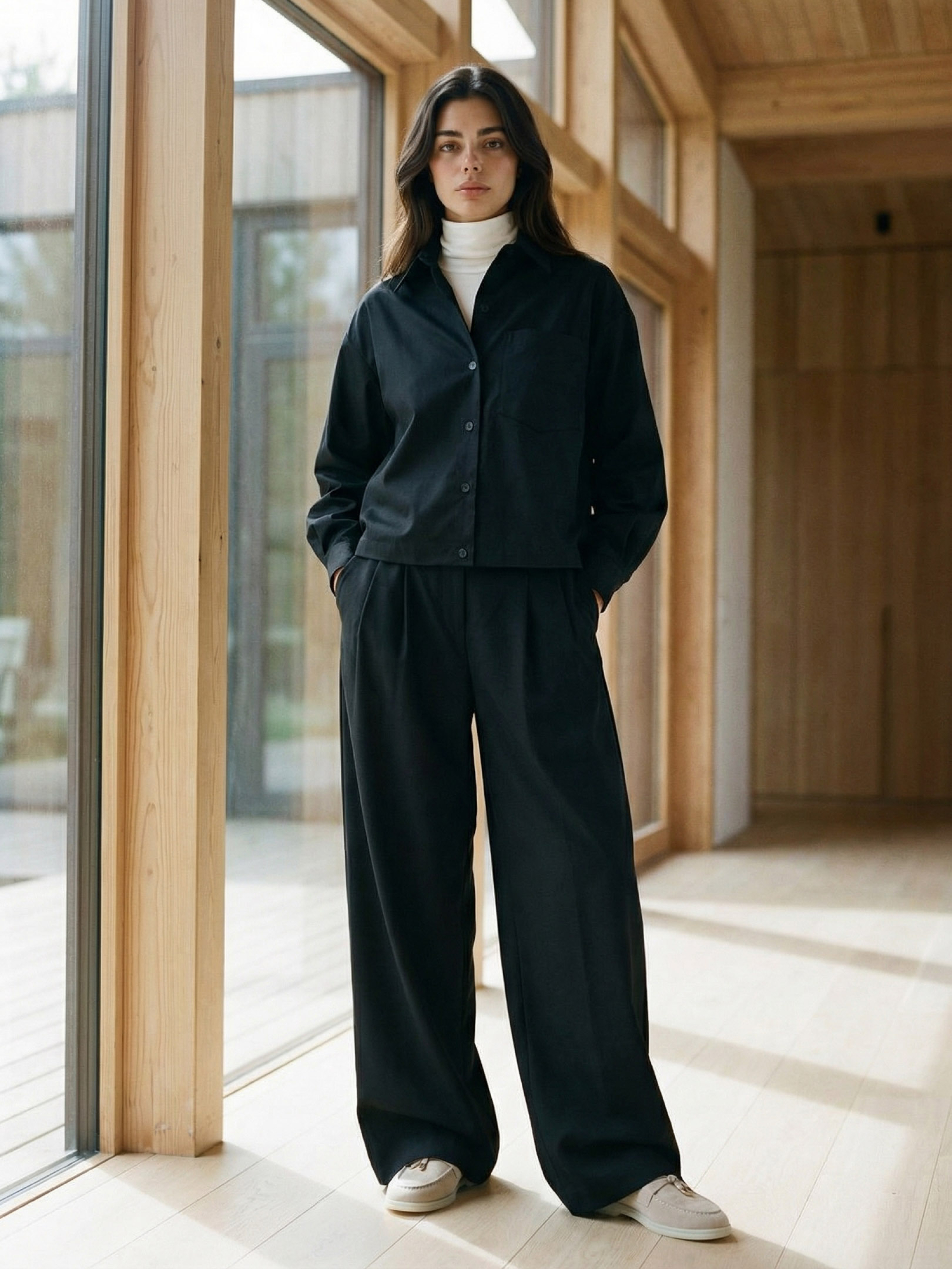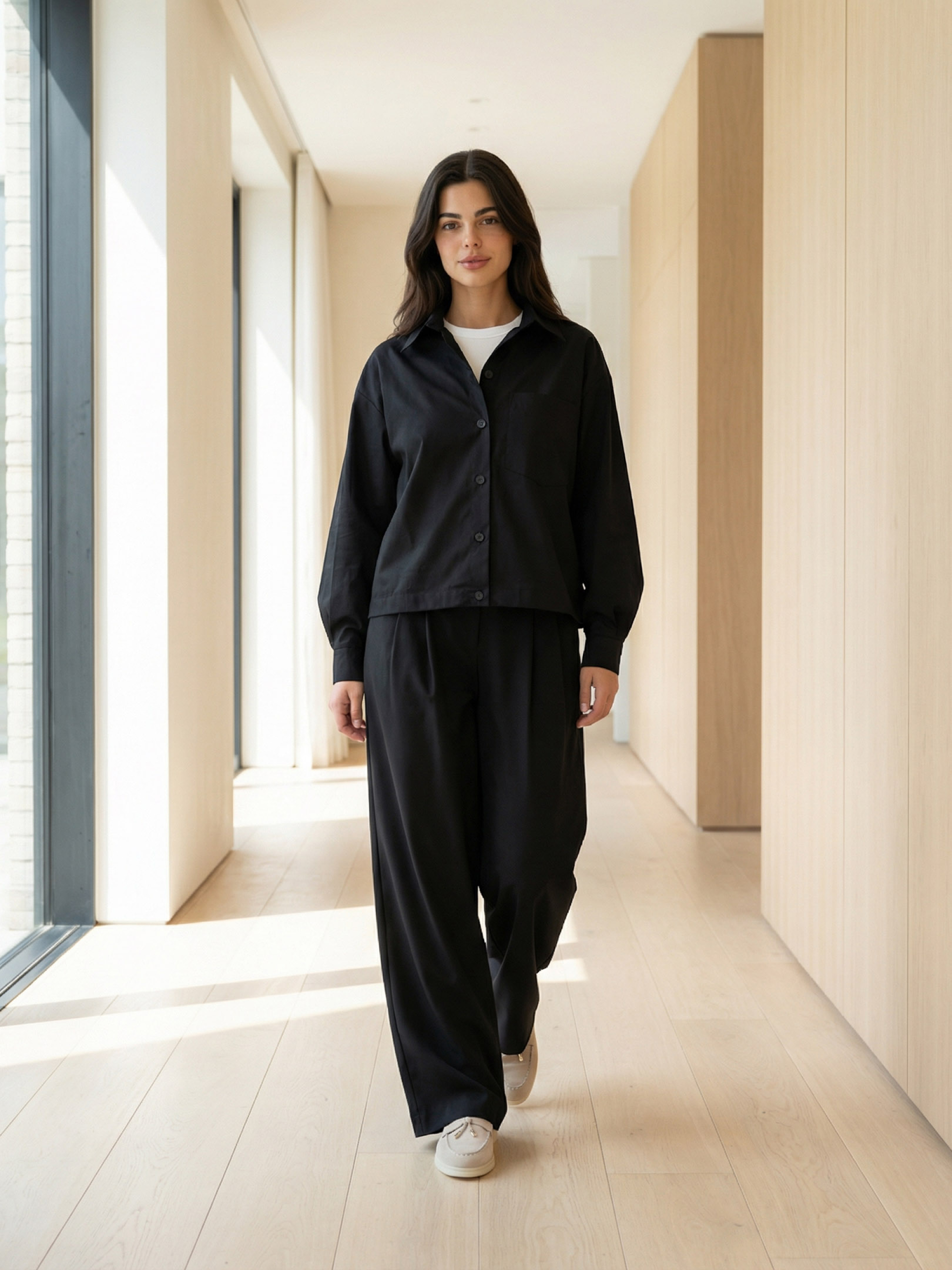 Жіноча демісезонна сорочка зі стрейч-котону — стильна та комфортна модель для повсякденних образів. Натуральна тканина з додаванням еластичних волокон приємна до тіла, добре пропускає повітря та забезпечує свободу рухів протягом дня. Чорний колір робить модель універсальною та легкою для поєднання з різними елементами гардероба. Сорочка має прямий вільний фасон, що створює сучасний силует та підходить для різних типів фігури. Конструкція доповнена класичним сорочковим коміром та цільнокрійною планкою на ґудзиках. Практична накладна кишеня додає функціональності, а декоративна затяжка по низу з фіксаторами дозволяє регулювати посадку та створювати більш об’ємний або приталений силует. Модель чудово поєднується з джинсами, класичними штанами, спідницями або шортами, підходить для офісних, повсякденних та міських образів у демісезонний період. S-M: Обхват грудей: 84-88 см; Обхват талії: 68-72 см; Обхват стегон: 92-96 см. L-XL: Обхват грудей: 92-96 см; Обхват талії: 76-81 см; Обхват стегон: 100-105 см. 2XL-3XL: Обхват грудей: 100-105 см; Обхват талії: 86-91 см; Обхват стегон: 110-115 см. Довжина виробу: S–M — 54 см. L-XL = 57 см. XXL-3XL = 59 см. Довжина рукава: S–M — 55 см. L-XL = 55 см. XXL-3XL = 55 см. Догляд за одягом: Ручне прання при температурі до 30°C. Характеристики: Колекція - Pre-spring 26 part 2 Матеріал - стрейч-котон Колір - чорний Фурнітура - ґудзики, резинка, зажими Фасон - прямий, вільний Сезон - демісезон Декоративні елементи - затяжка по низу, накладна кишеня Конструктивні елементи - цільнокрійна планка, сорочковий комір Комплектація - сорочка Догляд за одягом - ручне прання до 30°