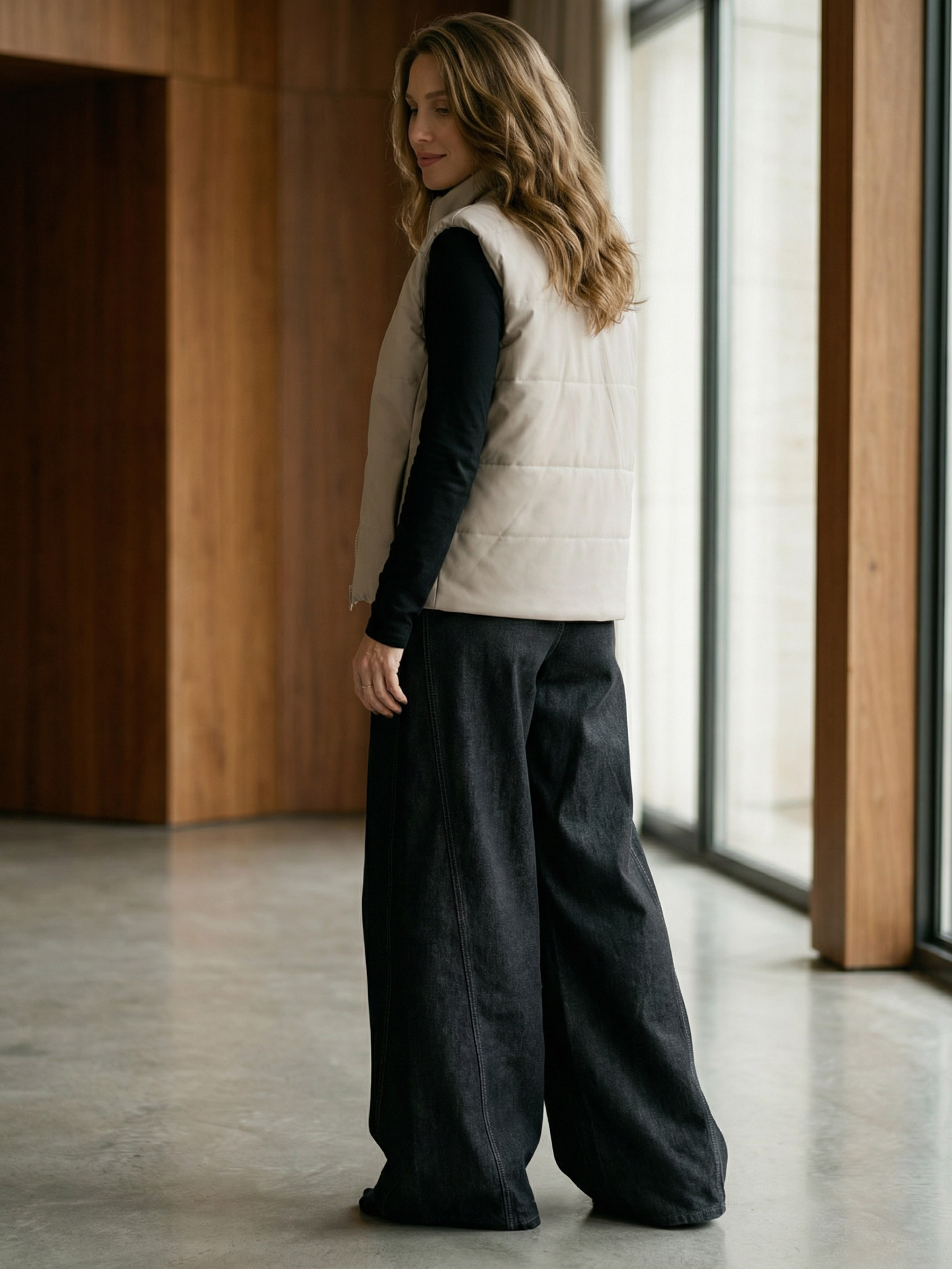 Жіночий демісезонний жилет із плащової тканини — практична та стильна модель для міжсезоння. Верх виконаний із плащівки Еммі, яка добре захищає від вітру та прохолоди, а легкий наповнювач синтепух забезпечує комфортне тепло без зайвого об’єму. Чорний колір робить модель універсальною та легкою для поєднання з різними елементами гардероба. Жилет має прямий вільний фасон, що створює сучасний силует і забезпечує свободу рухів. Модель доповнена центральною застібкою на блискавці, практичними кишенями та конструктивним переносом бокового шва, що формує акуратну посадку. Низ виробу оснащений резинкою із зажимами для регулювання об’єму, а еластичні елементи в проймах забезпечують зручність під час носіння. Жилет із колекції Pre-Spring 26 легко комбінується з худі, світшотами, сорочками або трикотажем, а також чудово поєднується з джинсами, спортивними штанами чи спідницями, створюючи стильні повсякденні образи у демісезонний період. S-M: Обхват грудей: 84-88 см; Обхват талії: 68-72 см; Обхват стегон: 92-96 см. L-XL: Обхват грудей: 92-96 см; Обхват талії: 76-81 см; Обхват стегон: 100-105 см. 2XL-3XL: Обхват грудей: 100-105 см; Обхват талії: 86-91 см; Обхват стегон: 110-115 см. Довжина виробу: S-M = 59 см, L-XL = 61 см, XXL-3XL = 63 см Догляд за одягом: Ручне прання при температурі до 30°C. Характеристики Колекція Pre-spring 26 part 3 Матеріал плащівка Еммі, наповнювач: набивний синтепух 100 Колір сірий Фурнітура блискавка, резинка, зажими Фасон прямий, вільний Сезон демісезон Конструктивні елементи перенос бокового шва, резинка на рукаві, кишені Комплектація жилет Догляд за одягом ручне прання до 30°