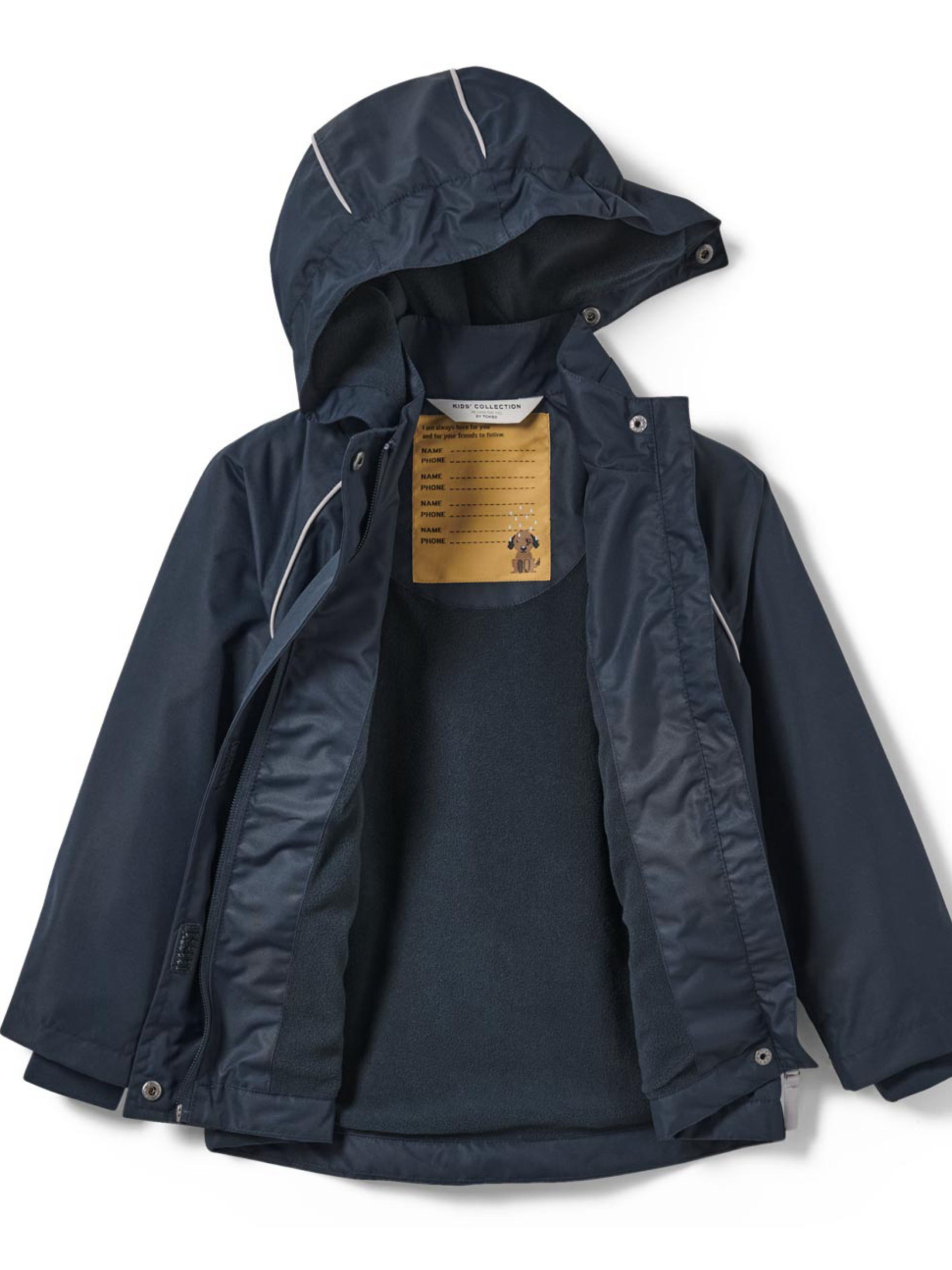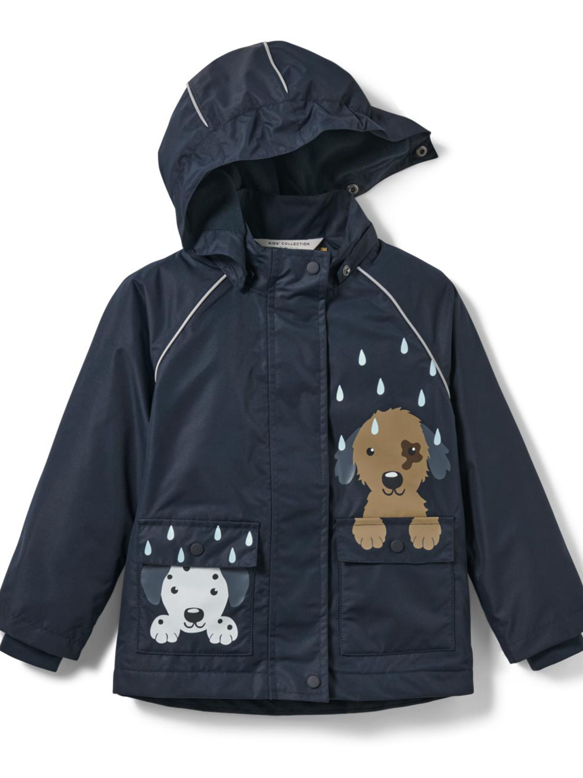 Функціональна куртка, розроблена для прохолодної, вітряної та дощової погоди. Поєднує водонепроникність, теплоізоляцію та зручність завдяки м’якій підкладці з мікрофлісу та надійним функціональним деталям. Особливості: Вітронепроникна, водонепроникна та дихаюча Верхній шар витримує тиск водяного стовпа до 5000 мм Герметичні шви та екологічно чисте водовідштовхувальне покриття evoPel М’яка флісова підкладка для додаткового тепла Знімний капюшон М’які ребристі манжети Передня блискавка з вітрозахисною планкою Бейдж для імені на внутрішній стороні Світловідбиваючі елементи для кращої видимості в темну пору Виготовлена з переробленого матеріалу – екологічно відповідальний вибір Склад матеріалу: Основна тканина: 100% поліестер (перероблений) Манжети: 90% поліестер (перероблений), 10% еластан Колір: Темно-синій з принтом собаки Розмір 98–104 см: ПОГ: 36 см Довжина рукава: 42 см Довжина: 42 см Діапазон розмірів / орієнтовний вік: 74/80 (6–12 місяців) 86/92 (12–24 місяці) 98/104 (2–4 роки) 110/116 (4–6 років) 122/128 (6–8 років) Одяг бренду Tchibo зазвичай не має паперових етикеток. У більшості випадків внутрішні бірки зі складом тканини, назвою бренду або розміром зрізані частково або повністю.