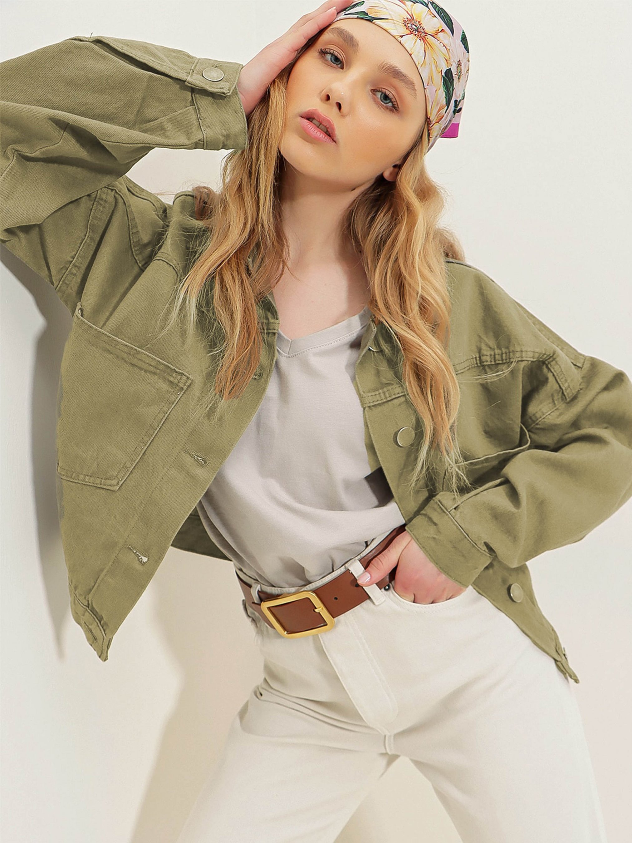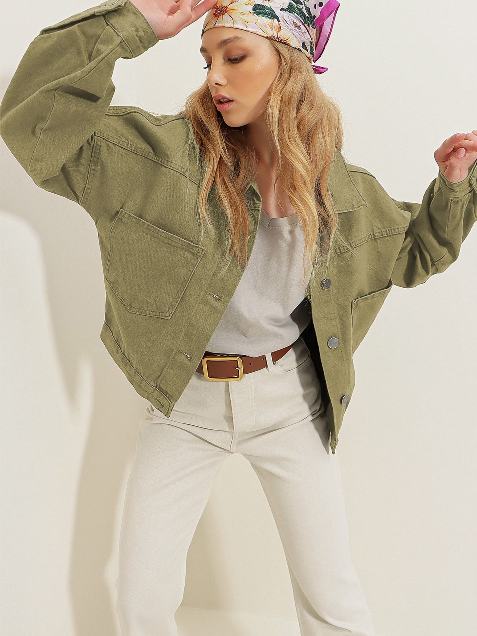 Джинсова куртка Trend Alacati Stili модель ALC-X3631-RV/NEFTI HAKI