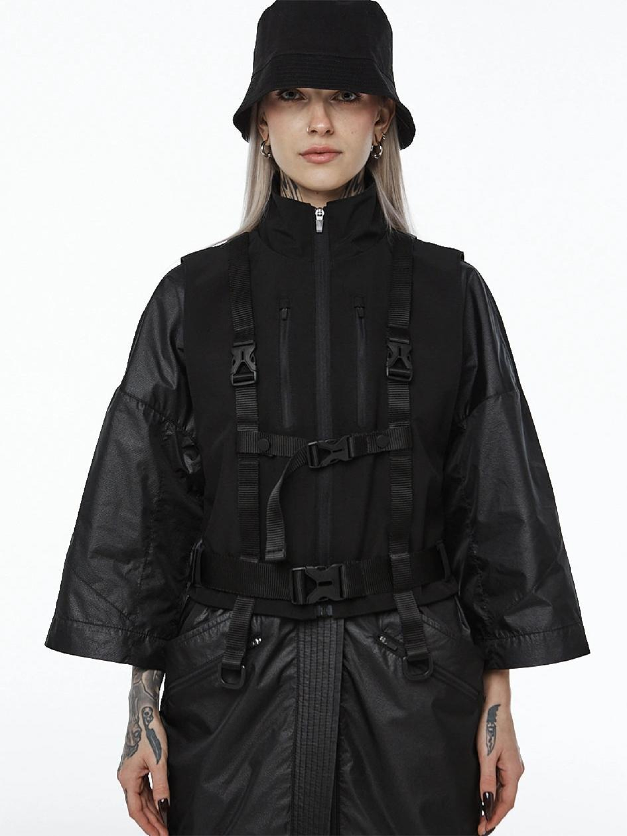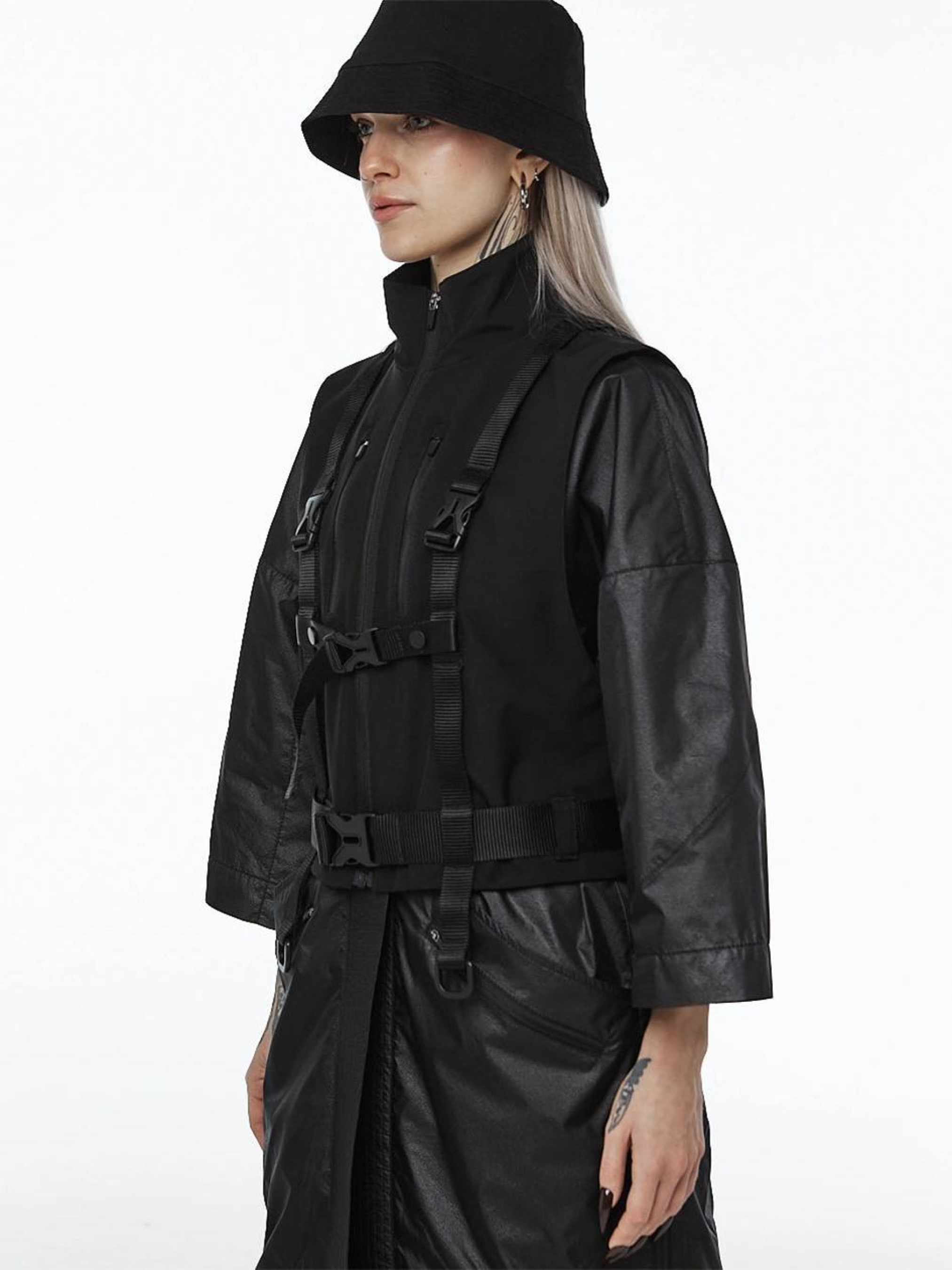 Опис матеріалів та фурнітури: Плащівка Особливості тканини: Легка Не парить Зносостійка Технологічний вигляд Має водовідштовхувальні властивості Ключові особливості моделі: Жилет із коміром-стійкою. Виготовлений із технологічного матеріалу CPN, який зовні має приємну на дотик щільну плащівку, а з внутрішнього боку – трикотажний шар. Жилет оснащений ремінною системою, що імітує портупею, має два напівкільця для приєднання підсумків і брелоків. На спинці – кишеня на блискавці. Рекомендації по догляду: Машинне прання при макс. 30 ºC Не можна використовувати відбілювач Хімчистка заборонена