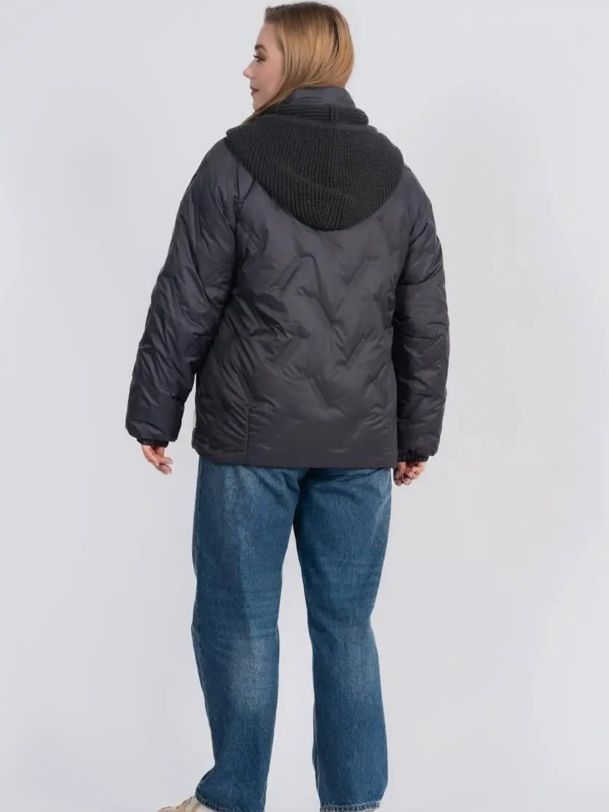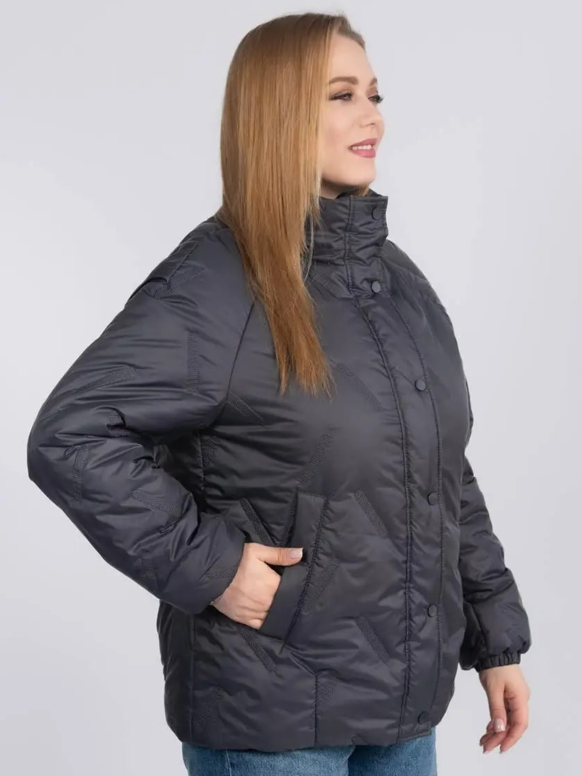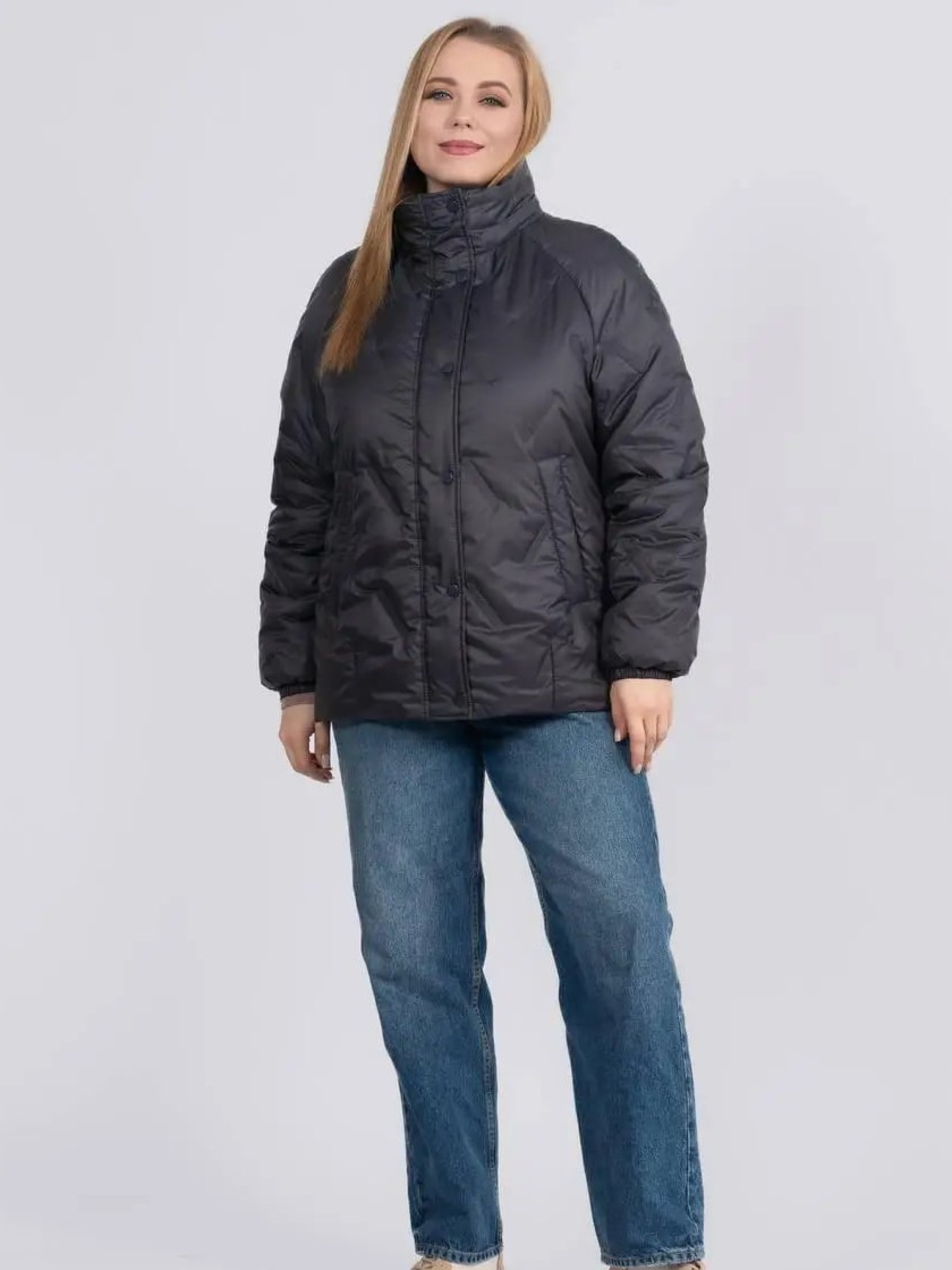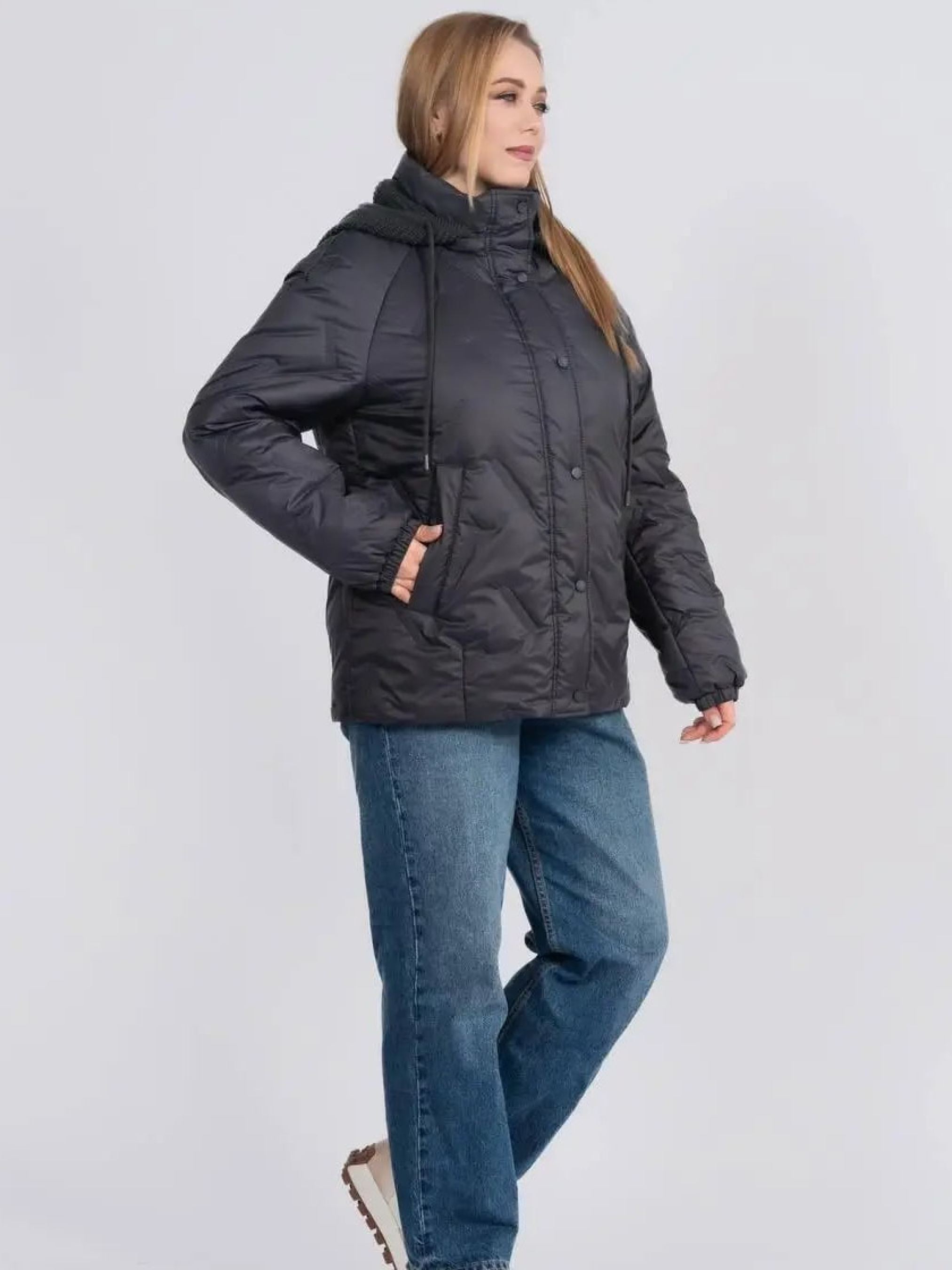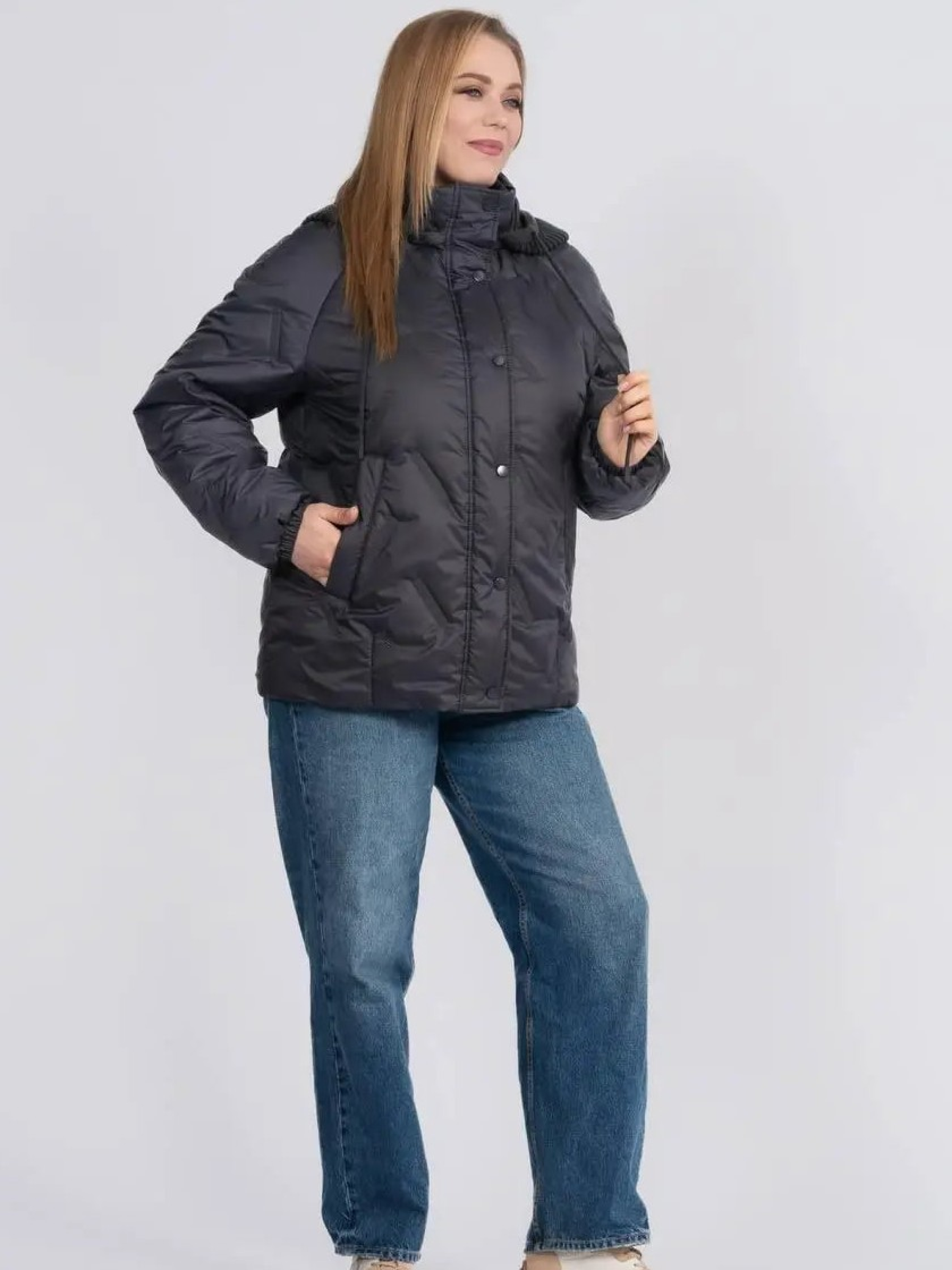 Стильна та практична весняна куртка прямого фасону створена для комфортних щоденних образів у мінливу погоду. Модель доповнена в’язаним зйомним каптуром на кнопках, який додає виробу затишку та дозволяє легко змінювати стиль — від більш спортивного до лаконічного міського. Комфортна довжина гармонійно поєднується як із джинсами, так і зі спідницями, забезпечуючи свободу рухів і зручність протягом дня. Рукав реглан забезпечує м’яку посадку по плечах і додатковий комфорт, а надійна застібка на блискавку, доповнена планкою з кнопками, ефективно захищає від вітру. Модель оснащена зручними прорізними кишенями, що додають практичності у щоденному використанні, а також додатковою місткою внутрішньою кишенею, яка дозволяє безпечно зберігати необхідні дрібниці — телефон, документи чи ключі. Куртка стане універсальною базою весняного гардероба, поєднуючи сучасний дизайн, практичність і легкість у догляді.Розмір 46: ПОГ – 55, ПОС – 58, Довжина рукава (реглан) – 77, Довжина виробу – 67,5 Розмір 48: ПОГ – 57, ПОС – 60, Довжина рукава (реглан) – 77,5, Довжина виробу – 68 Розмір 50: ПОГ – 59, ПОС – 62, Довжина рукава (реглан) – 78, Довжина виробу – 68,5 Розмір 52: ПОГ – 61, ПОС – 64, Довжина рукава (реглан) – 78,5, Довжина виробу – 69 Розмір 54: ПОГ – 63, ПОС – 66, Довжина рукава (реглан) – 79, Довжина виробу – 69,5 Розмір 56: ПОГ – 65, ПОС – 68, Довжина рукава (реглан) – 79,5, Довжина виробу – 70 Розмір 58: ПОГ – 67, ПОС – 70, Довжина рукава (реглан) – 80, Довжина виробу – 70,5 Розмір 60: ПОГ – 69, ПОС – 72, Довжина рукава (реглан) – 80,5, Довжина виробу – 71 Розмір 62: ПОГ – 71, ПОС – 74, Довжина рукава (реглан) – 81, Довжина виробу – 71,5 Розмір 64: ПОГ – 73, ПОС – 76, Довжина рукава (реглан) – 81,5, Довжина виробу – 72