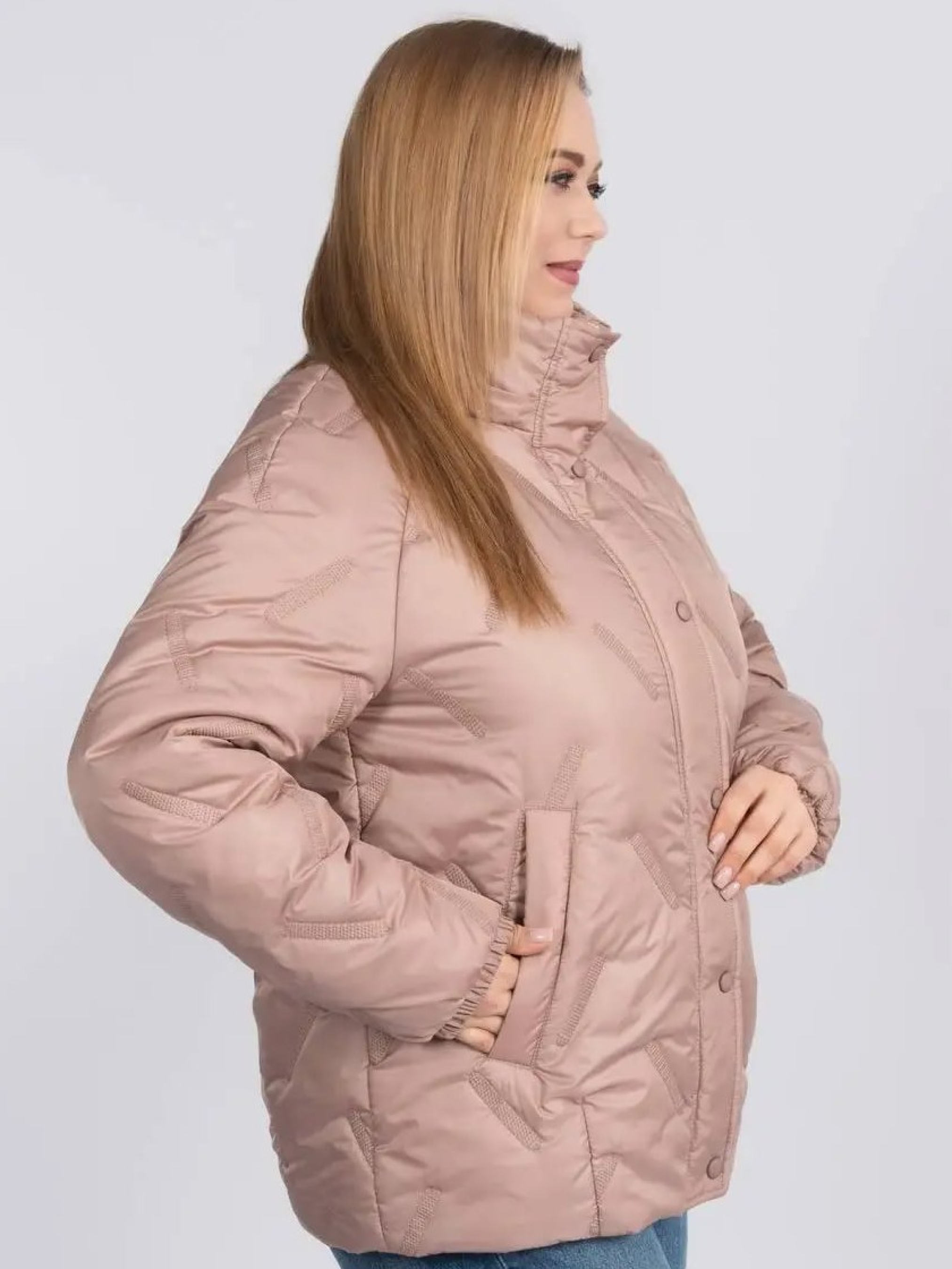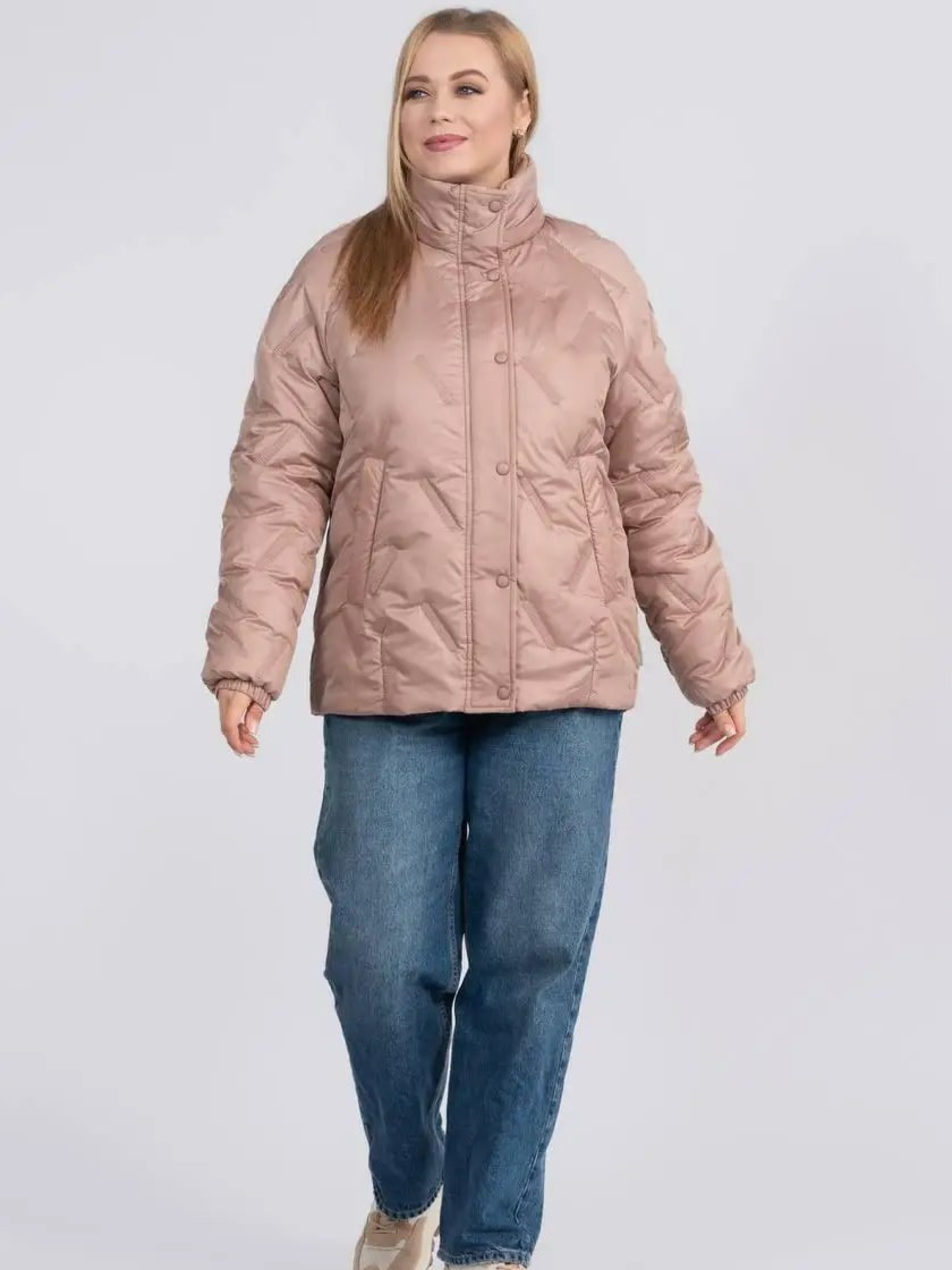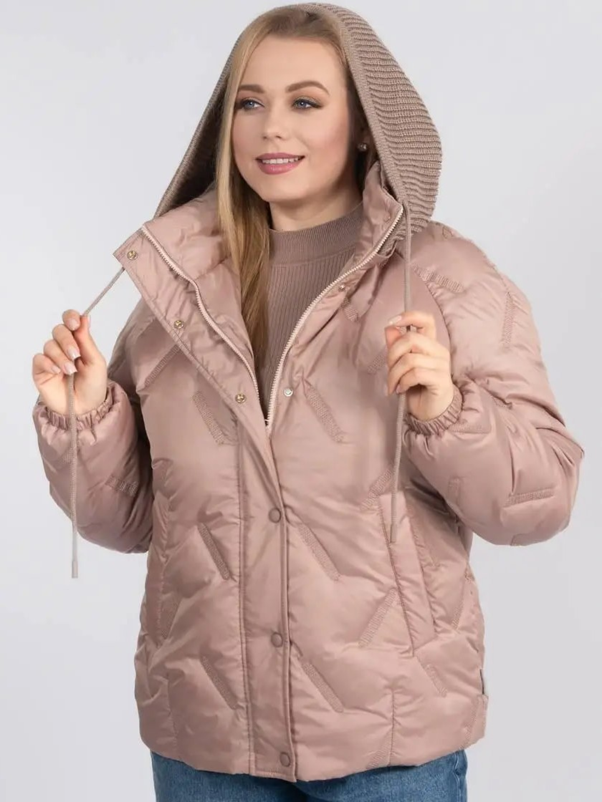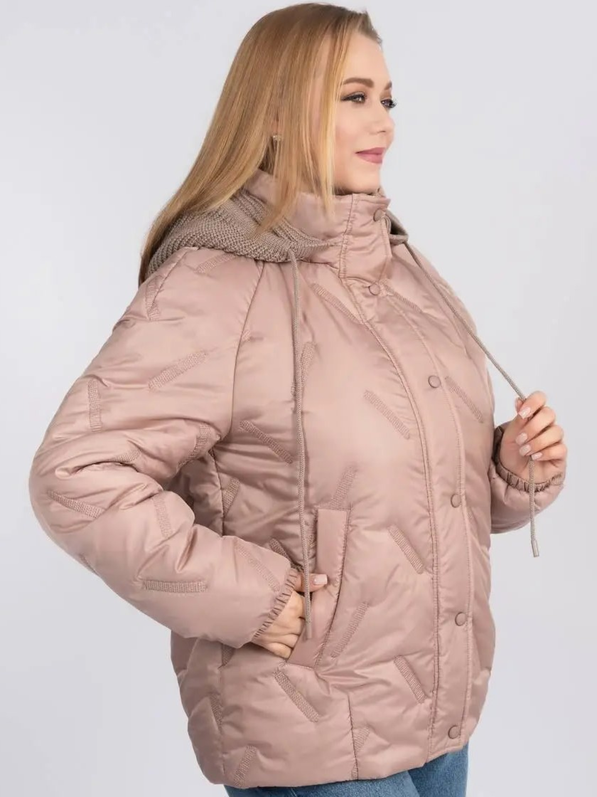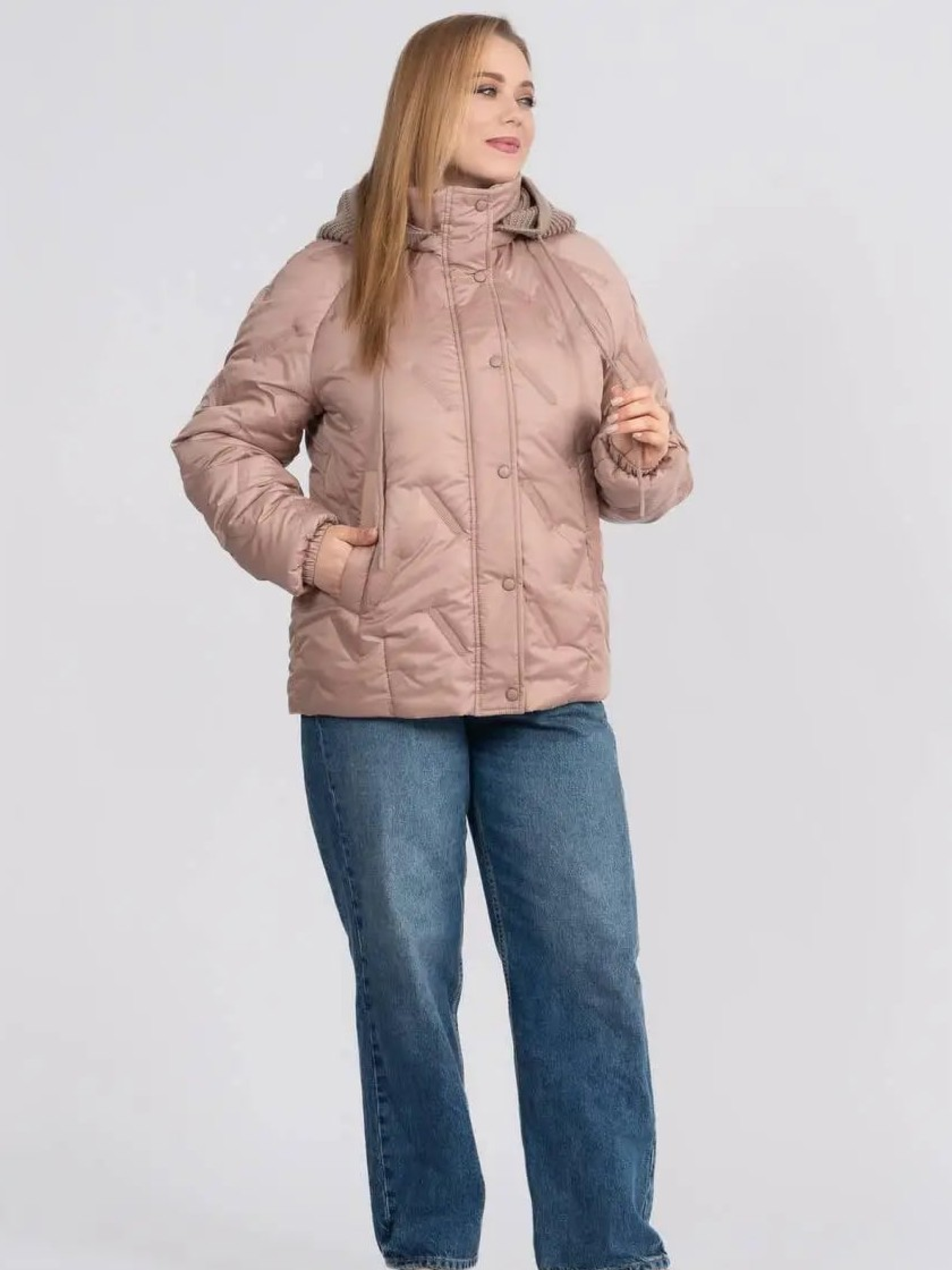 Стильна та практична весняна куртка прямого фасону створена для комфортних щоденних образів у мінливу погоду. Модель доповнена в’язаним зйомним каптуром на кнопках, який додає виробу затишку та дозволяє легко змінювати стиль — від більш спортивного до лаконічного міського. Комфортна довжина гармонійно поєднується як із джинсами, так і зі спідницями, забезпечуючи свободу рухів і зручність протягом дня. Рукав реглан забезпечує м’яку посадку по плечах і додатковий комфорт, а надійна застібка на блискавку, доповнена планкою з кнопками, ефективно захищає від вітру. Модель оснащена зручними прорізними кишенями, що додають практичності у щоденному використанні, а також додатковою місткою внутрішньою кишенею, яка дозволяє безпечно зберігати необхідні дрібниці — телефон, документи чи ключі. Куртка стане універсальною базою весняного гардероба, поєднуючи сучасний дизайн, практичність і легкість у догляді.Розмір 46: ПОГ – 55, ПОС – 58, Довжина рукава (реглан) – 77, Довжина виробу – 67,5 Розмір 48: ПОГ – 57, ПОС – 60, Довжина рукава (реглан) – 77,5, Довжина виробу – 68 Розмір 50: ПОГ – 59, ПОС – 62, Довжина рукава (реглан) – 78, Довжина виробу – 68,5 Розмір 52: ПОГ – 61, ПОС – 64, Довжина рукава (реглан) – 78,5, Довжина виробу – 69 Розмір 54: ПОГ – 63, ПОС – 66, Довжина рукава (реглан) – 79, Довжина виробу – 69,5 Розмір 56: ПОГ – 65, ПОС – 68, Довжина рукава (реглан) – 79,5, Довжина виробу – 70 Розмір 58: ПОГ – 67, ПОС – 70, Довжина рукава (реглан) – 80, Довжина виробу – 70,5 Розмір 60: ПОГ – 69, ПОС – 72, Довжина рукава (реглан) – 80,5, Довжина виробу – 71 Розмір 62: ПОГ – 71, ПОС – 74, Довжина рукава (реглан) – 81, Довжина виробу – 71,5 Розмір 64: ПОГ – 73, ПОС – 76, Довжина рукава (реглан) – 81,5, Довжина виробу – 72