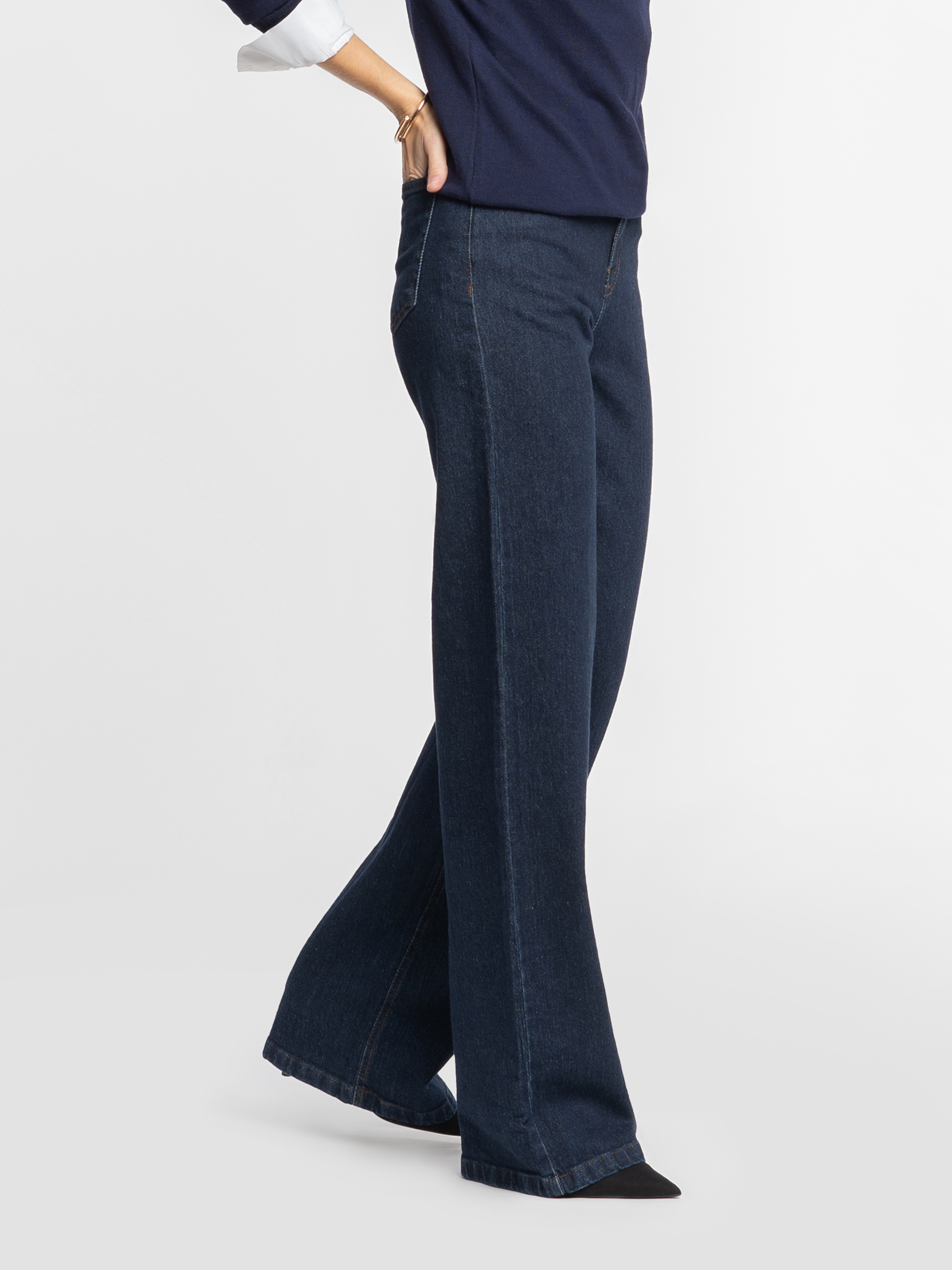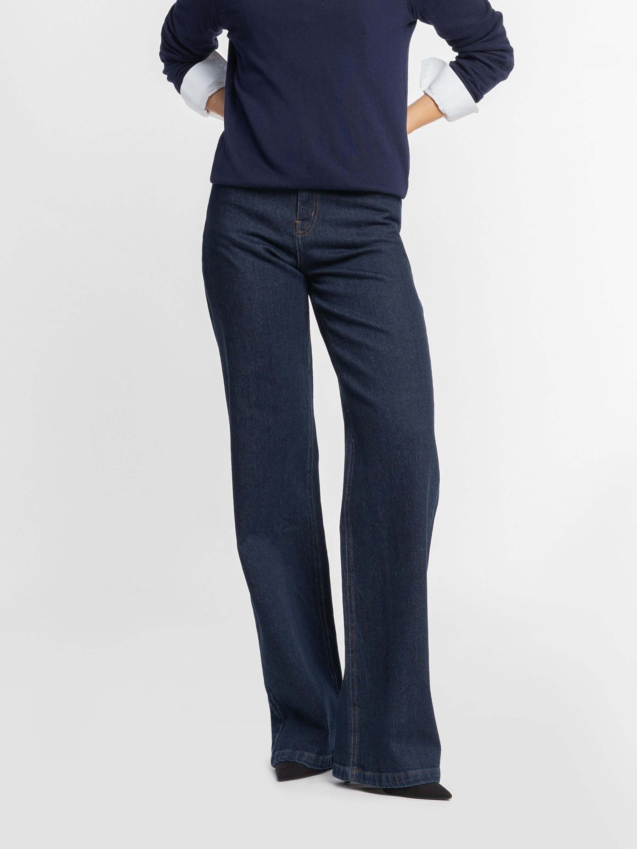 Жіночі джинси Arber у темно-синьому кольорі. Виконані з бавовни та додаванням еластану, комфортні, тримають форму та дарують свободу рухів. Джинси з високою посадкою та п'ятьма кишенями. Широка екстрадовга штанина. Застібка спереду на блискавку та металевий ґудзик. Лаконічний дизайн і глибокий відтінок роблять їх універсальною базою для сучасних образів. Модель на фото у розмірі 42. Зріст: 178 см. Параметри: 89/60/90
