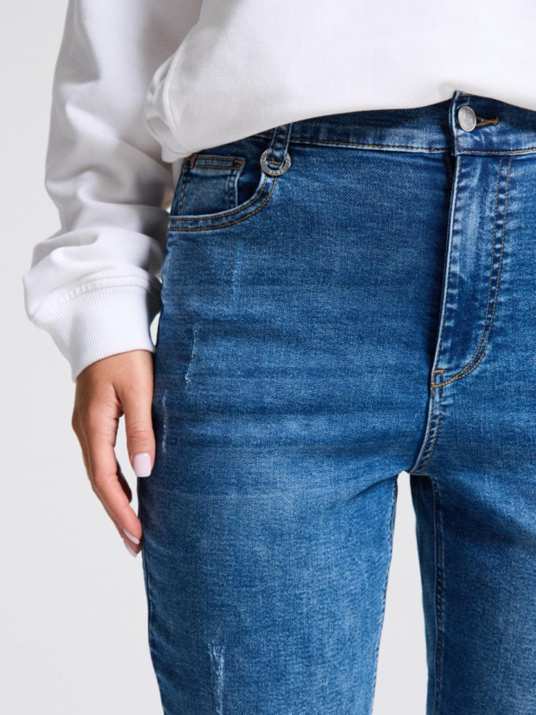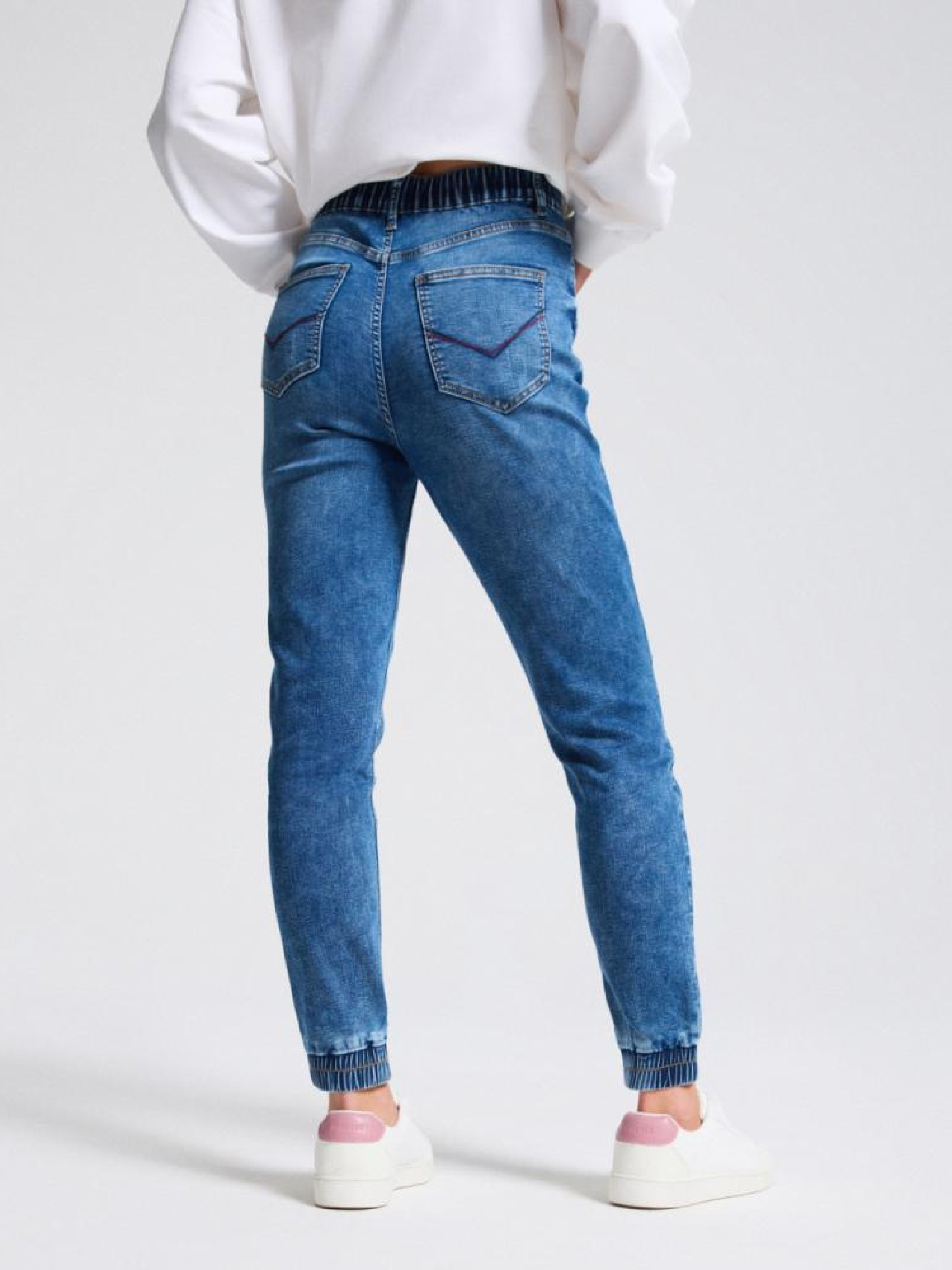 Штани LOWE III 10045059 Джинсові штани з м'якого деніму: - середня посадка з гумкою ззаду, - звужені штанини з еластичною стрічкою, - п'ять практичних кишень, - срібні деталі, - доступні в темно-блакитному кольорі. Сезон: осінь/зима 2024 Склад: 65% бавовна 33% поліестер 2% еластан Догляд: - прання при максимум 30 °С - не відбілювати - сушіть за низької температури - прасувати максимум при темп. 150°С - не проводити хімчистку Розмір на моделі - 36 Зріст моделі - 177 см РОЗМІР: 34, 36, 38, 40, 42, Ширина пояса: 35,00 см, 37,00 см, 39,00 см, 41,00 см, 43,00 см, Ширина стегна: 29,00 см, 30,00 см, 31,00 см, 32,00 см, 33,00 см, Ширина ніжки внизу: 12,50 см, 13,50 см, 14,50 см, 15,50 см, 16,50 см,