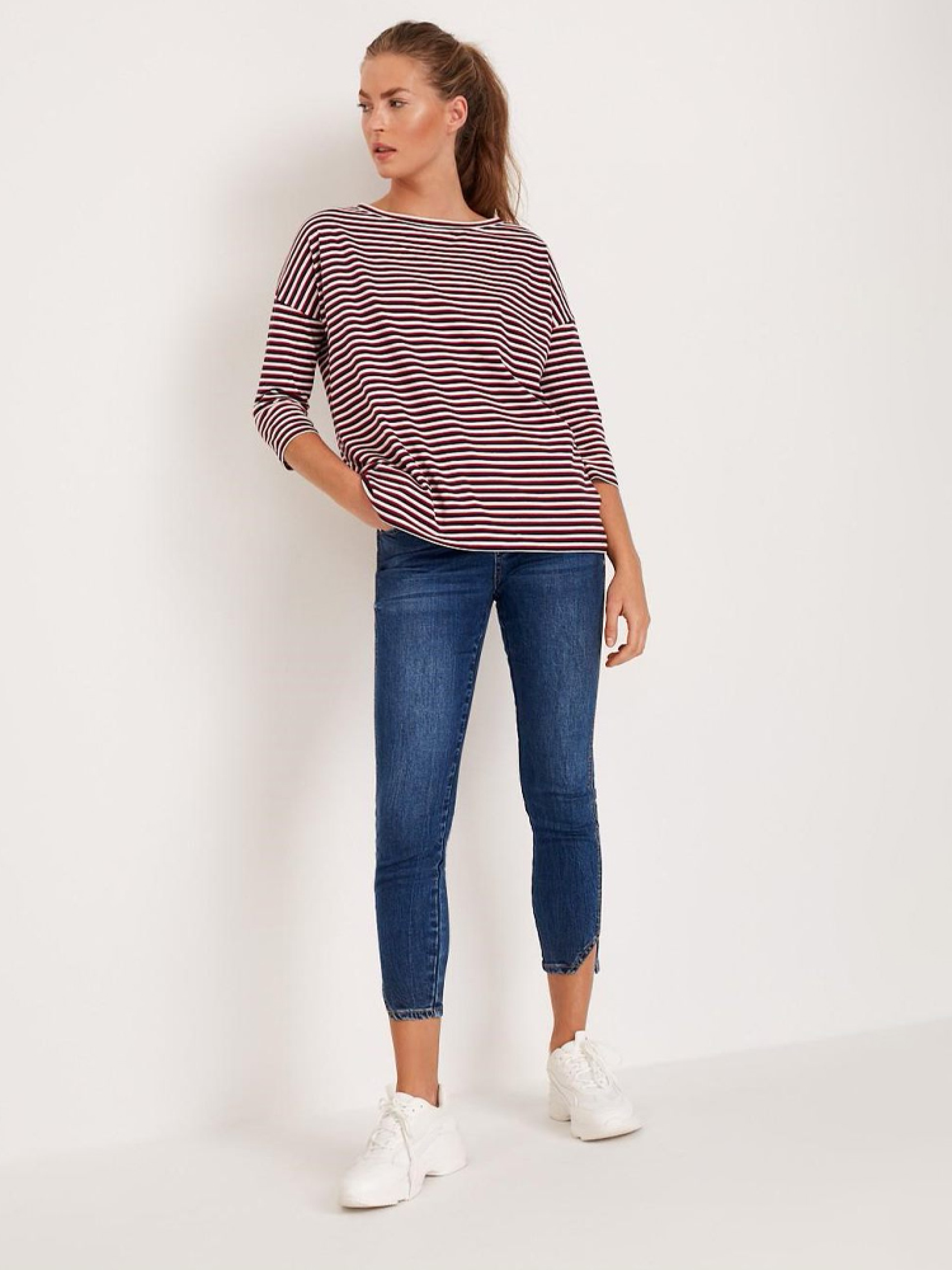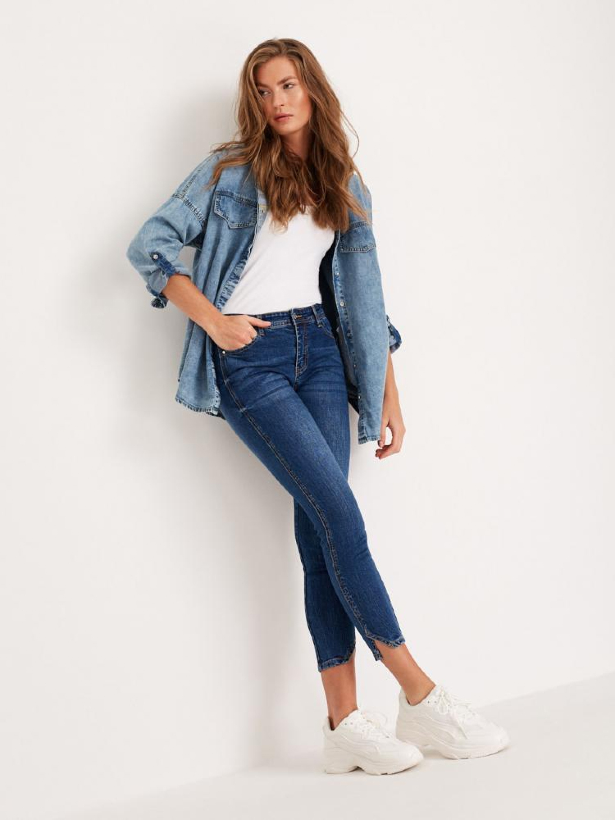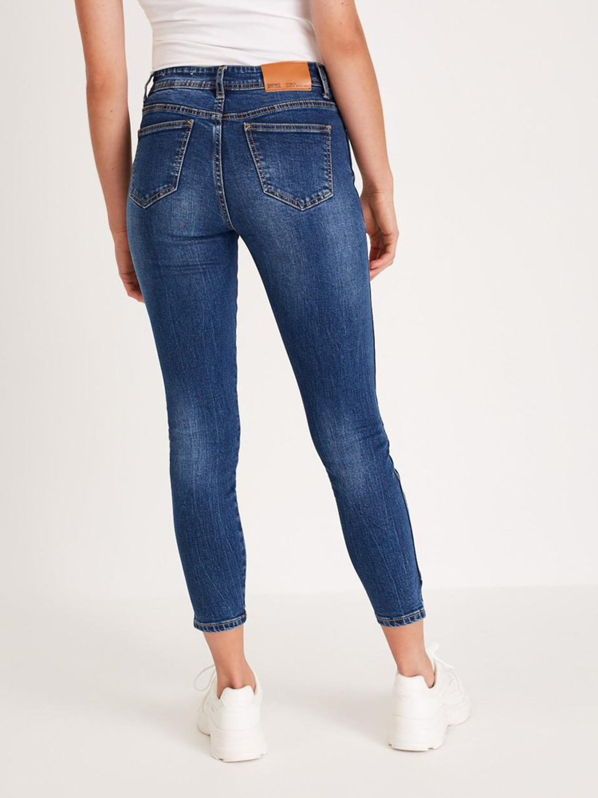 Жіночі джинси скінні SOLITAIRE IV облягаючого крою, що підкреслюють фігуру. Облягаючі штанини з розрізами: - темно-синього кольору, - з еластичного деніму, - приталений крій, - середня талія, - довжина штанини 7/8, - ефект: чітко вимиті. Сезон: осінь/зима. Склад: 98% бавовна 2% еластан Розмір на моделі - 36 Зріст моделі - 177 см РОЗМІР:34, 36, 38, 40, 42, ШИРИНА ПОЯСА, 33 см, 35 см, 37 см, 39 см, 41 см, ДОВЖИНА ВНУТРІШНЬОЇ НОГИ, 67 см, 67 см, 67 см, 69 см, 69 см, ШИРИНА СТЕГНА, 24 см, 25 см, 26 см, 27 см, 28 см, ШИРИНА НИЗУ: ШТАНИНИ, 10 см, 11 см, 12 см, 13 см, 14 см
