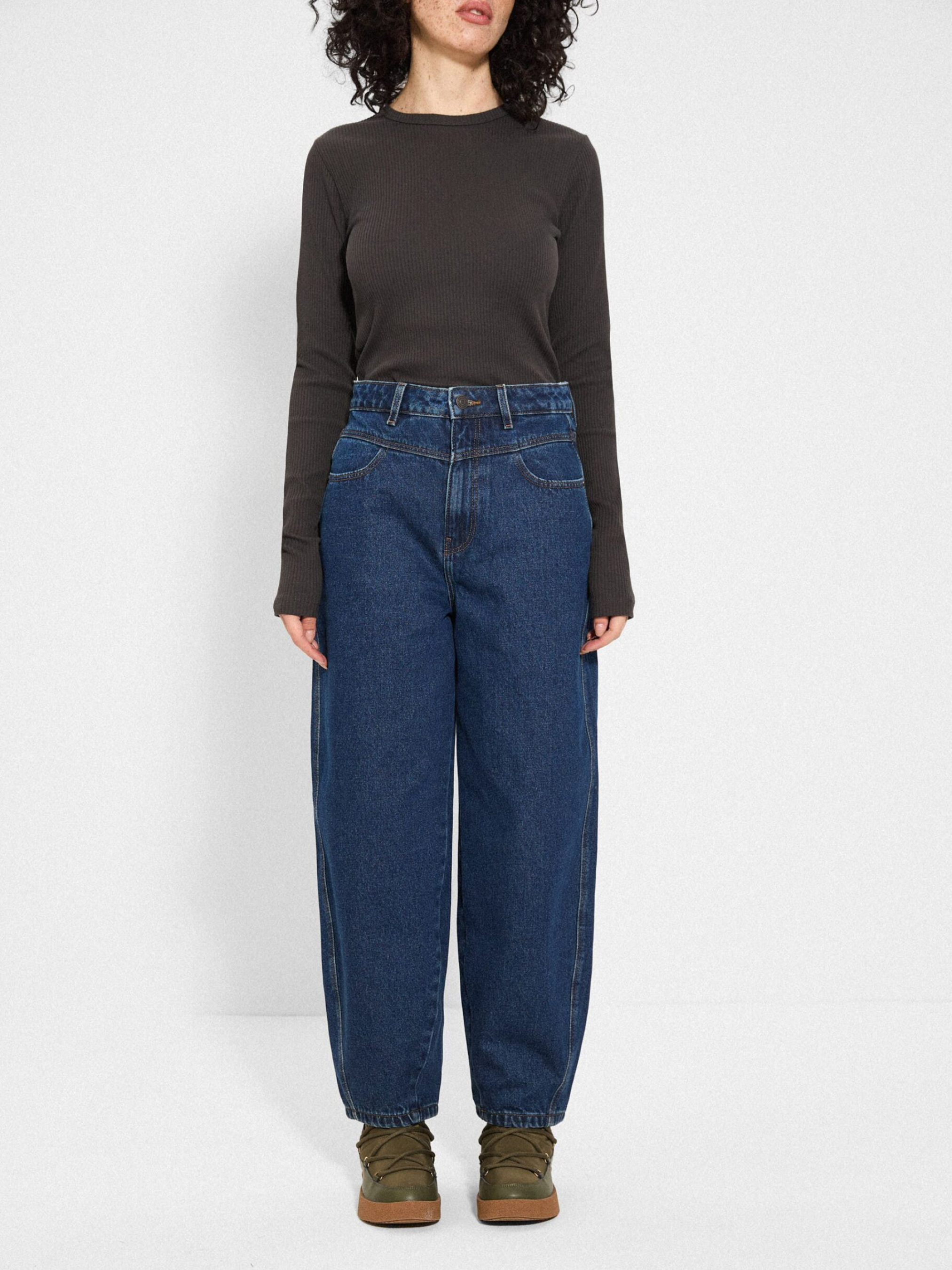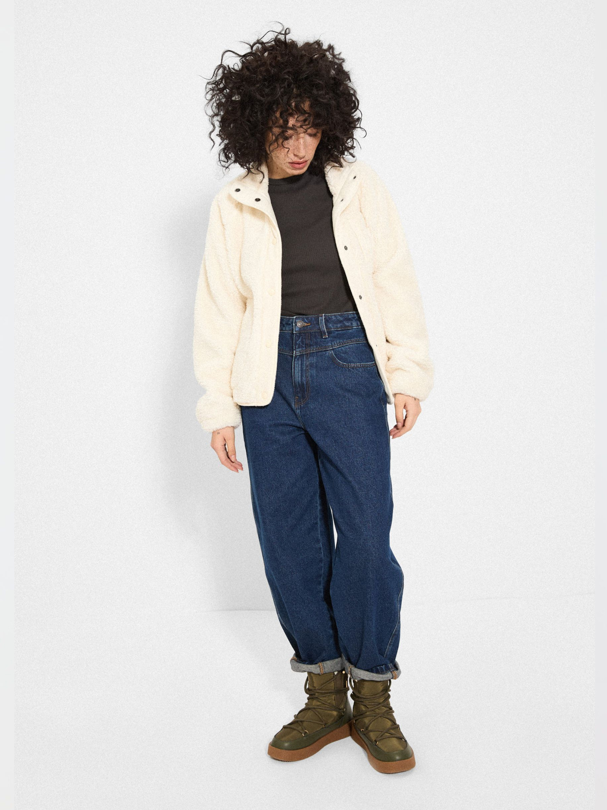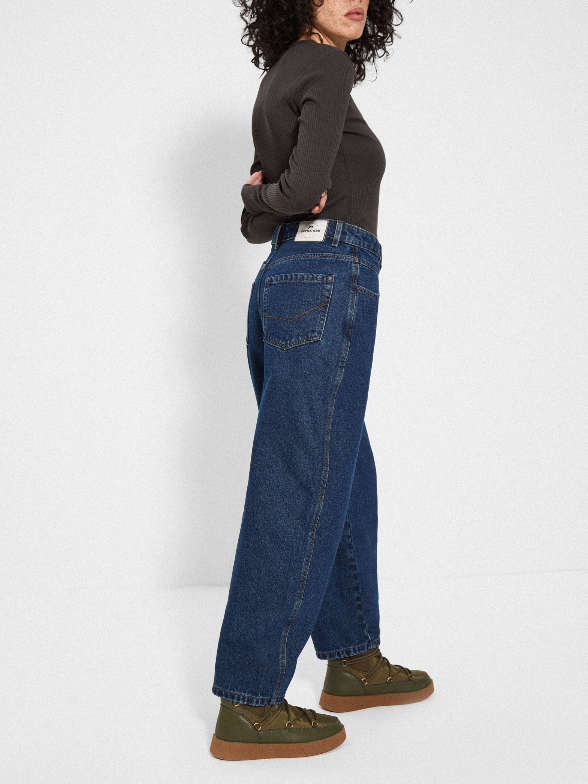 Штани джинсові CLTN FITI 256 / ID: 10048259 Зріст моделі: 172 см Розмір товару: S З ефектом прання джинсові штани з кокеткою: - висока талія, - широкі штанини, що звужуються до щиколотки, - вишита етикетка, - виготовлені з бавовни з домішкою віскози для додаткової м'якості, - колір та ефект вицвітання можуть дещо відрізнятися від зображених на фотографіях через природний процес виробництва деніму. Зовнішній склад 92% бавовна 8% віскоза Розмір: 34 36 38 40 42 Ширина талії: 33 35 37 39 41 Довжина внутрішньої частини штанини: 69,5 69,5 69,5 71,5 71,5 Ширина стегна: 32 33 34 35 36 Ширина нижньої частини штанини: 18,5 19,5 20,5 21,5 22,5