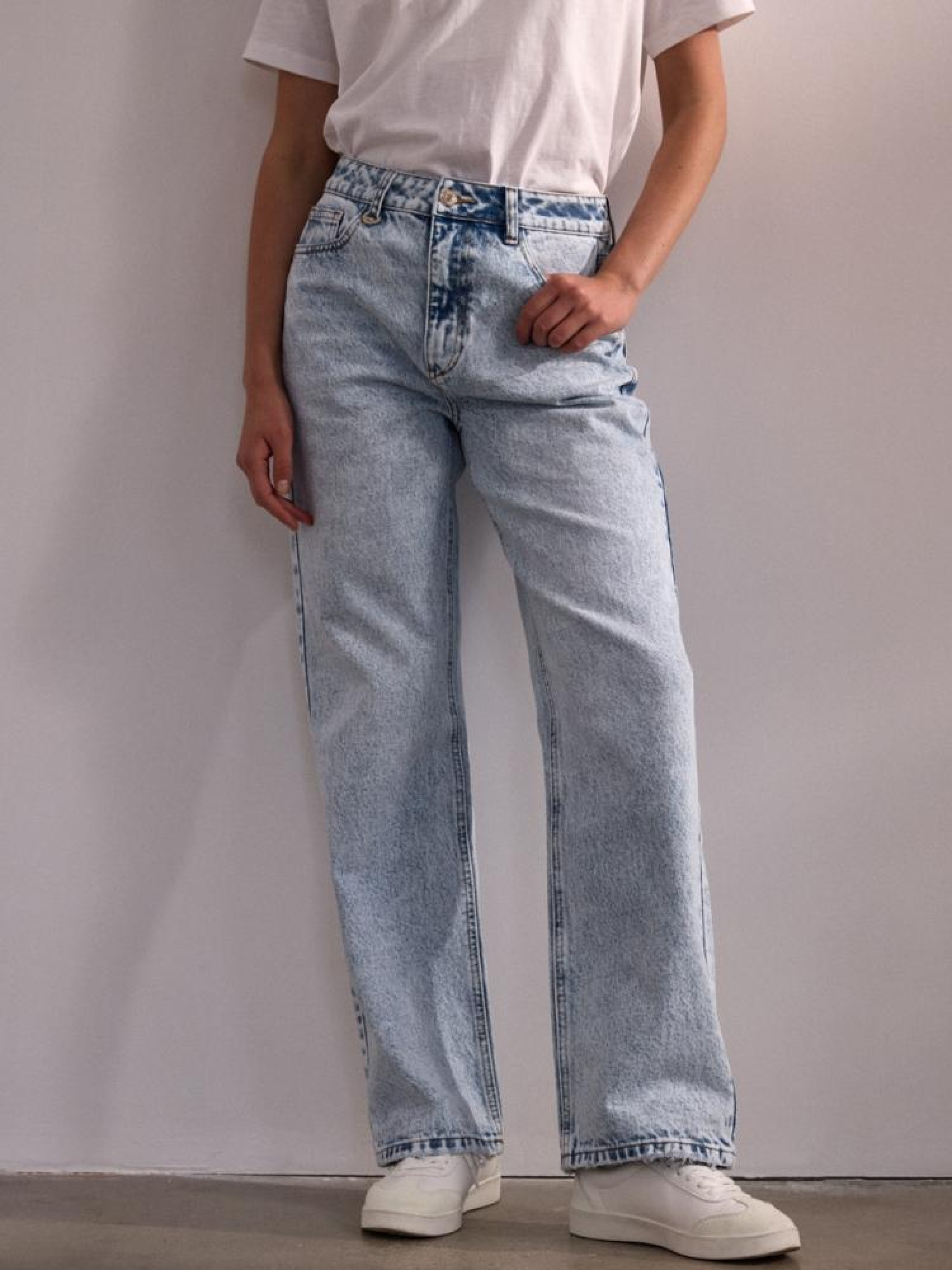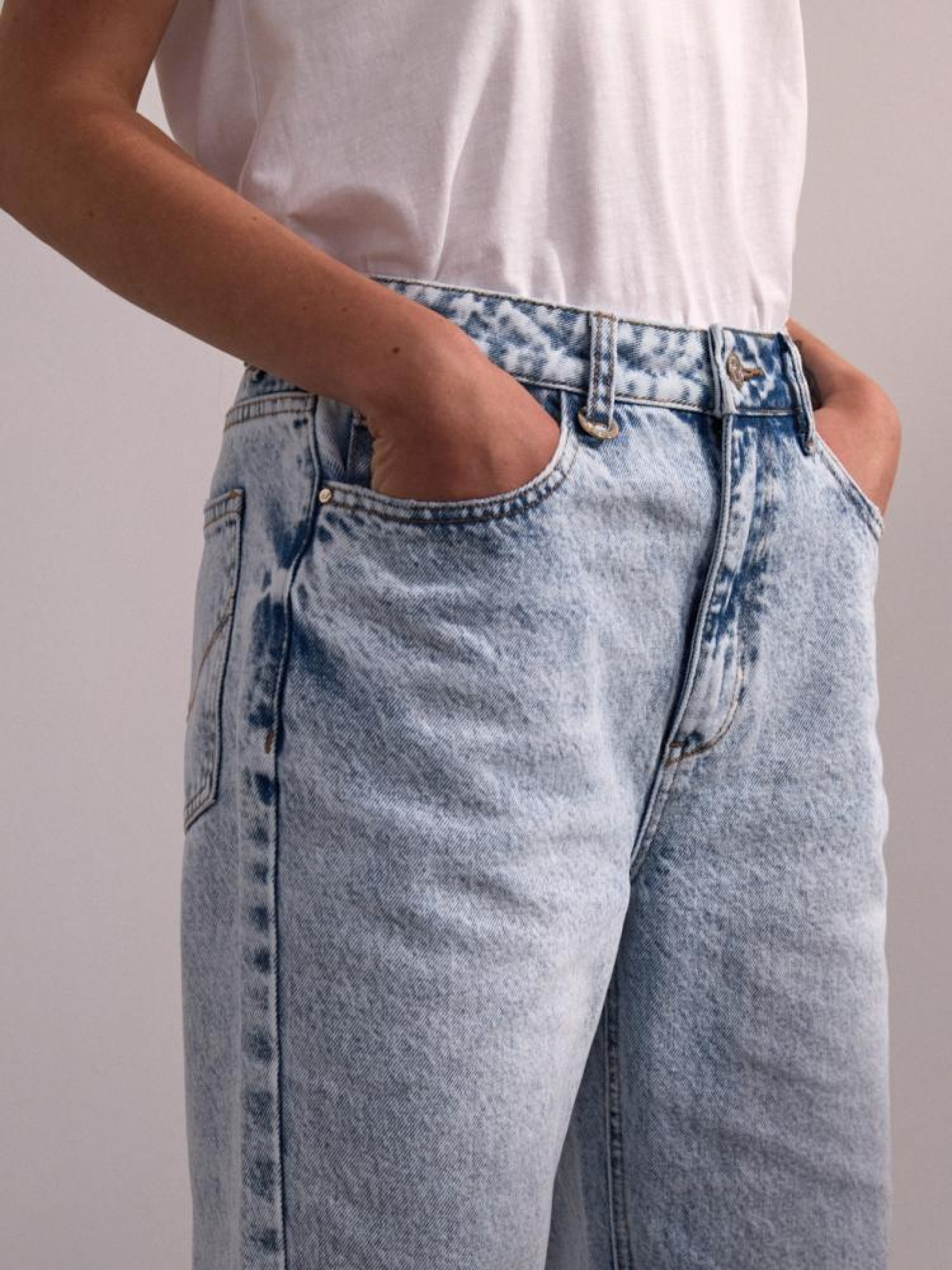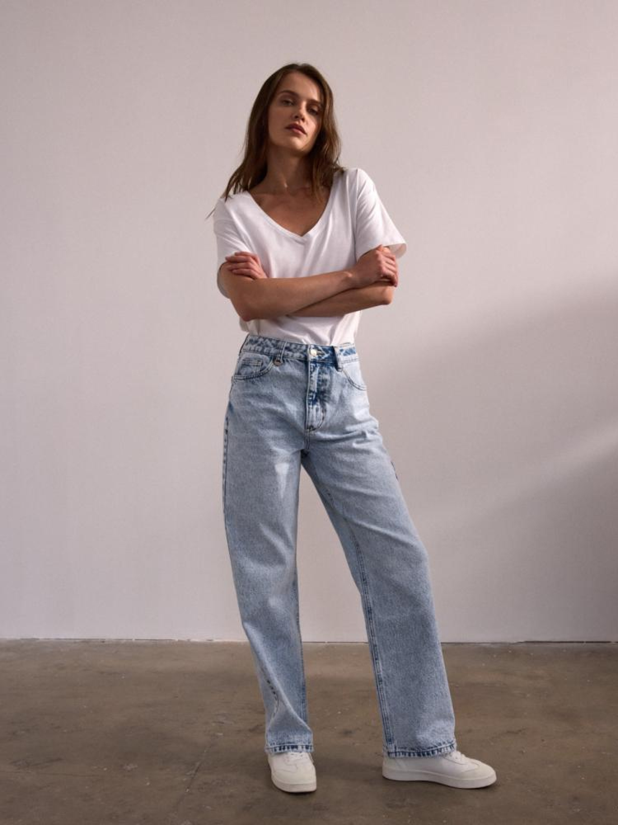Штани RENDO 10045061 Джинсові штани з однотонного деніму: - завищена талія, - довгі, вільні штанини, - п'ять кишень для зручності, - світло-золота фурнітура, - шкіряна бирка з металевим логотипом, - доступні у світло-блакитному кольорі. Сезон: осінь/зима 2024 Склад: 100% бавовна Догляд: - прання при максимум 30 °С - не відбілювати - не сушити в сушильній машині - прасувати максимум при темп. 150 °С - не хімчистка Розмір на моделі - 38 Зріст моделі - 174 см РОЗМІР: 34, 36, 38, 40, 42, Ширина пояса: 35,00 см, 37,00 см, 39,00 см, 41,00 см, 43,00 см, Ширина стегна: 30,50 см, 31,50 см, 32,50 см, 33,50 см, 34,50 см, Ширина ніжки внизу: 23,00 см, 24,00 см, 25,00 см, 26,00 см, 27,00 см,