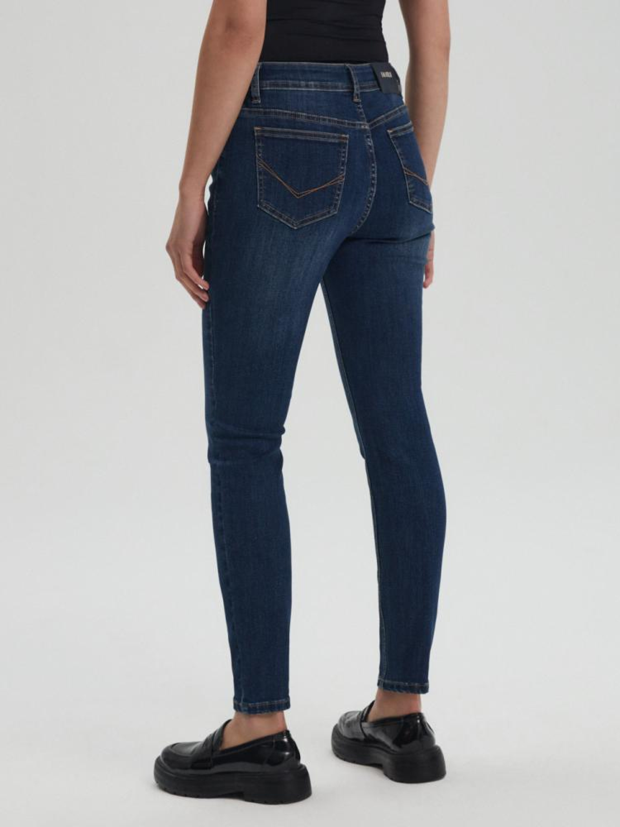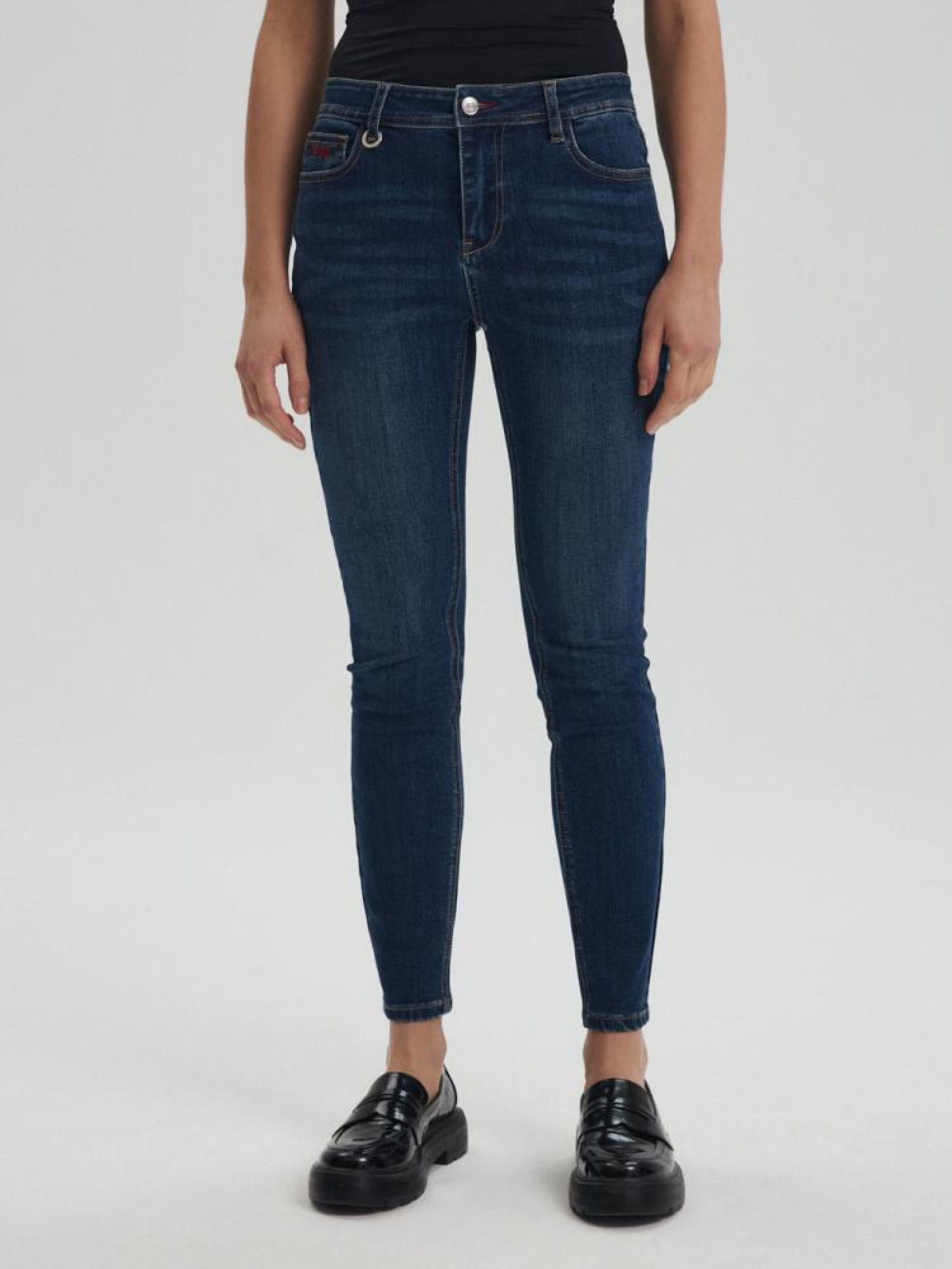 Штани FELINO III 10043687 Жіночі вузькі джинси: - облягаючий крій скінні, - довжина штанин до щиколотки, - застібаються на ґудзик і блискавку, - три кишені спереду, дві ззаду, - з еластичної еластичної тканини, - доступний у темно-синьому кольорі. Сезон: Весна/Літо 2024 Склад: 70% бавовна 28% поліестер 2% еластан Догляд: - прання при максимум 40 °С - не відбілювати - сушіть за низької температури - прасувати максимум при темп. 150°С - не хімчистка Розмір на моделі - 36 Зріст моделі - 172 см РОЗМІР: 34, 36, 38, 40, 42, Ширина пояса: 34,50 см, 36,50 см, 38,50 см, 40,50 см, 42,50 см, Внутрішня довжина ноги: 71,00 см, 71,00 см, 71,00 см, 73,00 см, 73,00 см, Ширина стегна: 25,00 см, 26,00 см, 27,00 см, 28,00 см, 29,00 см, ШИРИНА НОГИ ЗНИЗУ: 11,50 см, 12,50 см, 13,50 см, 14,50 см, 15,50 см,