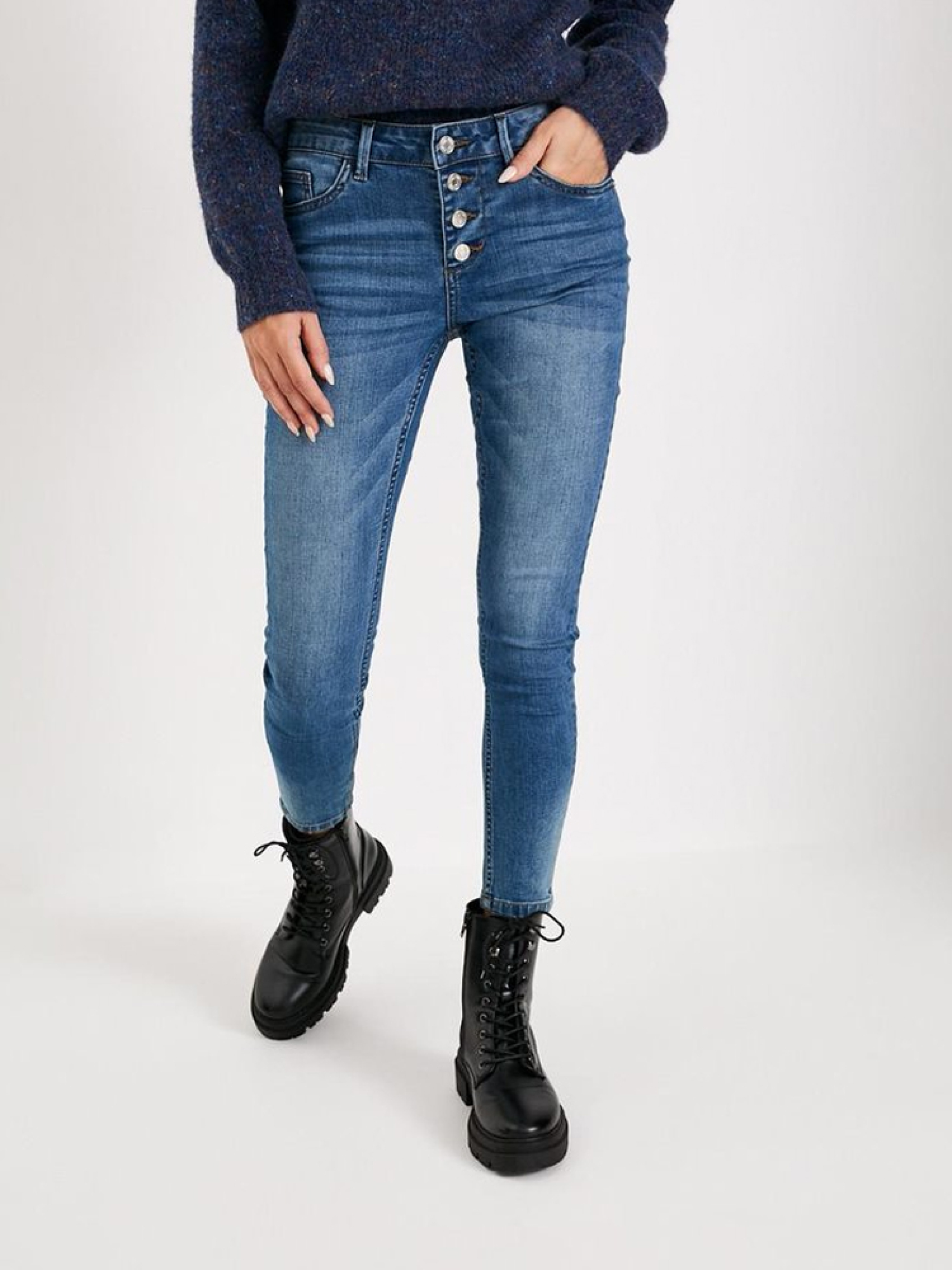 Джинси BUTI облягаючого крою, що підкреслює фігуру: - з еластичного деніму, - приталеного крою, - середньої талії, - довжина штанини 7/8, - ефект: чітко вицвілі. Сезон: осінь/зима. Склад: 72% бавовна 23% поліестер 3% віскоза 2% еластан РОЗМІР: 34, 36, 38, 40, 42 . ШИРИНА ПОЯСА: 33 СМ, 35 СМ, 37 СМ, 39 СМ, 41 СМ . ДОВЖИНА ВНУТРІШНЬОЇ НОГИ 70 СМ, 70 СМ, 70 СМ, 72 СМ, 72 СМ . ШИРИНА СТЕГНА: 25 СМ, 26 СМ, 27 СМ, 28 СМ, 29 СМ . ШИРИНА НИЗУ: ШТАНИНИ 10 СМ, 11 СМ, 12 СМ, 13 СМ, 14 СМ