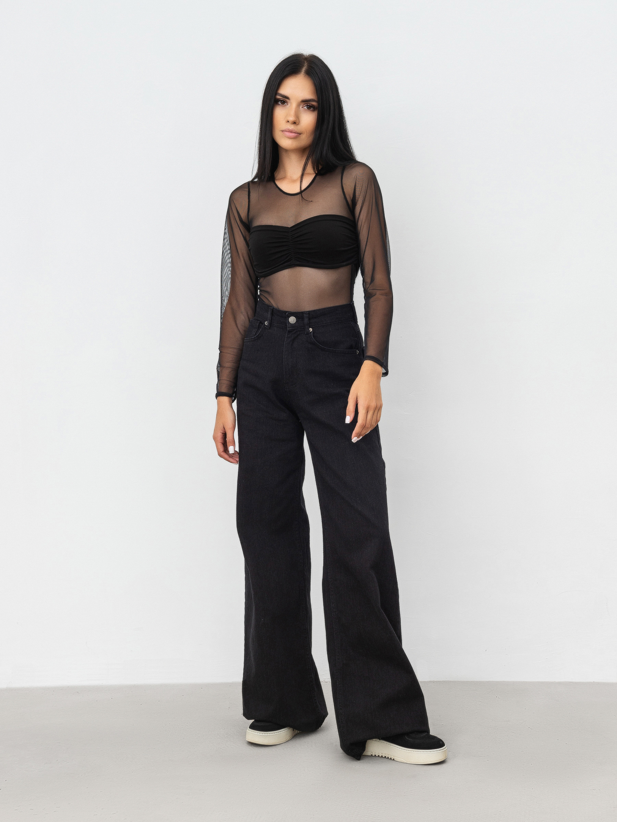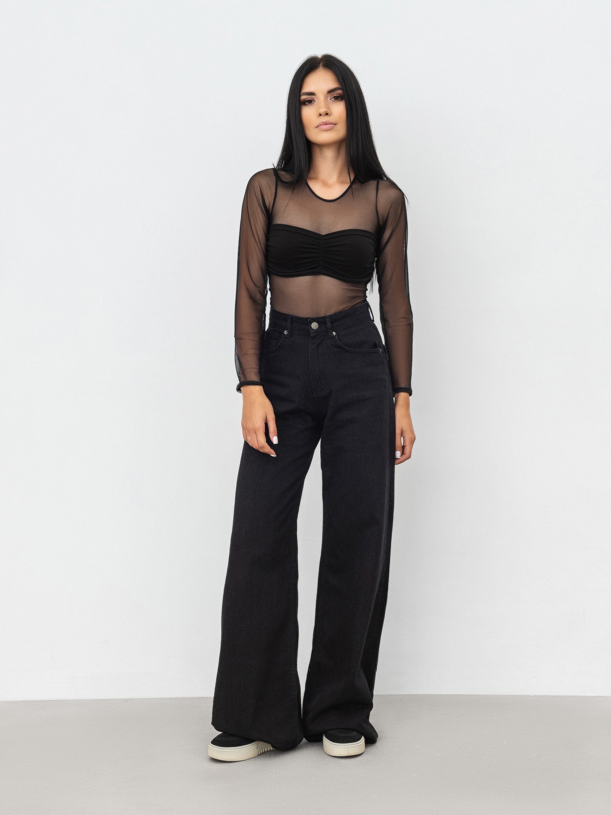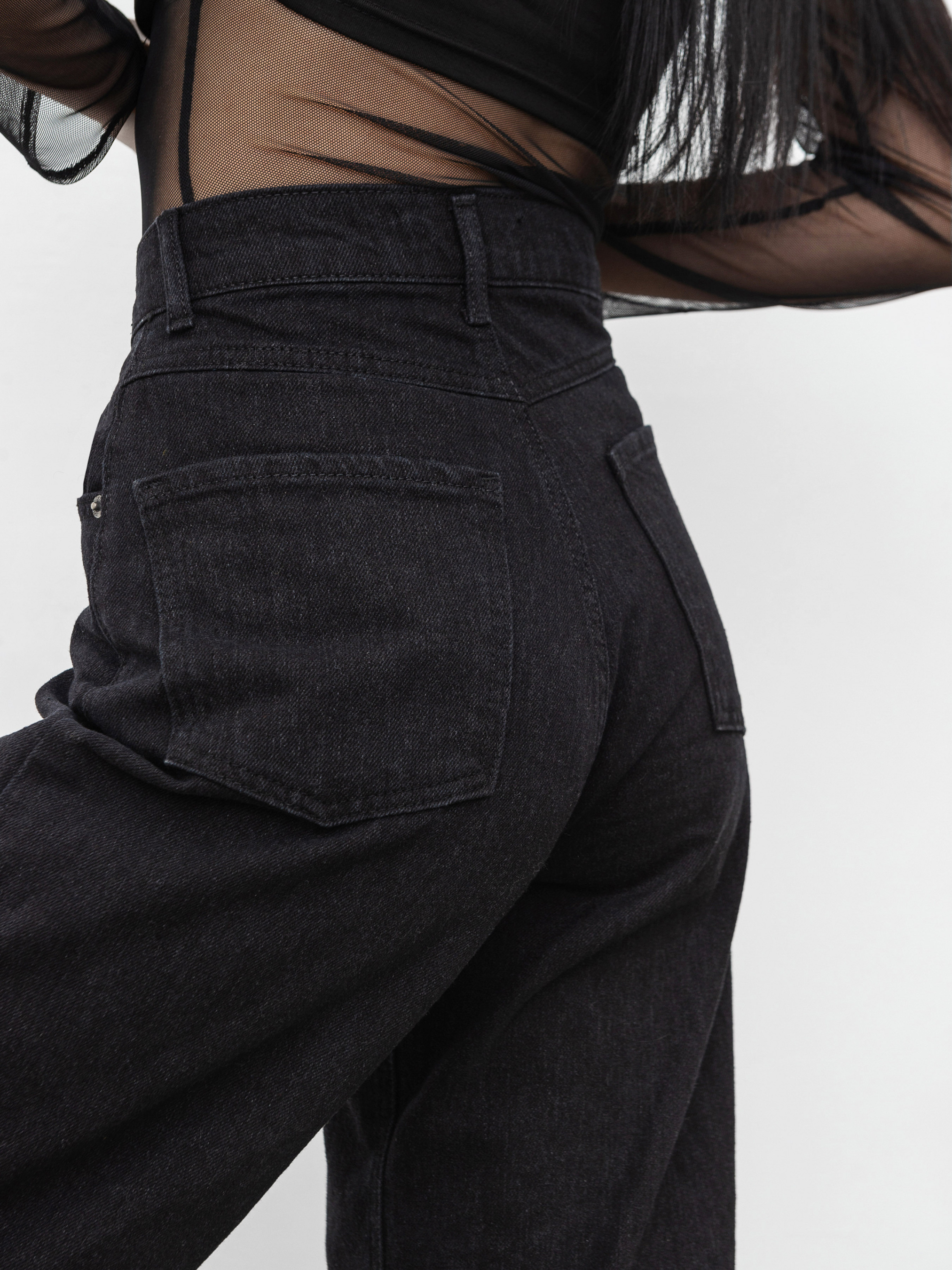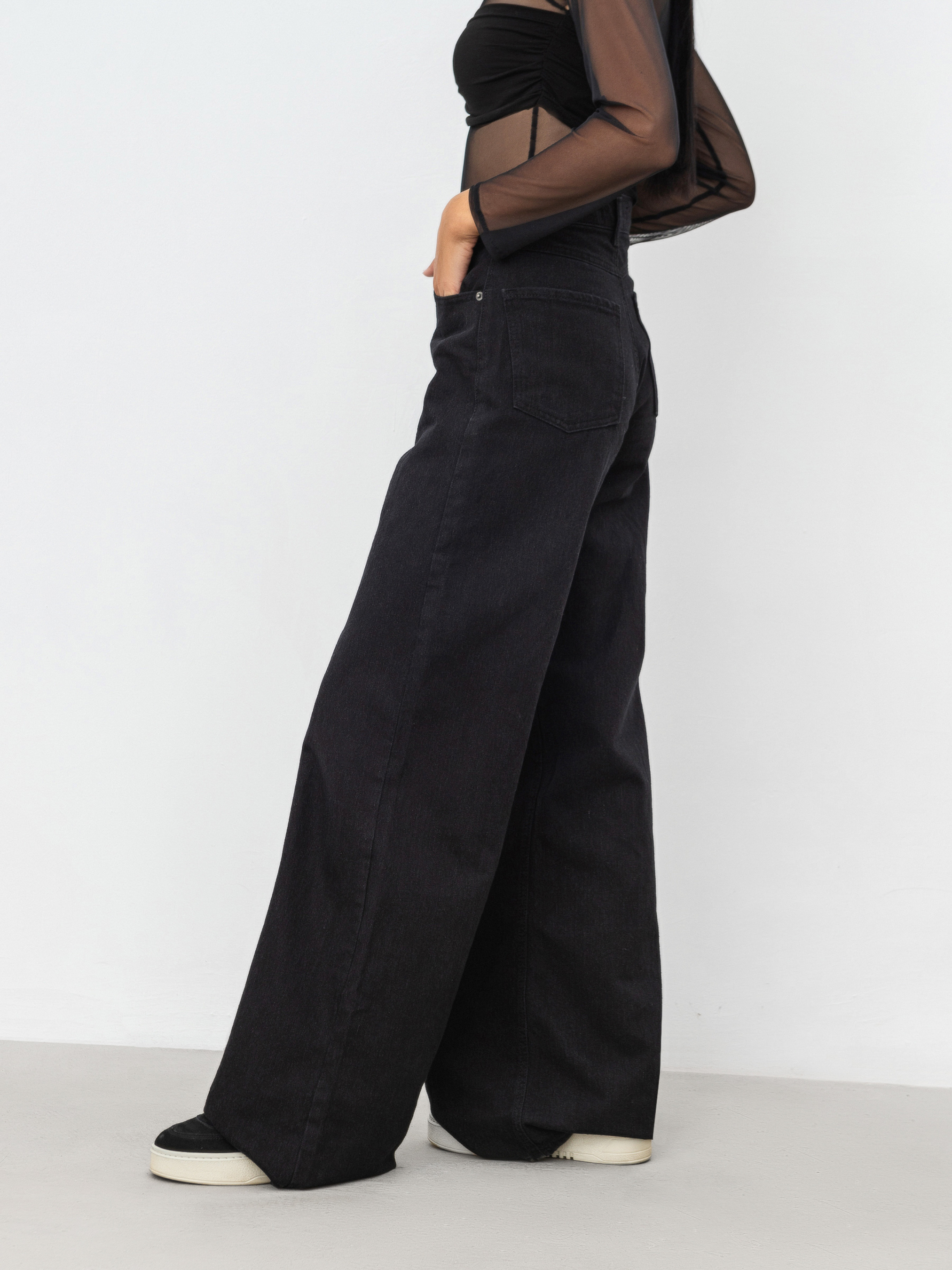 Джинси "Baggy" вільного фасону. Висока посадка. Щільний джинс 100% бавовна. Широкі штанини, трохи розширюються донизу. Базова актуальна модель.