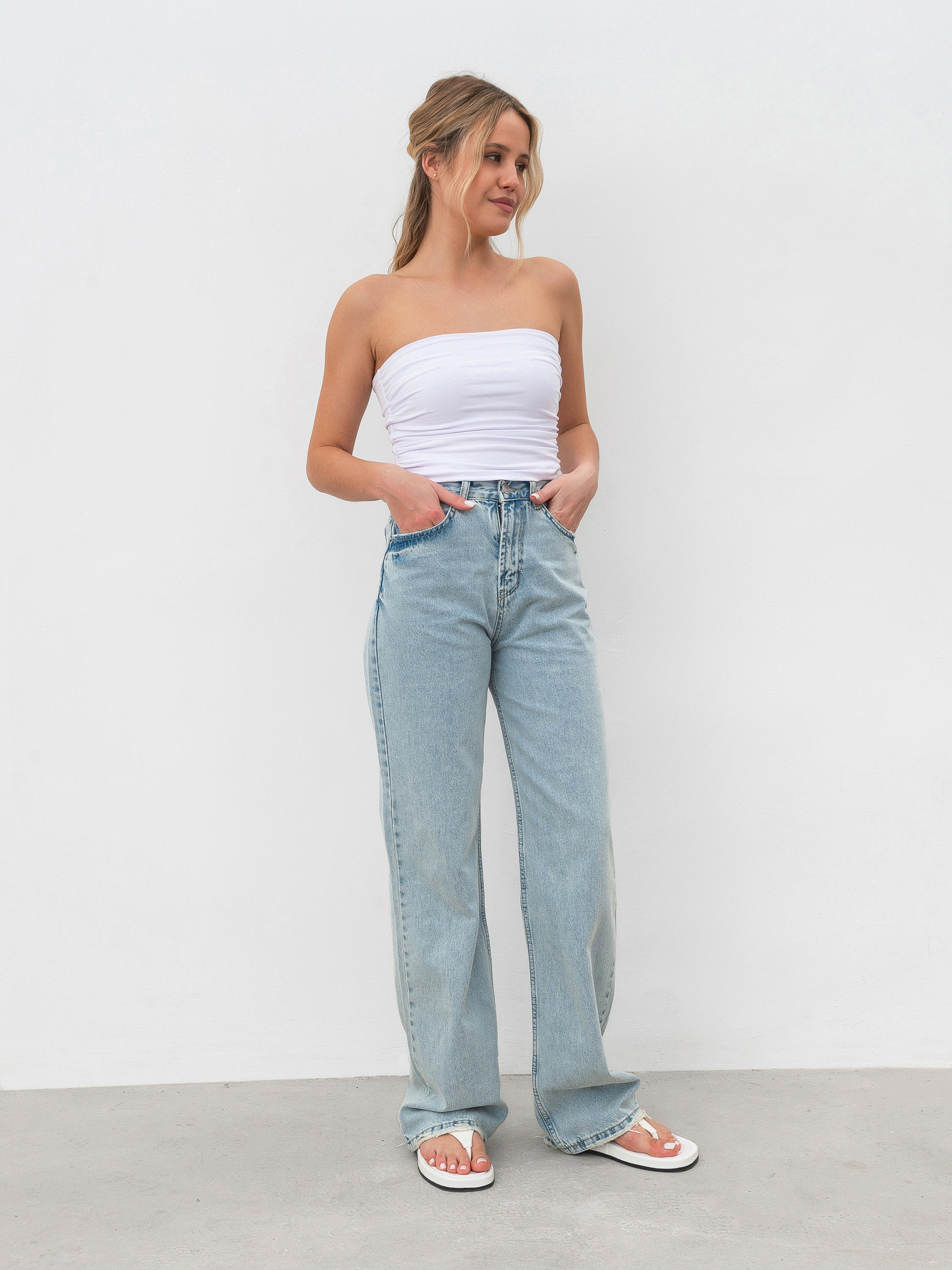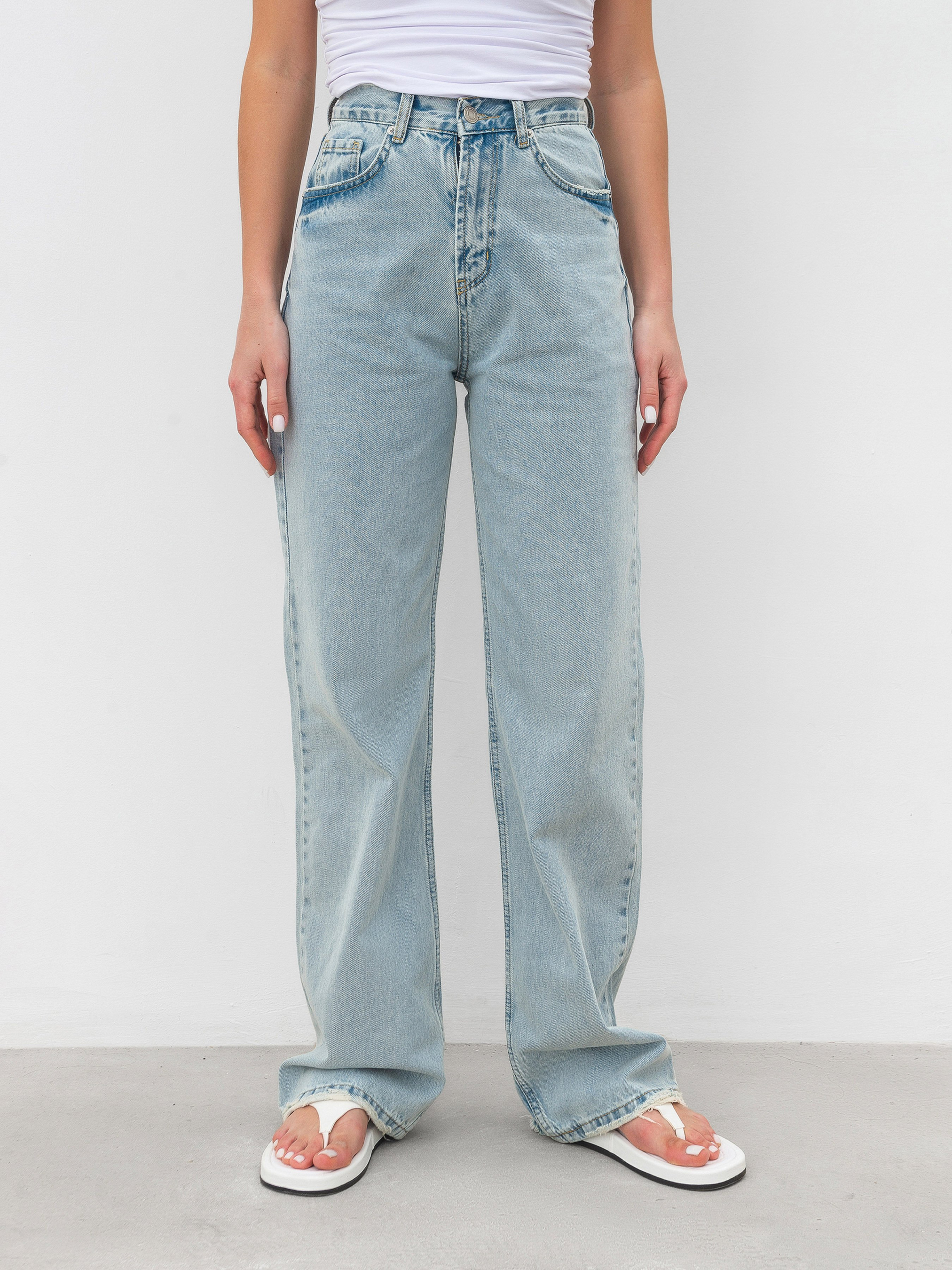 Джинси трендового фасону з вільним низом. Модель має високу посадку. Щільний матеріал зі 100% бавовни з ефектом вивареності. Є шлевки для ремінця та кишені спереду і ззаду. Універсальна модель для різноманітності образів. Поєднувати можна з будь-яким верхом. Радимо звернути увагу на світшоти, оверсайз футболки, піджаки. XS:- Довжина по зовнішньому шву : 111 см; Довжина по внутрішньому шву : 82 см; Напівобхват стегон : 54 см; Посадка : 31 см; Напівобхват талії : 30 см, S:- Довжина по зовнішньому шву : 111 см; Довжина по внутрішньому шву : 82 см; Напівобхват стегон : 59 см; Посадка : 31 см; Напівобхват талії : 36 см, M:- Довжина по зовнішньому шву : 112 см; Довжина по внутрішньому шву : 82 см; Напівобхват стегон : 60 см; Посадка : 31 см; Напівобхват талії : 39 см, L:- Довжина по зовнішньому шву : 114 см; Довжина по внутрішньому шву : 82 см; Напівобхват стегон : 62 см; Посадка : 32 см; Напівобхват талії : 40 см, XL:- Довжина по зовнішньому шву : 116 см; Довжина по внутрішньому шву : 83 см; Напівобхват стегон : 63 см; Посадка : 33 см; Напівобхват талії : 42 см.