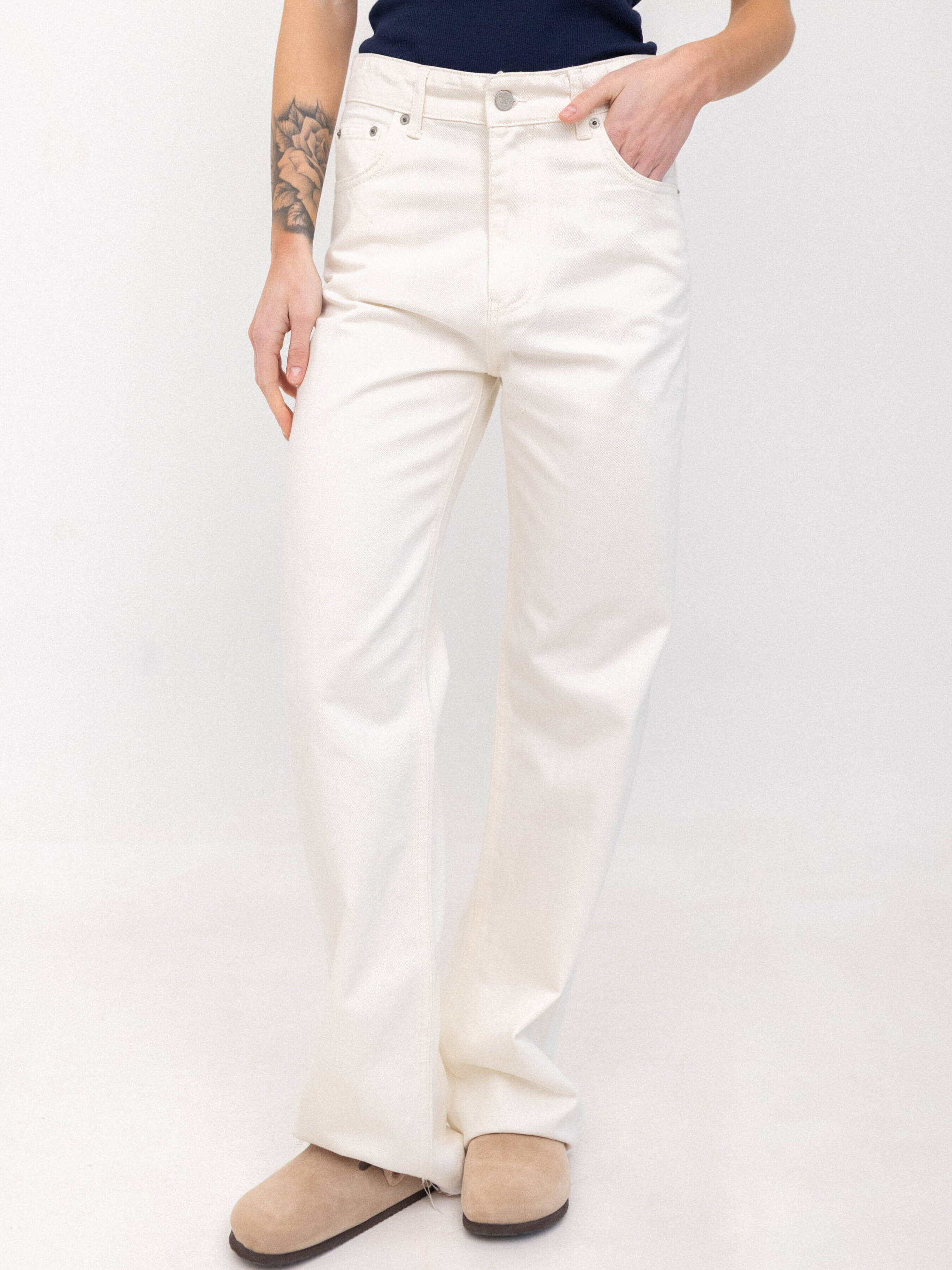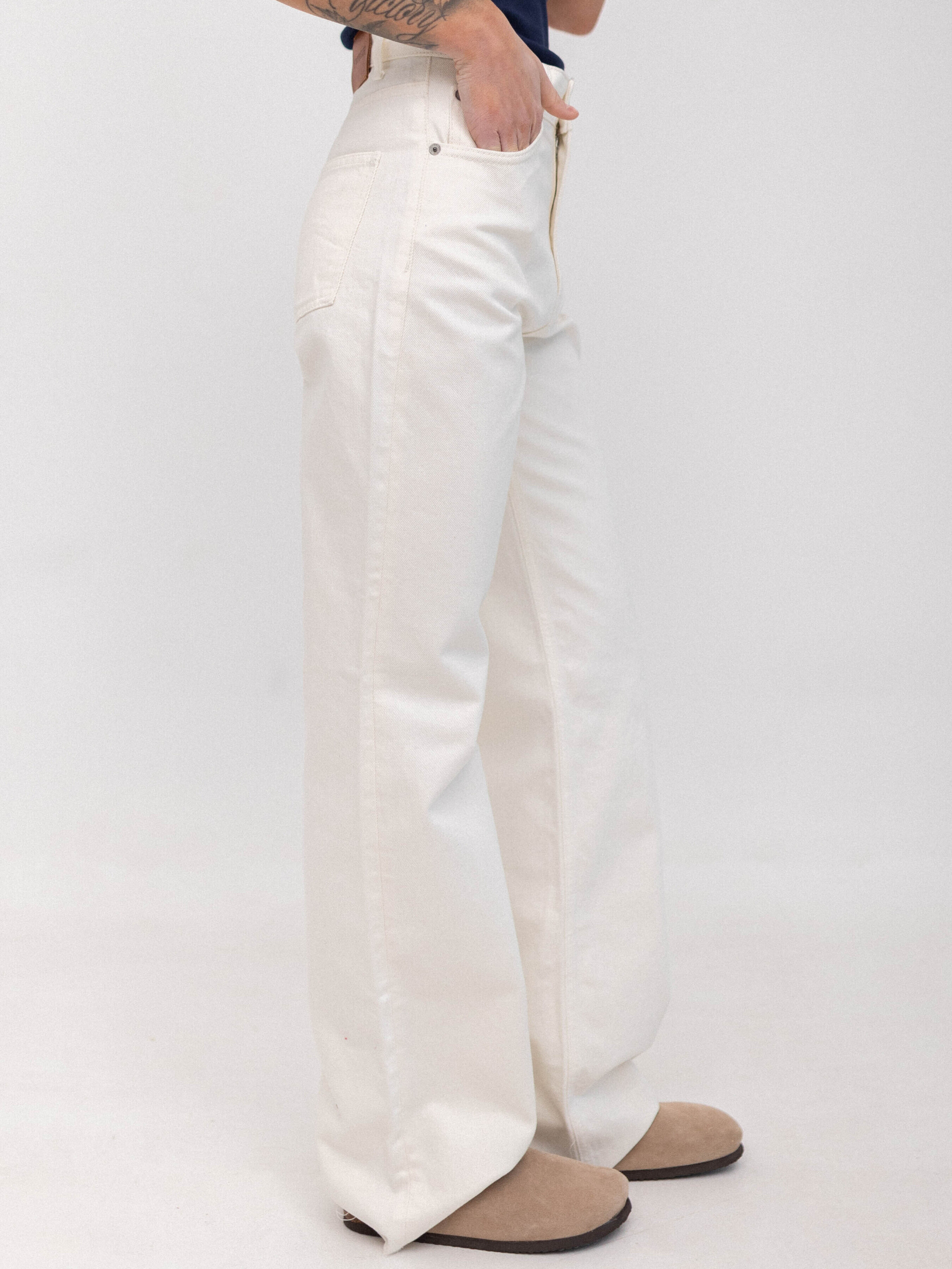 Джинси Wide Leg молочний WL 541 — це стильний і елегантний вибір для тих, хто хоче додати сучасного вигляду своєму гардеробу. Молочний колір додає образу свіжості і легкості, роблячи ці джинси універсальними для будь-яких комбінацій, будь то ділові луки або casual-образи. Параметри моделі: 83-63-92 / 176 см. Розмір на моделі: 34 Матеріал та рекомендації по догляду за джинсами: 100% коттон 1. Не прати занадто часто. Через часте прання джинси швидко втрачають свій колір та форму. Оберіть краще ручний режим. Та якщо все ж таки зважились відправити джинси в пральну машинку, використовуйте безфосфатний пральний порошок. Штани слід вивернути навиворіт, застебнути всі блискавки та ґудзики. 2. Не прати в гарячій воді Гаряча вода призводить до пошкодження тканини. Температура повинна бути від 30 до 40 градусів. Або ж кімнатної температури. Викручувати джинси не варто. Краще повісити, щоб стекла вода. 3. Скажіть "так" прасуванню. Заміри виробу: 34: Півобхват талії 32 см; Півобхват стегон 48 см; Довжина 115 см; Довжина внутрішнього шва 84 см; Ширина штанки знизу 25 см. та зверху 28 см; Висота посадки 31 см; 36: Півобхват талії 34 см; Півобхват стегон 50 см; Довжина 113 см; Довжина внутрішнього шва 83 см; Ширина штанки знизу 25 см; та зверху 29 см; Висота посадки 31 см; 38: Півобхват талії 36 см; Півобхват стегон 52 см; Довжина 115 см; Довжина внутрішнього шва 84 см; Ширина штанки знизу 26 см; та зверху 29 см; Висота посадки 32 см; 40: Півобхват талії 37 см; Півобхват стегон 53 см; Довжина 117 см; Довжина внутрішнього шва 86 см; Ширина штанки знизу 26 см; та зверху 30 см; Висота посадки 33 см; Довжина джинсів від 113 - 117 см
