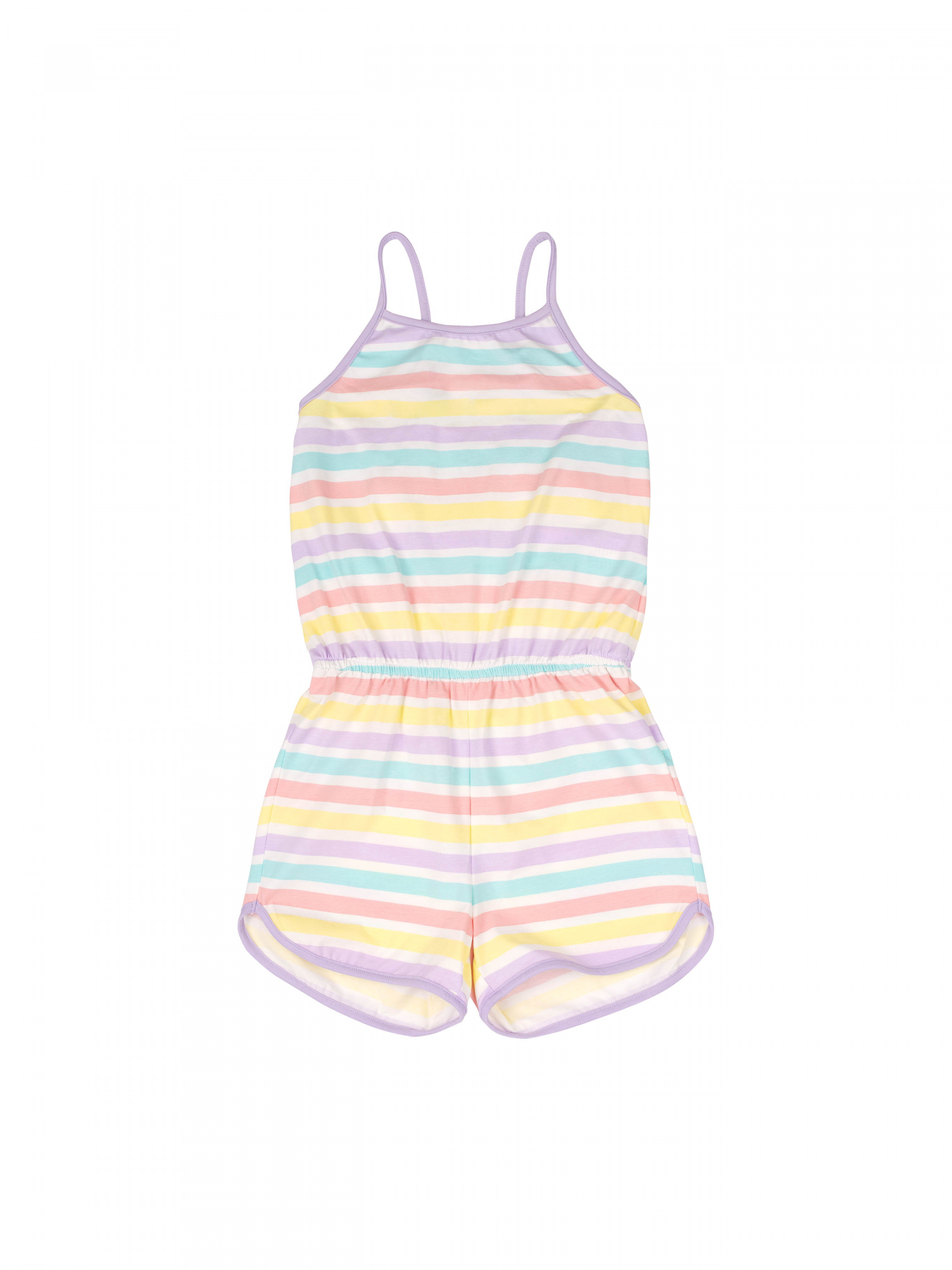 Напівкомбінезон для дівчинки. Модель середньої довжини, на тонких бретелях, по талії резинка. Тканина еластична, в малюнок.