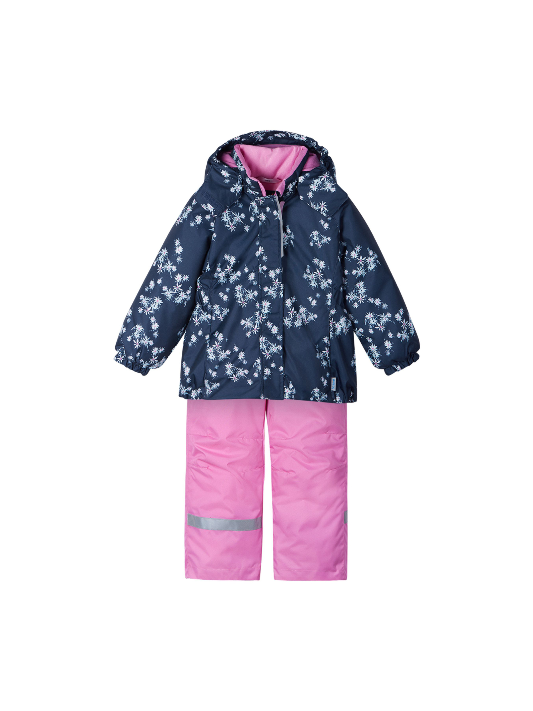 Цей зимовий набір для дівчаток просто ідеальний для активного відпочинку на свіжому повітрі! Штани виготовлені із надміцного матеріалу та забезпечені захистом від снігу. Знімні підтяжки, що регулюються, дозволяють відкоригувати штани ідеально за розміром, а задній середній шов проклеєний для забезпечення водонепроникності. Куртка прикрашена квітковим малюнком і забезпечена безпечним і практичним капюшоном, а кишені на липучці збережуть усі знайдені за день маленькі скарби! І куртка, і штани виготовлені з вітронепроникного та дихаючого матеріалу з водо- та брудовідштовхувальною поверхнею.