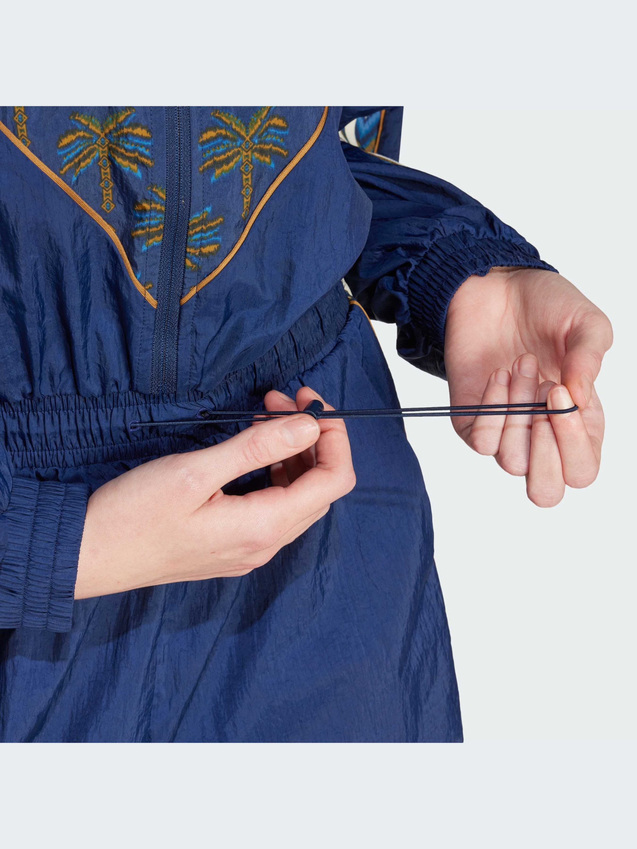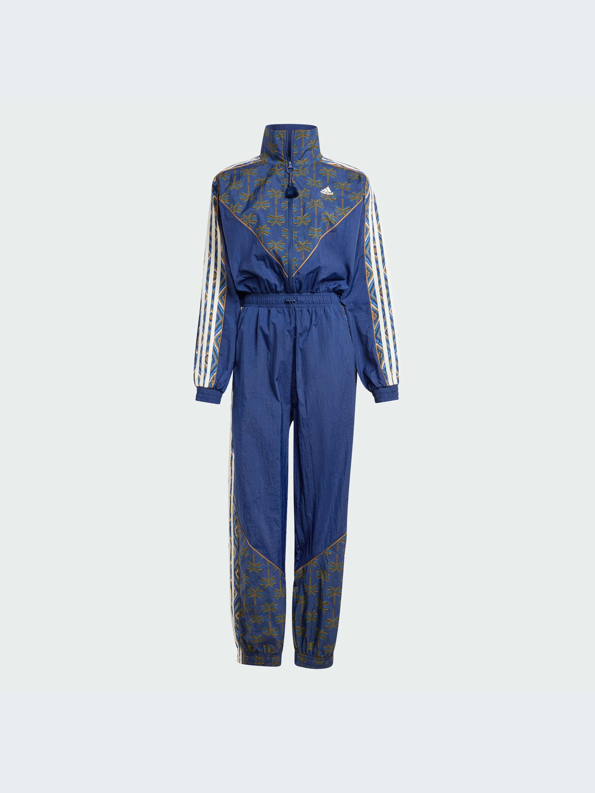 Незалежно від того, відпочиваєш ти вдома чи вирушаєш у справах, у цьому комбінезоні adidas x FARM Rio тобі буде стильно і комфортно. Принт Oasis Night, натхненний тропіками, поєднує в собі яскраве анімалістичне забарвлення і деталі іката, створюючи привабливий образ. Цей комбінезон, створений унаслідок співпраці adidas і бразильського дизайнерського дому FARM, поєднує в собі спортивні якості та яскравий стиль. Цей продукт виготовлений зі 100% перероблених матеріалів. Повторно використовуючи вже створені матеріали, ми допомагаємо скоротити кількість відходів і нашу залежність від обмежених ресурсів, а також зменшити негативний вплив продуктів, які ми виробляємо. Великомірна модель. Враховуючи досвід наших покупців, рекомендуємо обирати на розмір менший, ніж зазвичай (якщо зазвичай ти носиш розмір М, рекомендуємо замовити розмір S).