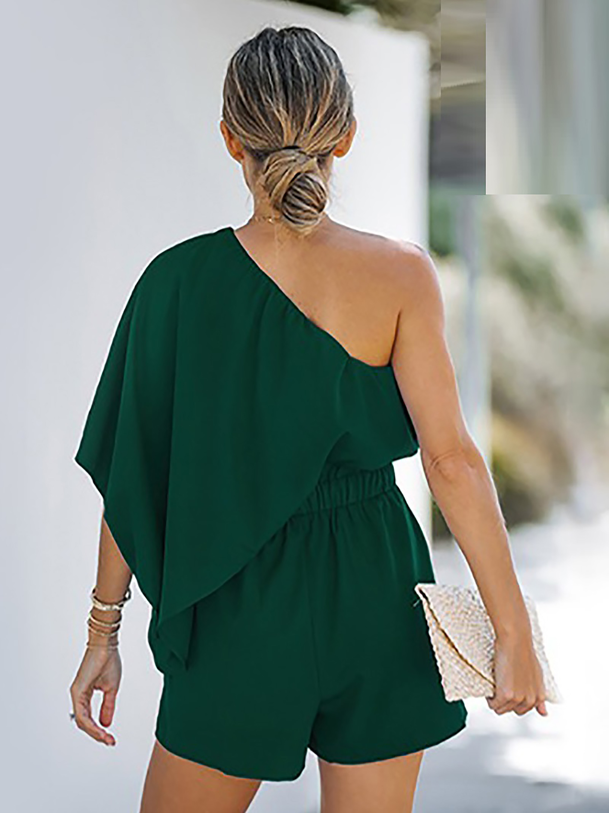 Зробіть сміливу та асиметричну заяву за допомогою нашого комбінезону на одне плече, в якому сучасний дизайн поєднується з грайливим стилем, створюючи яскравий образ, який приверне увагу, куди б ви не пішли. Тканина Виріз на одне плече Рукав одинарний, 3/4. Широкі брючини ***Розмір - M Напівобхват пояса - 37,00 см Довжина виробу - 78,00 см Об'єм грудей - 96,00 см Напівобхват стегон - 58,00 см Склад: 100% поліестер