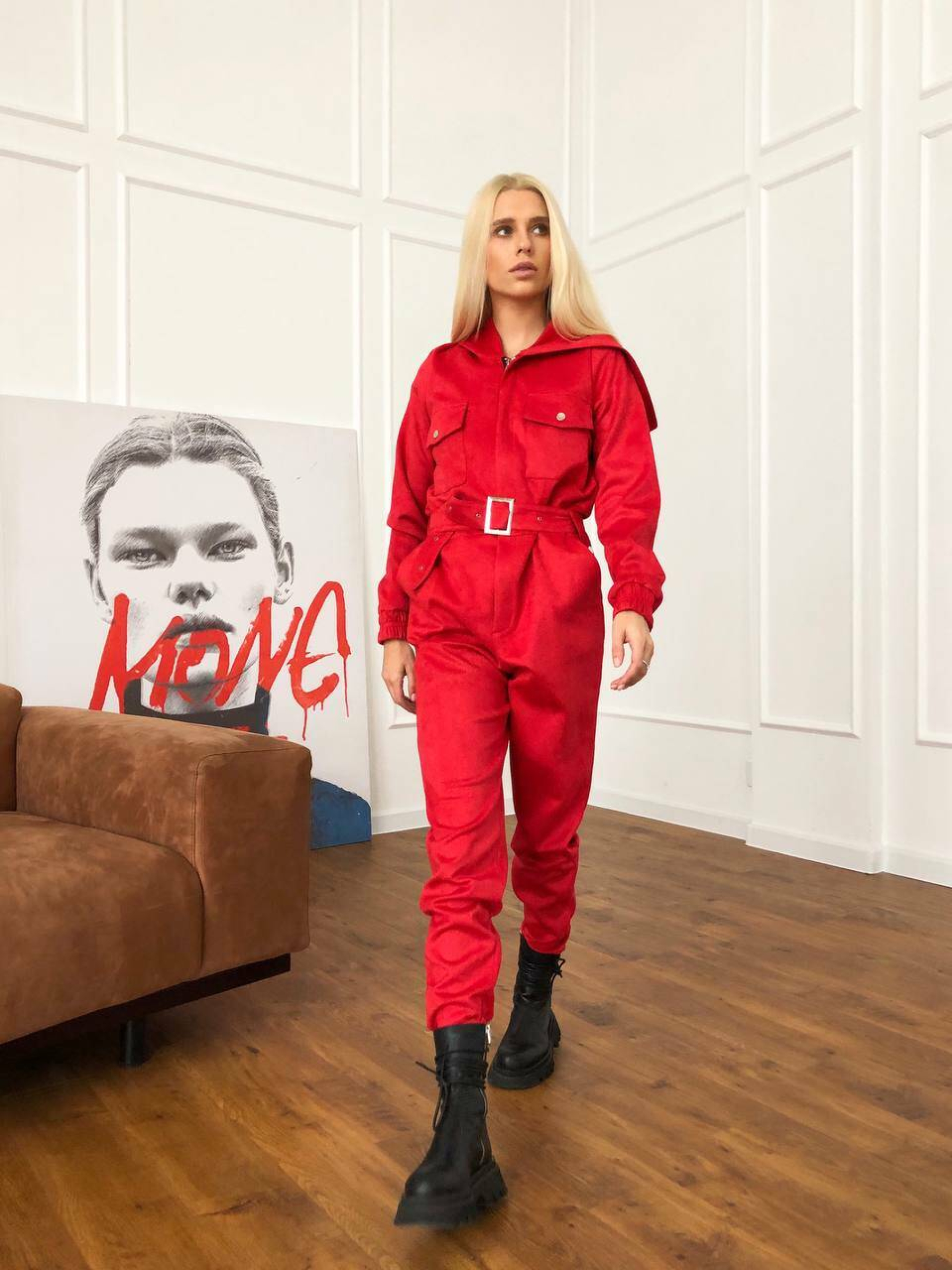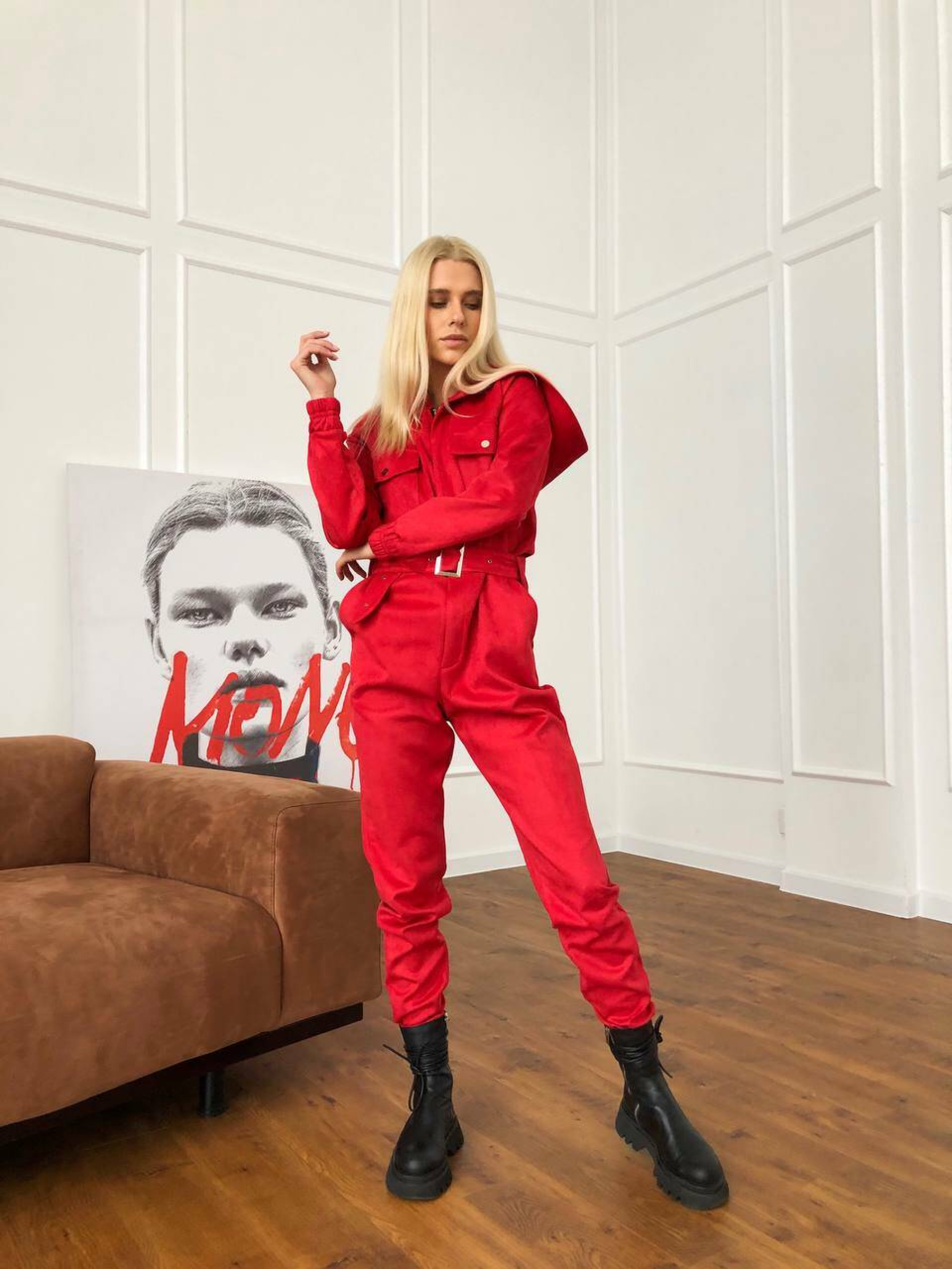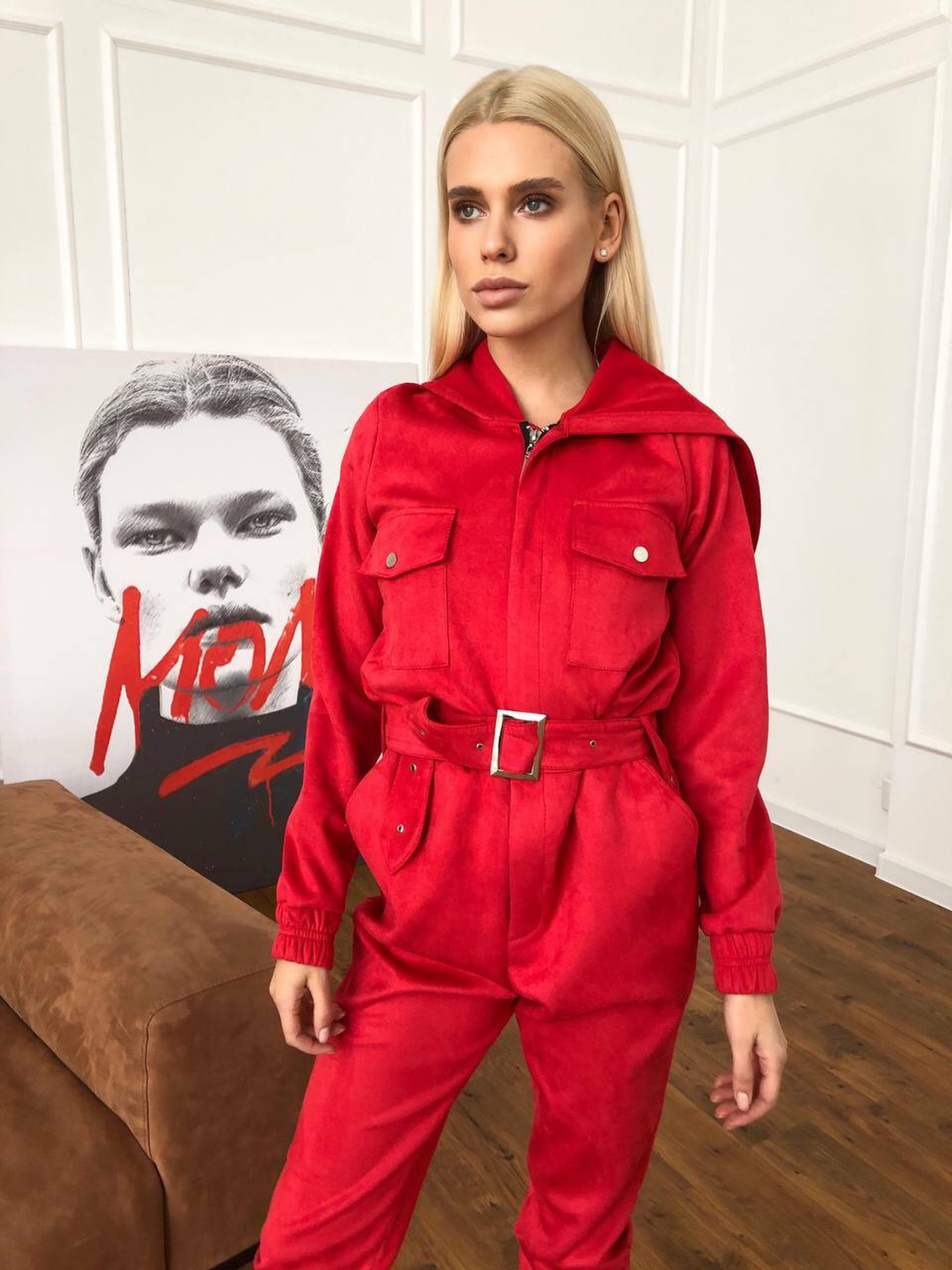 Характеристики: Застібка: металева блискавка спереду Додатково: ремінь із металевою бляшкою Кишені: 2 нагрудні та 2 на штанинах Особливість крою: розстібається на попереку (бокові кнопки) Розмір: S–L Матеріал: щільна замша на основі дайвінгу Кольори: бежевий, червоний, пудровий, чорний, хакі Догляд: машинне або ручне прання при температурі не вище 30 °C не використовувати відбілювач прасування при середній температурі (до 110 °C) через тканину хімічна чистка не рекомендована сушити у розправленому вигляді, подалі від прямих сонячних променів Особливості та опис: Модель виконана з м’якої щільної замші на еластичному дайвінгу — тканина приємна до тіла, добре тягнеться, не сідає після прання. Завдяки зручному фасону комбінезон красиво підкреслює фігуру, забезпечує свободу рухів і комфорт під час носіння. Металева блискавка додає сучасності, а ремінь із бляшкою акцентує талію. Кишені на грудях і штанинах роблять модель практичною для щоденного використання. Завдяки універсальним кольорам комбінезон легко поєднується з кросівками, черевиками чи навіть підборами. Комбінезон стане чудовим вибором для активних жінок, які цінують зручність і стиль. Ідеально підходить для прогулянок, подорожей чи міських образів.