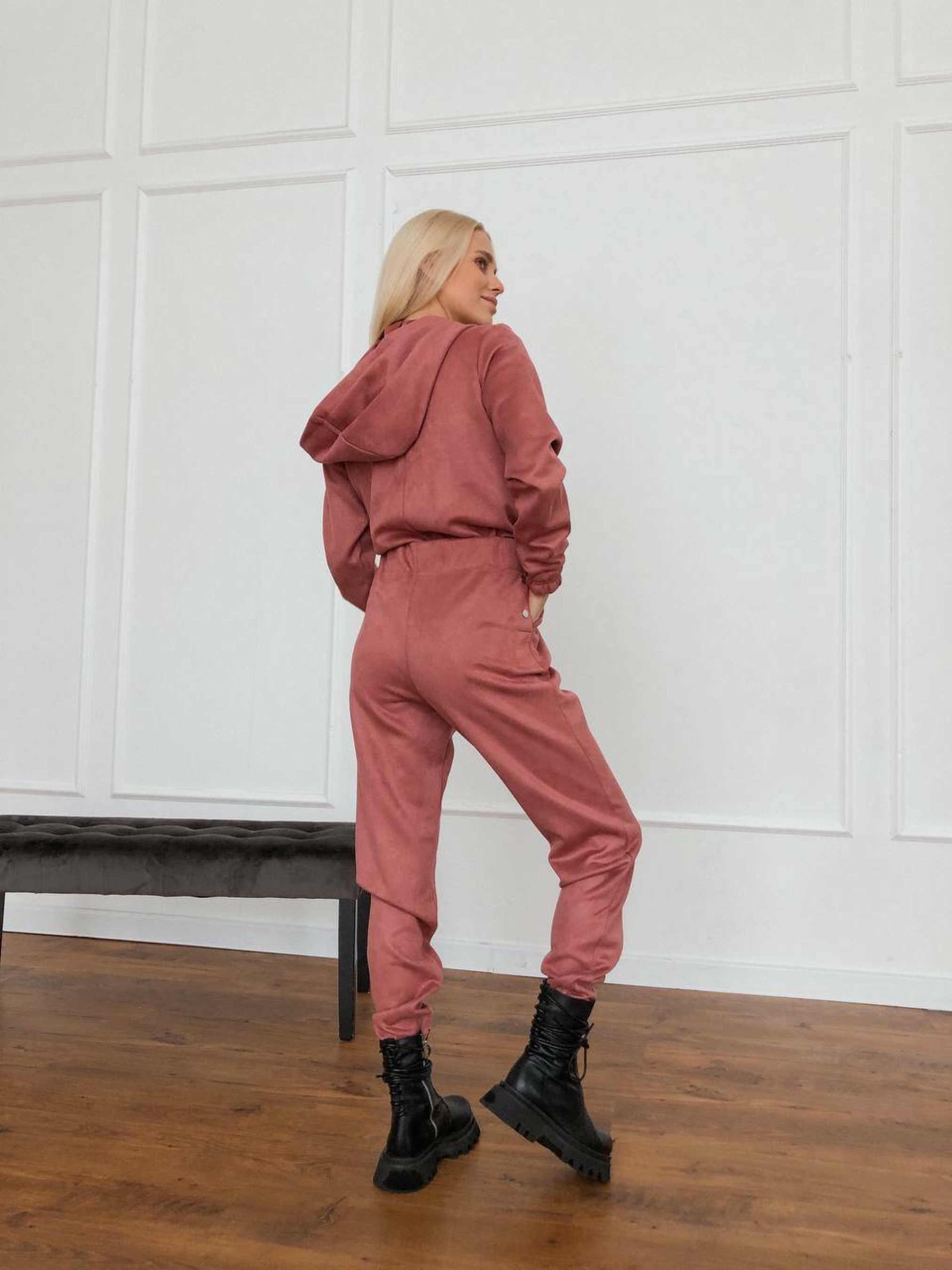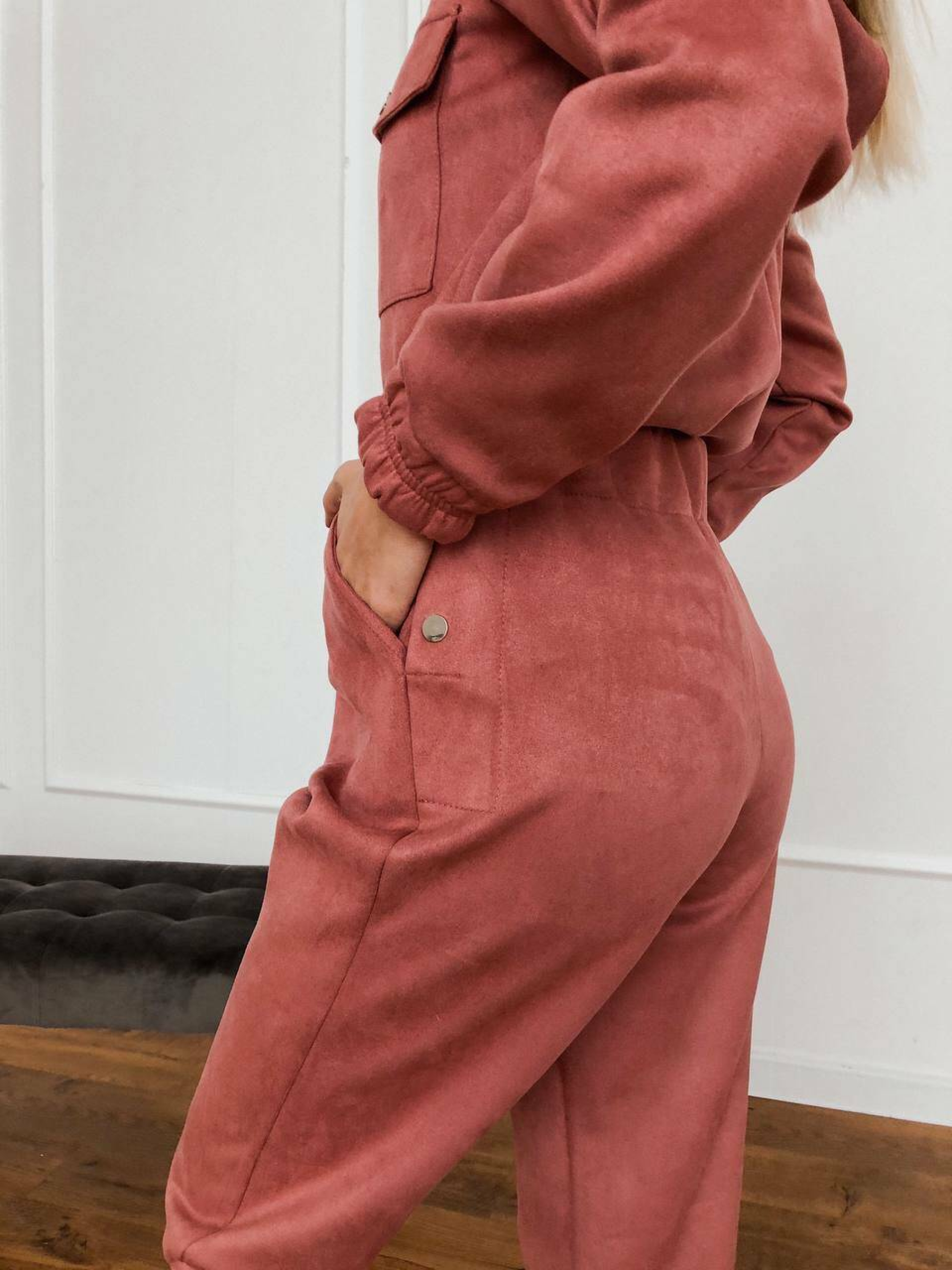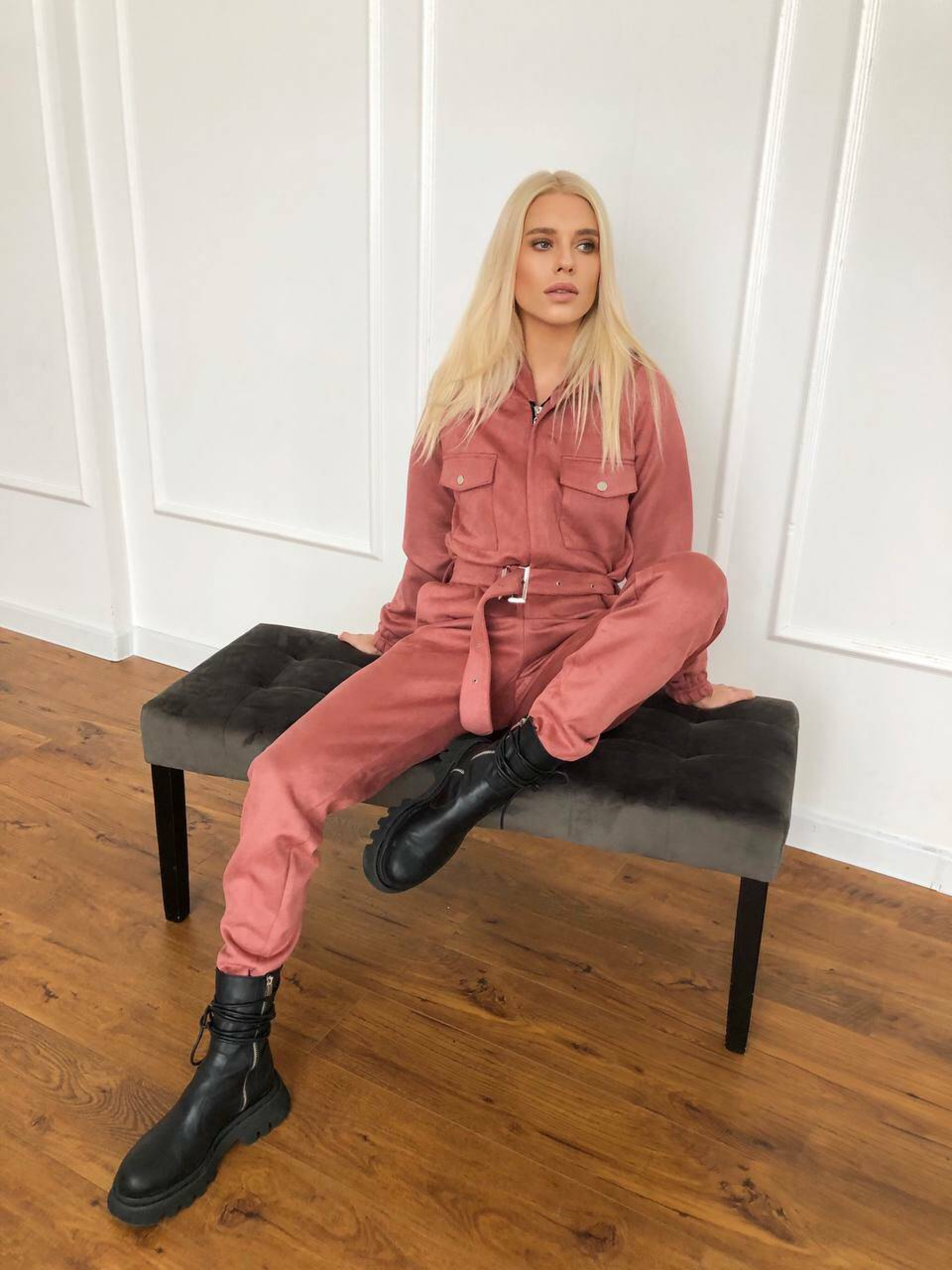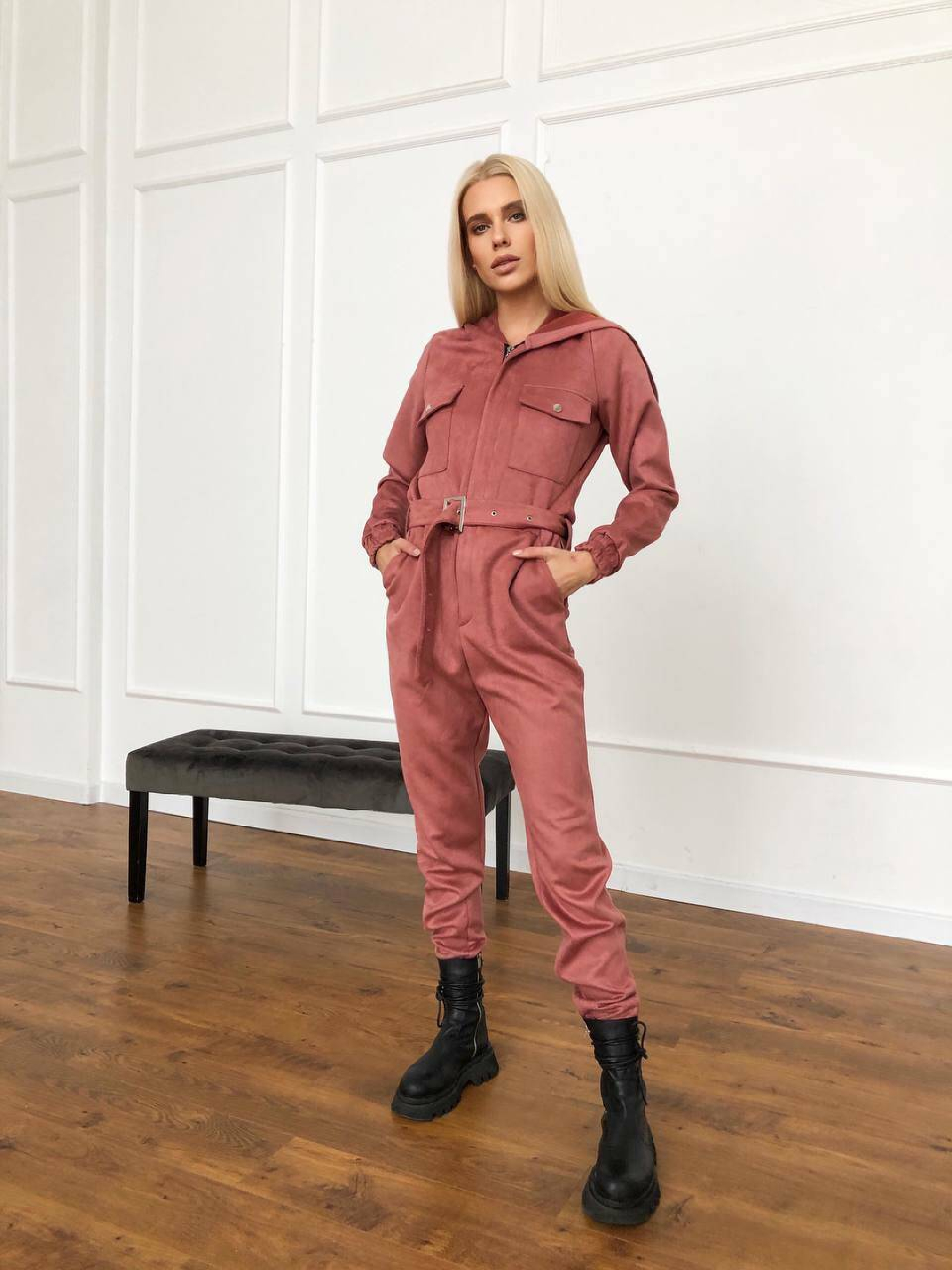 Характеристики: Застібка: металева блискавка спереду Додатково: ремінь із металевою бляшкою Кишені: 2 нагрудні та 2 на штанинах Особливість крою: розстібається на попереку (бокові кнопки) Розмір: S–L Матеріал: щільна замша на основі дайвінгу Кольори: бежевий, червоний, пудровий, чорний, хакі Догляд: машинне або ручне прання при температурі не вище 30 °C не використовувати відбілювач прасування при середній температурі (до 110 °C) через тканину хімічна чистка не рекомендована сушити у розправленому вигляді, подалі від прямих сонячних променів Особливості та опис: Модель виконана з м’якої щільної замші на еластичному дайвінгу — тканина приємна до тіла, добре тягнеться, не сідає після прання. Завдяки зручному фасону комбінезон красиво підкреслює фігуру, забезпечує свободу рухів і комфорт під час носіння. Металева блискавка додає сучасності, а ремінь із бляшкою акцентує талію. Кишені на грудях і штанинах роблять модель практичною для щоденного використання. Завдяки універсальним кольорам комбінезон легко поєднується з кросівками, черевиками чи навіть підборами. Комбінезон стане чудовим вибором для активних жінок, які цінують зручність і стиль. Ідеально підходить для прогулянок, подорожей чи міських образів.