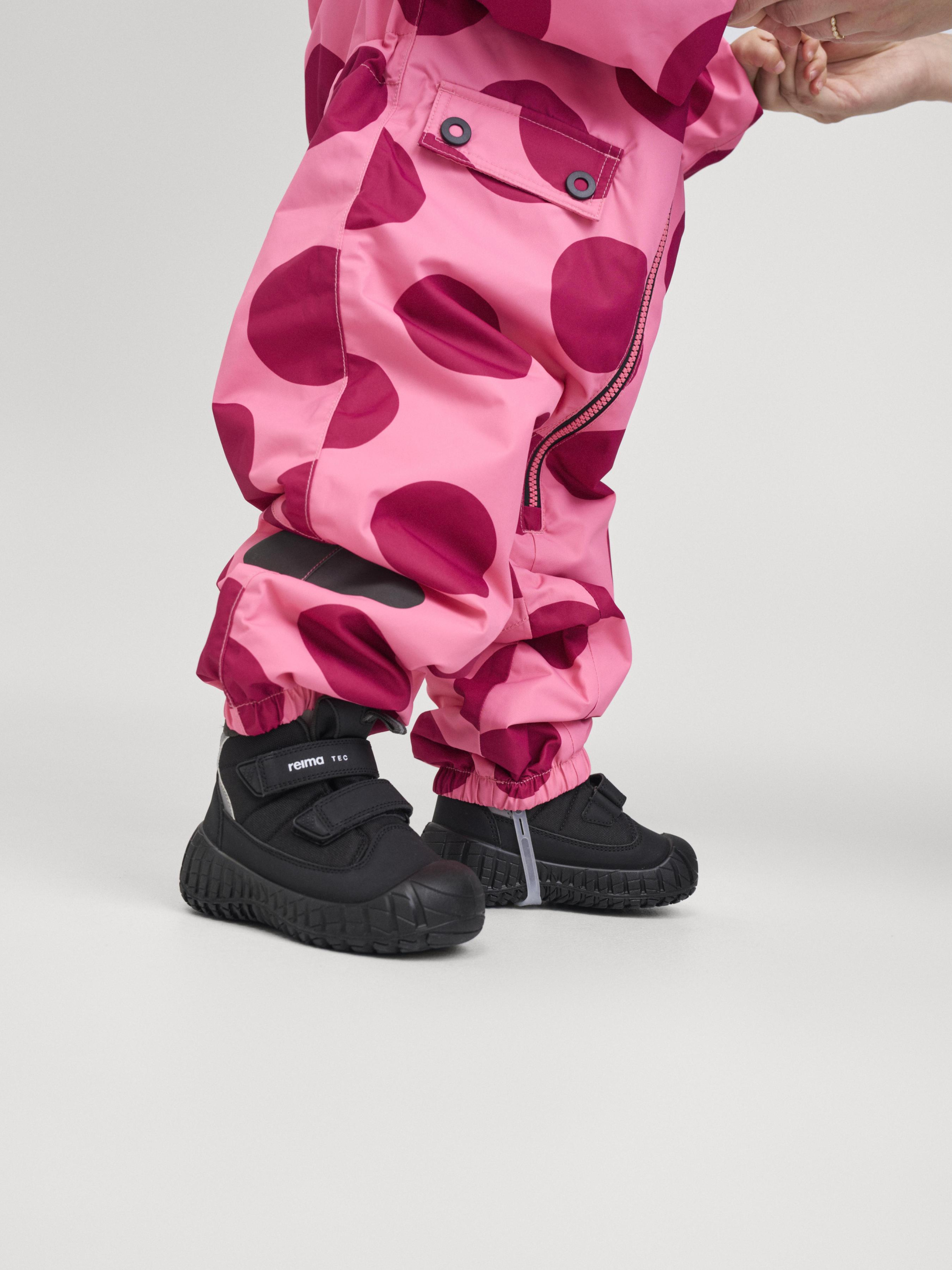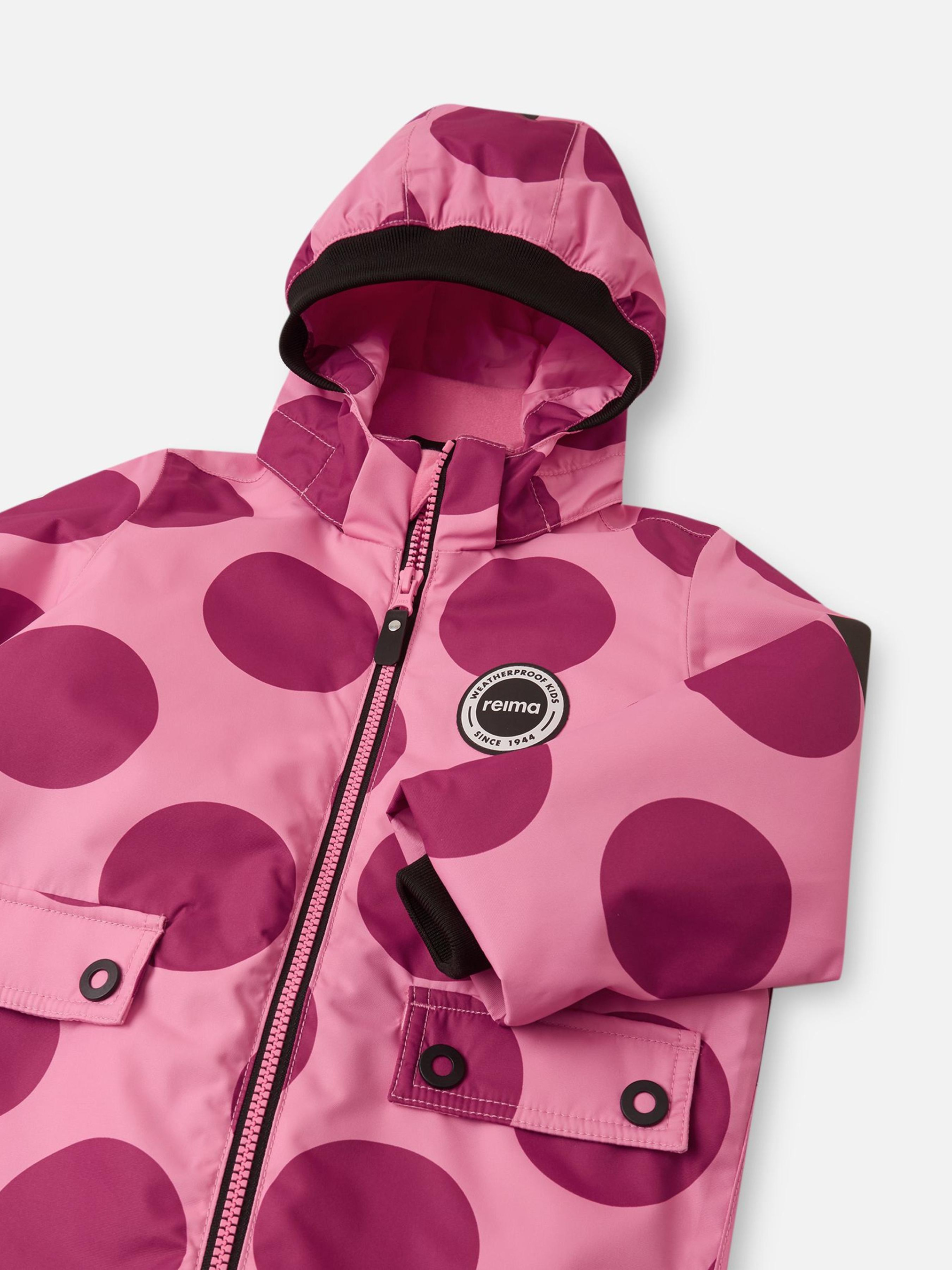 Склад: Reimatec Pro BS GRS: 100% перероблений поліестер, поліуретанове покриття Температурний режим: +5°C ... -10°C Водонепроникність основного матеріалу: >10 000 Повітрепровідність основного матеріалу: >7 000 Зносостійкість основного матеріалу (по тесту Мартіндейла): 30000 Матеріал: Taslan Pro BS GRS Показник проклейки швів: 3 Вітронепроникний матеріал Водовідштовхувальний і брудовідштовхувальний матеріал Дозволено сушіння у пральній машині/сушильній шафі Не містить фторвуглецю Світловідбивні деталі Перероблений матеріал Усі шви запаяні, водонепроникні|Міцний матеріал|Основний матеріал, підкладка та утеплювач схвалені за стандартом bluesign®|Містить перероблені волокна із сертифікатом якості|Водо- та брудовідштовхуюче просочення без вмісту фторвуглеців BIONIC-FINISH®ECO|Гладка підкладка з поліестеру, що містить сертифіковане повторно перероблене волокно|Легкий ступінь утеплення|Сертифікований за стандартом bluesign® утеплювач Fellex® повністю із переробленого поліестеру|Безпечний, знімний капюшон|М'яка резинка на краю капюшона і манжетах|Внутрішнє регулювання обхвату талії|Еластичні манжети на холошах|Міцні силіконові штрипки|Дві кишені з кнопками|Деталі, що відбивають світло|Принт нанесений методом цифрового друку Догляд: Прати окремо, вивернувши навиворіт. Застебнути блискавки та липучки. Прати миючим засобом, що не містить відбілюючих речовин. Полоскати без спеціального засобу. Щоб уникнути зміни кольору, виріб необхідно вийняти з пральної машинки відразу після закінчення програми прання. Можна сушити в сушильній шафі або центрифузі (макс. 40°C). Дизайн цього демісезонного комбінезону для малюків навіяний стилем колекції Reima 70-х років. Протягом багатьох років ми зберігали легке утеплення, місткі кишені та м’які манжети в рубчик, але додавали тут і там дрібні геніальні штрихи, щоб зробити цей цільний виріб ще більш функціональним і ще кращим. Усі шви комбінезону проклеєні та забезпечують водонепроникність. Матеріал має брудо- та водовідштовхуючі властивості. Гладка підкладка полегшує надягання. Знімний капюшон безпечний: він кріпиться кнопками і легко відстібається, зачепившись за щось. Талія регулюється зсередини, а штрипки фіксують манжети штанів на місці. Дві кишені з клапанами та великі деталі, що відбивають світло, завершують ретро-образ! Обирайте улюблений колір, і ви зрозумієте, чому батьки та діти люблять цю модель протягом багатьох років.
