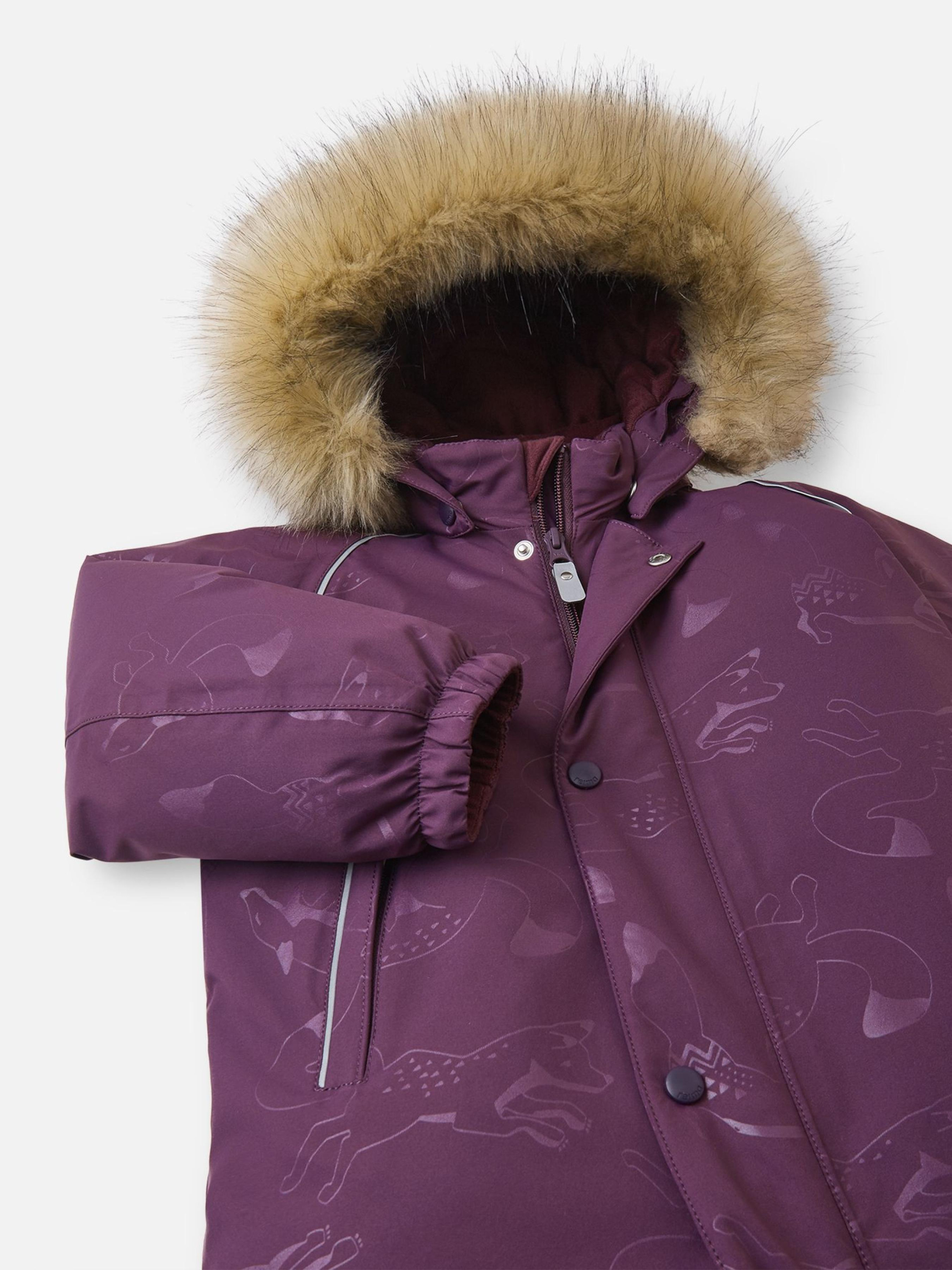 Склад: Reimatec stretch emboss BS GRS: 100% перероблений поліестер, поліуретанове ламінування Температурний режим: -10°C ... -30°C Водонепроникність основного матеріалу: >10 000 Повітрепровідність основного матеріалу: >7 000 Зносостійкість основного матеріалу (по тесту Мартіндейла): 20000 Матеріал: ReimaTec stretch emboss BS GRS Показник проклейки швів: 3 Вітронепроникний матеріал Еластичний матеріал Водовідштовхувальний і брудовідштовхувальний матеріал Утеплювач пух/пір'я Дозволено сушіння у пральній машині/сушильній шафі Не містить фторвуглецю Утеплена задня частина Перероблений матеріал Усі шви запаяні, водонепроникні|Містить перероблені волокна із сертифікатом якості|Водо- та брудовідштовхуюче просочення без вмісту фторвуглеців BIONIC-FINISH®ECO|Утеплена задня частина виробу|Гладка підкладка з поліестеру, що містить сертифіковане повторно перероблене волокно|Пух та перо сертифіковані відповідно до стандарту Responsible Down Standard|Як утеплювач використані пух і перо (60%/40%), Fill Power 550|Матеріал підкладки схвалено стандартом bluesign®|Безпечний знімний капюшон зі знімним штучним хутром|Еластичні манжети на руках та ногах|Міцні силіконові штрипки|Довга блискавка для легкого одягання|Кишеня на блискавці Догляд: Прати окремо, вивернувши навиворіт. Перед пранням відстебніть штучне хутро. Застебнути блискавки та липучки. Прати миючим засобом, що не містить відбілюючих речовин. Полоскати без спеціального засобу. Щоб уникнути зміни кольору, виріб необхідно вийняти з пральної машинки відразу після закінчення програми прання. Барабанне сушіння за низької температури з 3 тенісними м'ячиками. Виверніть виріб навиворіт в середині сушіння. Наш дитячий пуховий комбінезон Reimatec+ має безліч чудових особливостей: всі його шви герметично проклеєні, а поверхня відштовхує воду і бруд. Утеплювач складається з 60% пуху та 40% пера, сертифікованого RDS, а задня частина має додаткове утеплення для більшого тепла. Гладка підкладка полегшує надягання комбінезону на непосидючих малюків, а знімний капюшон безпечний, тому що легко знімається, якщо за щось зачепиться. Невелика кишеня на блискавці збереже крихітні скарби. Міцні силіконові штрипки утримують краї штанів на місці, захищаючи маленькі ніжки від вологи та холоду. Цей зимовий комбінезон, що підходить для сушіння в сушильній машині, - чудовий вибір для повзання на природі або прогулянок містом!