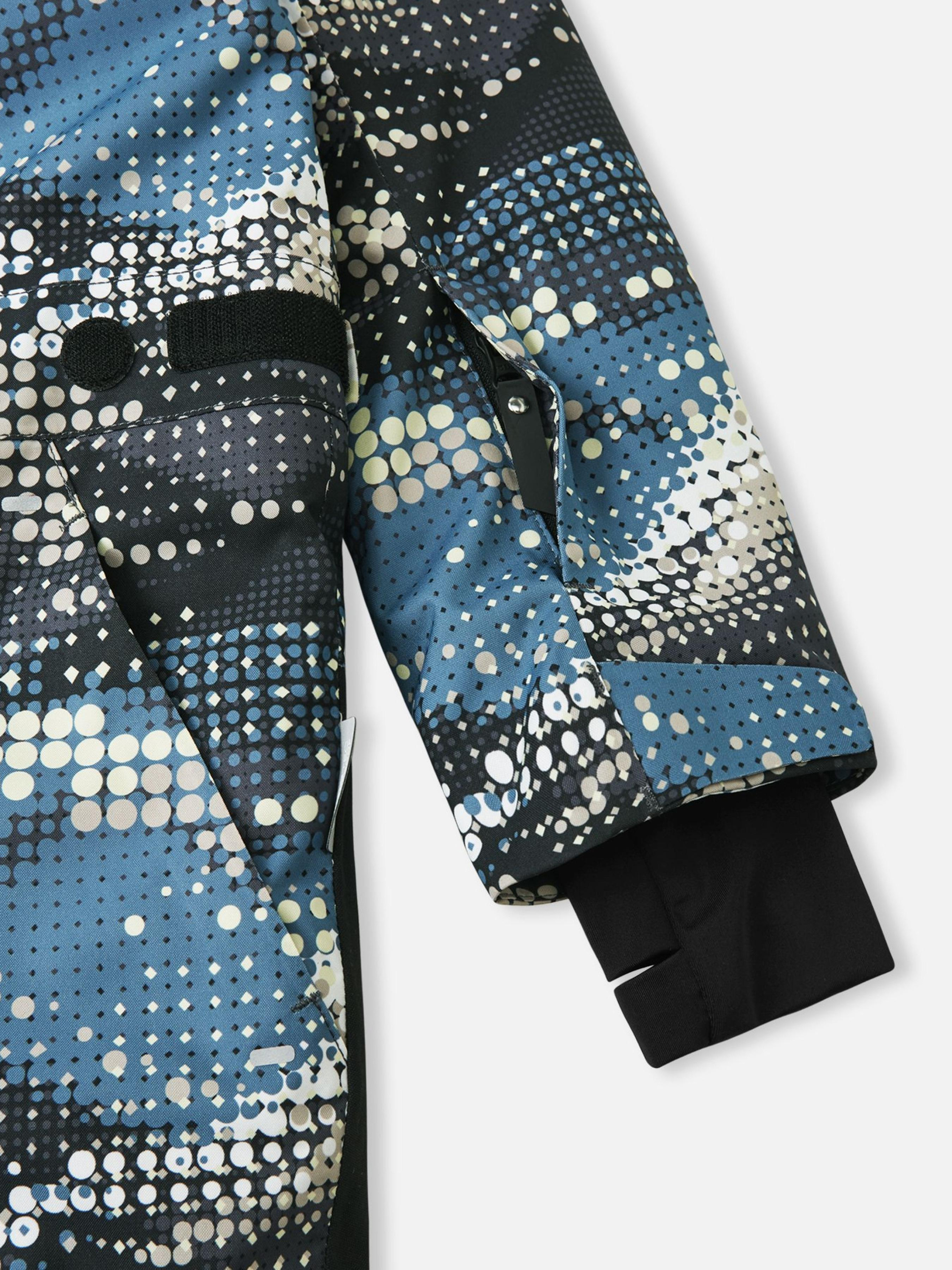 Склад: Reimatec flex BS GRS: 100% перероблений поліестер, ламінування переробленим TPU; вставки: Reimatec Duraplus GRS: 59% перероблений поліамід, 41% поліамід, поліуретанове ламінування Температурний режим: +5°C ... -10°C Водонепроникність основного матеріалу: >10 000 Повітрепровідність основного матеріалу: >7 000 Зносостійкість основного матеріалу (по тесту Мартіндейла): 30000 Матеріал: ReimaTec flex BS GRS Показник проклейки швів: 3 Вітронепроникний матеріал Водовідштовхувальний і брудовідштовхувальний матеріал Не містить фторвуглецю Елементи гірськолижного одягу Міцні посилюючі вставки Перероблений матеріал Всі шви герметично проклеєні | Міцний матеріал | Вставки з дуже міцного матеріалу в нижній частині та зоні сидіння | Гладка підкладка з поліестеру | Безпечний, знімний та регульований капюшон | Регульовані манжети та еластичні внутрішні манжети з отворами для великого пальця | Кишені на блискавці, кишеня для скіпасу на рукаві | Внутрішня нагрудна кишеня на блискавці від розміру 116 і більше | Кишені з клапаном та застібкою-блискавкою ззаду | Регульована талія | Регульовані сноулоки на кінцях холош | Щоб закріпити штанину, зафіксуйте її на сноулоці | Продукт повністю сертифікований за стандартом bluesign® | Основний матеріал, підкладка та утеплювач сертифіковані за стандартом bluesign® | Просочення BIONIC-FINISH®ECO, що відштовхує воду та бруд, без фторвуглеців | Містить сертифіковані перероблені волокна | Утеплювач на 100% із перероблених матеріалів | Мембрана на 100% із перероблених матеріалів | Принт нанесено методом цифрового друку Догляд: Прати окремо, вивернувши навиворіт. Застебнути блискавки та липучки. Прати миючим засобом, що не містить відбілюючих речовин. Полоскати без спеціального засобу. Щоб уникнути зміни кольору, виріб необхідно вийняти з пральної машинки відразу після закінчення програми прання. Можна сушити в сушильній шафі або центрифузі (макс. 40°C). Маленькі шукачі пригод будуть у теплі й сухості в дитячому водонепроникному зимовому комбінезоні Lappea. Його водонепроникна конструкція з проклеєними швами забезпечує сухість і комфорт навіть за найсуворішої погоди. Міцний матеріал із легким утеплювачем дарує ідеальне тепло без шкоди для повітропроникності. Завдяки деталям, зручним для катання на лижах, дуже міцним посиленням і водо- та брудовідштовхуючому просоченню цей комбінезон ідеально підходить для активних дітей. Безпечний знімний капюшон, регульовані манжети та талія забезпечують індивідуальну посадку. Модель також має кишені на блискавках, кишеню для скі-пасу та сноулоки на холошах. У темну пору доби ваша дитина буде більш помітною завдяки елементам, що відбивають світло.
