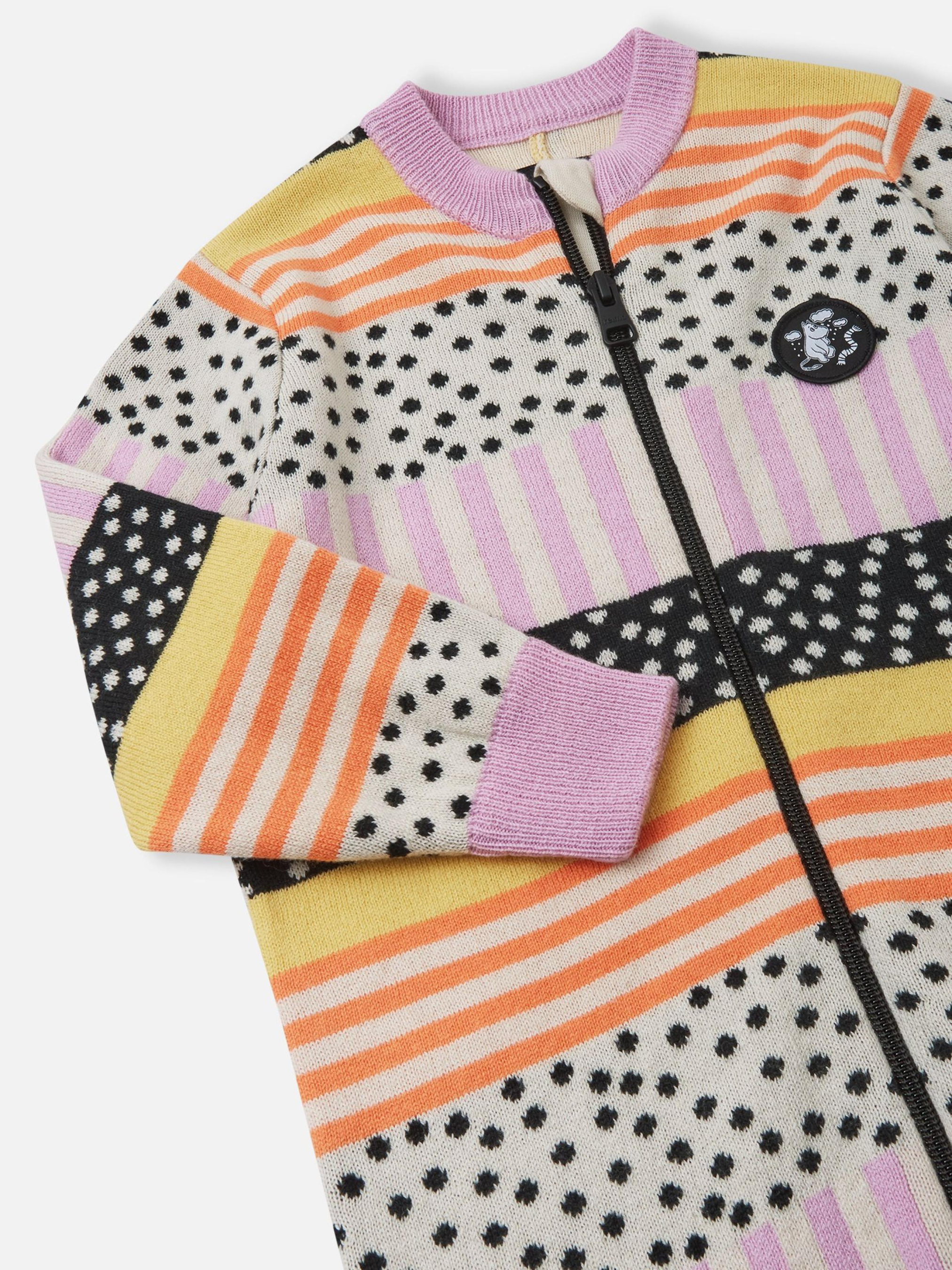 Склад: Merino wool organic cotton RWS: 50% мериносова вовна, 50% органічна бавовна Матеріал: Merino wool organic cotton RWS Еластичний матеріал Терморегуляція Містить вовну Органічна бавовна М’яка суміш на основі мериносової вовни для ідеальної терморегуляції|Довга блискавка полегшує одягання|Прикраса-аплікація|Візерунок у смужку|Виготовлено з сертифікованої органічної бавовни|Сертифіковано Control Union CU872203 відповідно до стандарту Responsible Wool Standard Догляд: Прати з білизною однакового кольору, вивернувши навиворіт. Застебнути блискавки. Прати миючим засобом, що не містить відбілюючих речовин. Надати початкову форму поки виріб вологий. Сушити за низької температури. Можлива усадка 5%. Теплий трикотаж цього комбінезону Reima для малюків дуже м'який і приємний на дотик. Модель виготовлена із суміші високоякісної мериносової вовни та органічної бавовни, і її легко випрати на режимі для вовни — а це означає менше турбот і більше радості щодня. Завдяки чудовому малюнку в стилі Мумі-тролі ця модель обов'язково стане найулюбленішою для вашого малюка!