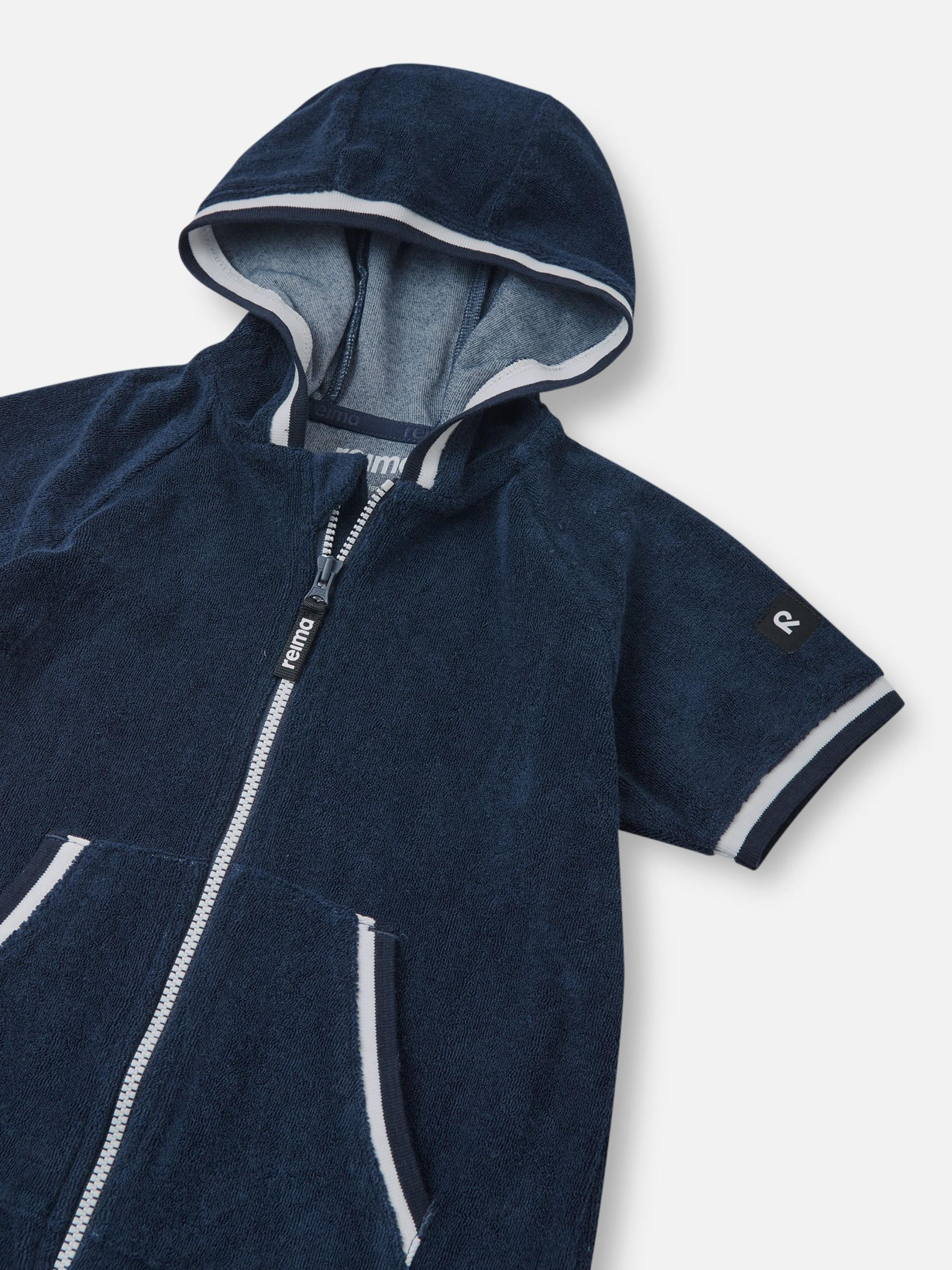 Склад: SunProof organic terry: 56% віскоза, 24% бавовна, 20% поліестер Повітрепровідність основного матеріалу: >7000 Матеріал: Light Tencel® terry УФ захист 50+ Еластичний матеріал Органічна бавовна М'який, еластичний махровий матеріал|Бавовна в цьому продукті сертифікована як органічна|Фактор захисту від ультрафіолету 50+|Модель довжиною до коліна з великими кишенями|Резинка на капюшоні й рукавах|Довга блискавка для легкого одягання|Резинка на отворі кишень Догляд: Прати та прасувати, вивернувши навиворіт. Прати з білизною однакового кольору. Застебнути блискавки. Прати миючим засобом, що не містить відбілюючих речовин. Надати початкову форму у вологому вигляді. М'яка, повітряна махра – чудовий матеріал влітку, який зігріє та подарує затишок після купання. З високим фактором захисту від ультрафіолету.