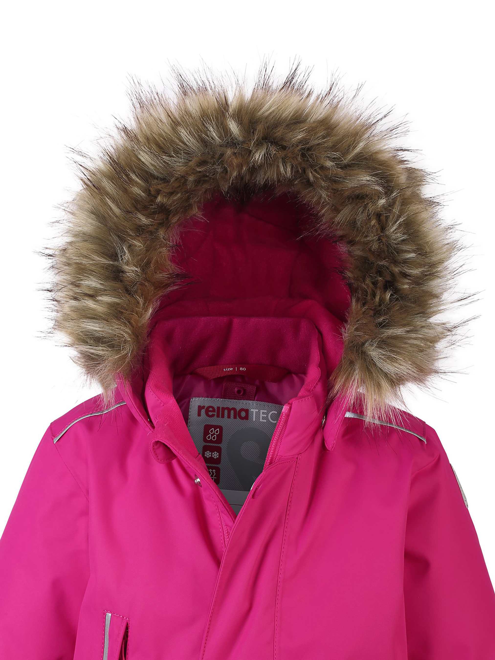 Класичний зимовий комбінезон для малюків дуже простий у догляді й ідеально підходить для всіх зимових забав. Цей водонепроникний зимовий комбінезон виготовлений із дихаючого й вітронепроникного, а також водо- й брудовідштовхуючого матеріалу. Усі шви проклеєні, водонепроникні, а ще комбінезон забезпечений утеплюючою вставкою на задній частині, завдяки якій дитині буде тепло й сухо під час зимових пригод. Завдяки гладкій підкладці з поліестеру комбінезон дуже легко надягати і зручно носити з теплим одягом проміжного шару. Зверніть увагу, що за допомогою зручної системи кнопок Play Layers до комбінезону можна приєднувати різноманітний одяг проміжного шару Reima. Знімний регульований капюшон забезпечує додаткову безпеку під час ігор на свіжому повітрі. Кнопки легко відстібаються, якщо капюшон випадково за що-небудь зачепиться. Міцні силіконові штрипки не дають штанинам задиратися й захищають ноги від холоду й вологи. Цей зимовий комбінезон відмінно підійде й для ігор у снігу, і для прогулянки по місту, а ще його можна сушити в сушильній машині!