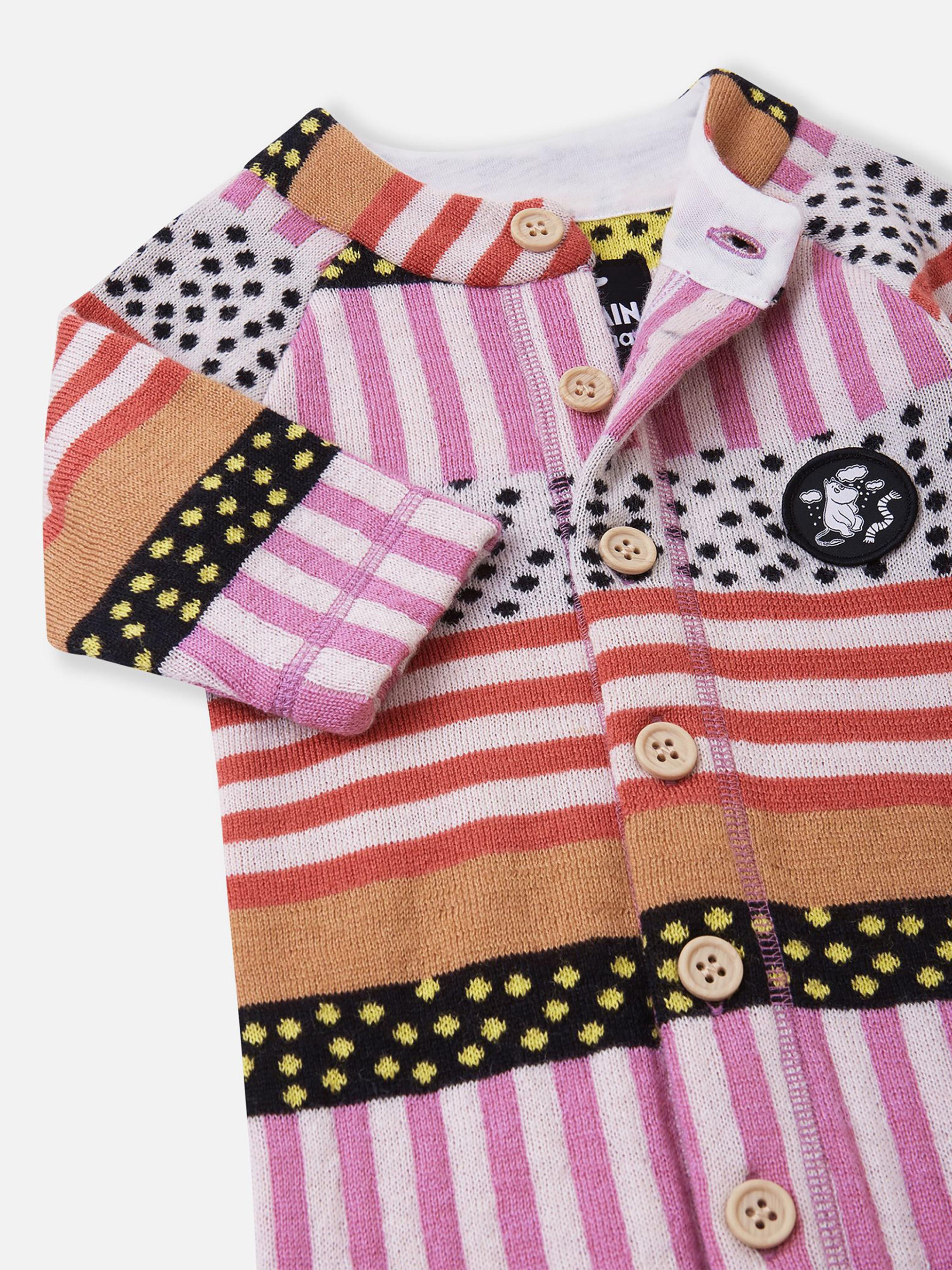 Комбінезон вовняний Moomin Mysig Склад: 50% вовна, 50% поліестер Матеріал: Merino wool rec polyester RWS Еластичний матеріал Терморегуляція Містить вовну Перероблений матеріал Вовна ідеально підходить для контролю температури|М'який і теплий трикотаж із суміші на основі вовни|Застібка на гудзиках на всю довжину|В'язаний візерунок|Сертифіковано Control Union CU872203 відповідно до стандарту Responsible Wool Standard Догляд: Прати з білизною однакового кольору, вивернувши навиворіт. Прати миючим засобом, що не містить відбілюючих речовин. Надати початкову форму поки виріб вологий. Сушити за низької температури. У цьому дуже симпатичному щільному і теплому вовняному комбінезоні малюкові буде м'яко та затишно. Злегка вільна модель добре підійде і для дому, і для піддягання як проміжний шар - комбінезон можна поєднувати, наприклад, з боді. Новий напіввовняний матеріал – дуже повітряний і напрочуд м'який – ніжно торкається шкіри малюка. М'які та плоскі шви не натирають. Поєднуйте з аксесуарами з тієї ж серії!