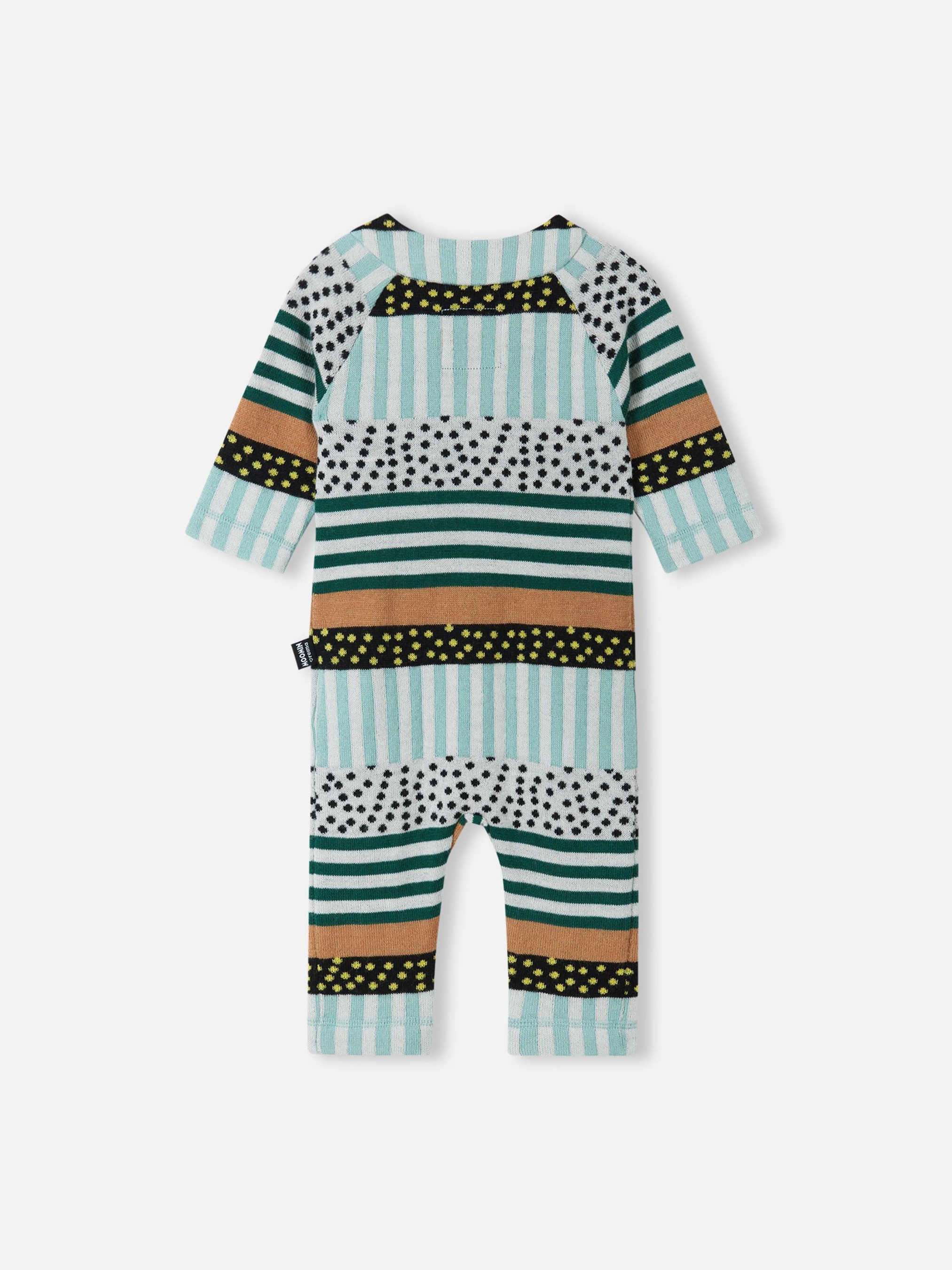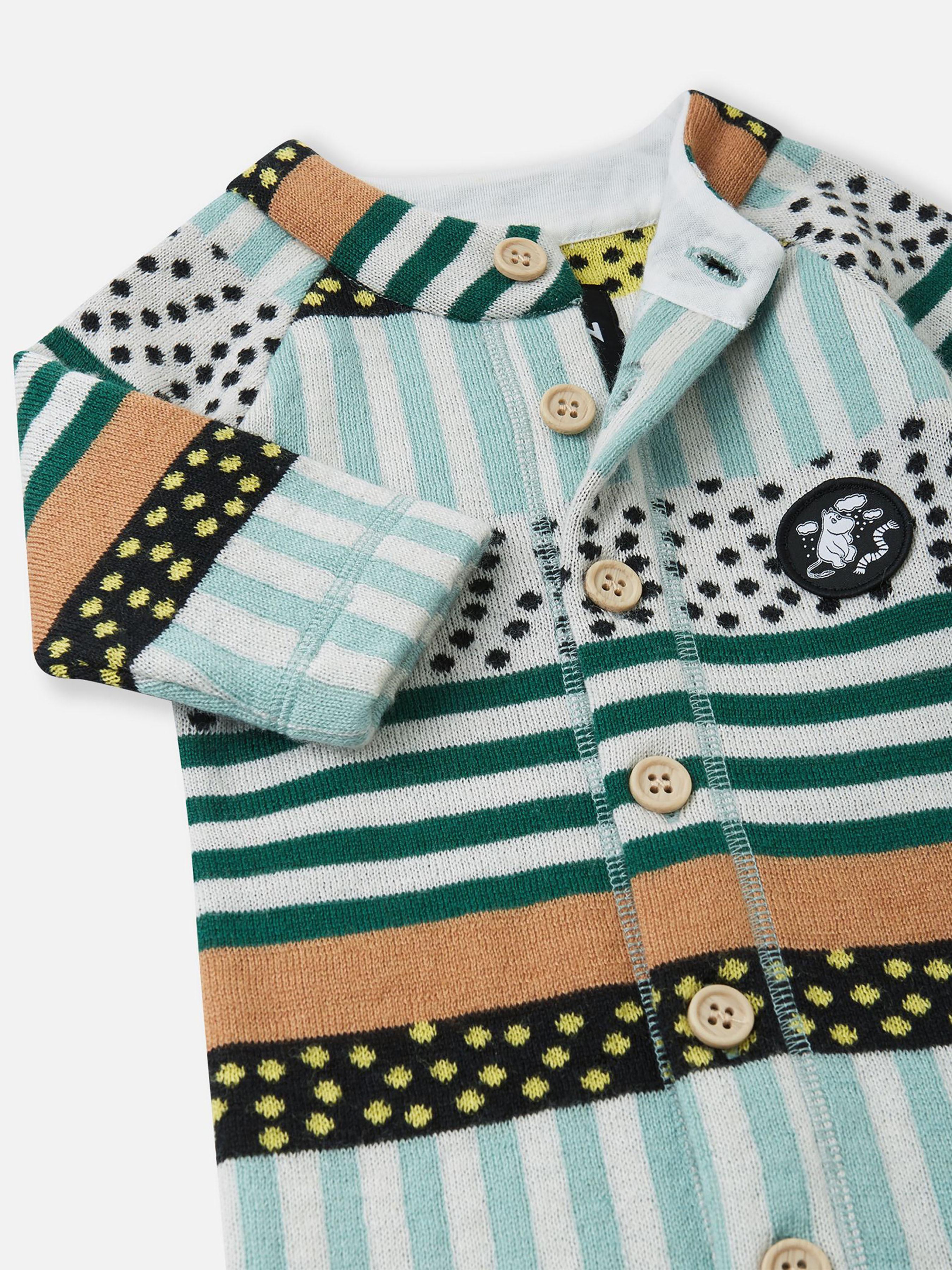 Комбінезон вовняний Moomin Mysig Склад: 50% вовна, 50% поліестер Матеріал: Merino wool rec polyester RWS Еластичний матеріал Терморегуляція Містить вовну Перероблений матеріал Вовна ідеально підходить для контролю температури|М'який і теплий трикотаж із суміші на основі вовни|Застібка на гудзиках на всю довжину|В'язаний візерунок|Сертифіковано Control Union CU872203 відповідно до стандарту Responsible Wool Standard Догляд: Прати з білизною однакового кольору, вивернувши навиворіт. Прати миючим засобом, що не містить відбілюючих речовин. Надати початкову форму поки виріб вологий. Сушити за низької температури. У цьому дуже симпатичному щільному і теплому вовняному комбінезоні малюкові буде м'яко та затишно. Злегка вільна модель добре підійде і для дому, і для піддягання як проміжний шар - комбінезон можна поєднувати, наприклад, з боді. Новий напіввовняний матеріал – дуже повітряний і напрочуд м'який – ніжно торкається шкіри малюка. М'які та плоскі шви не натирають. Поєднуйте з аксесуарами з тієї ж серії!
