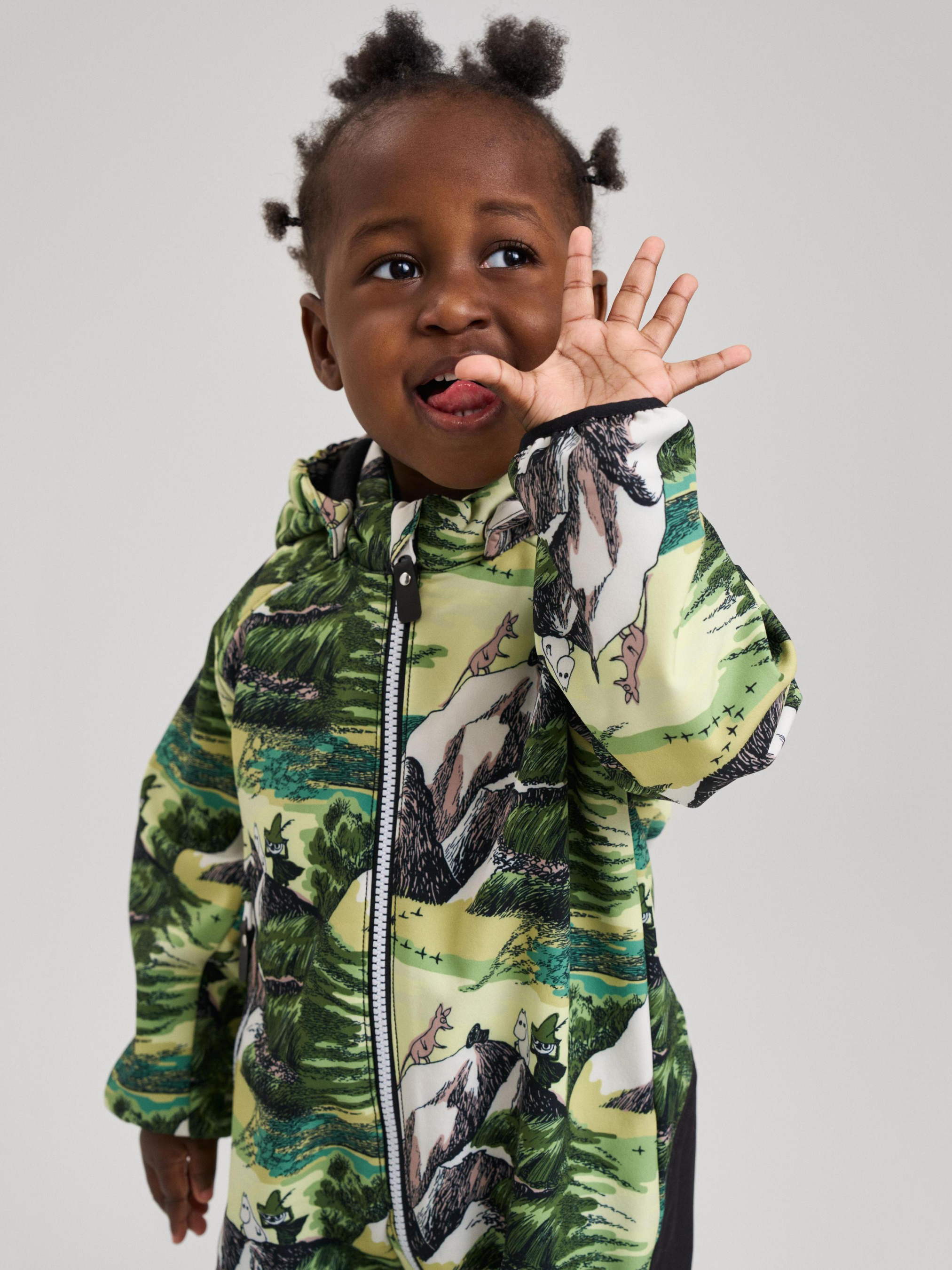 Склад: Softshell GRS: лицьова частина: 92% поліестер, 8% еластан; виворітна сторона: 100% перероблений поліестер, поліуретанова мембрана; вставки: Reimatec Duraplus BS GRS: 59% перероблений поліамід, 41% поліамід, поліуретанове ламінування Водонепроникність основного матеріалу: 10000 Повітрепровідність основного матеріалу: 3000 Зносостійкість основного матеріалу (по тесту Мартіндейла): 25000 Матеріал: Softshell GRS Міцність: міцний матеріал Вітронепроникний матеріал Водовідштовхувальний і брудовідштовхувальний матеріал Не містить фторвуглецю Світловідбивні деталі Міцні посилюючі вставки Перероблений матеріал Матеріал не пропускає вітер ззовні, але дихає|Дуже міцна нижня частина|Матеріал із декількох шарів, фліс на вивороті для тепла|Водо- та брудовідштовхуюче покриття без фторвуглеців Teflon EcoEliteTM|Безпечний знімний капюшон|Еластична окантовка по краям рукавів|Довга блискавка полегшує перевдягання|Кишеня на блискавці|Знімні еластичні штрипки|Принт з мумі-тролями на всій поверхні|Містить сертифіковані перероблені волокна Догляд : Застебнути блискавки та липучки. Прати миючим засобом, що не містить відбілюючих речовин. Полоскати без спеціального засобу. Щоб уникнути зміни кольору, виріб необхідно вийняти з пральної машинки відразу після закінчення програми прання. Можна сушити в сушильній шафі або центрифузі (макс. 40 °C). Цей чарівний комбінезон із матеріалу Softshell та колекції Moomin зігріє та захистить вашого малюка під час пригод на свіжому повітрі. Міцна, але дихаюча тканина захищає малюків від води, вітру та бруду, зберігаючи при цьому комфорт та сухість усередині. Знімний капюшон, еластичні манжети та довга блискавка полегшують одягання та роздягання. Кишені на блискавці надійно зберігають найнеобхідніші дрібниці. Вашій дитині сподобається милий принт із зображенням Мумі-тролів, а ви оціните, наскільки цей практичний комбінезон витримує все: від ігор на задньому дворі до сімейних походів у ліс.