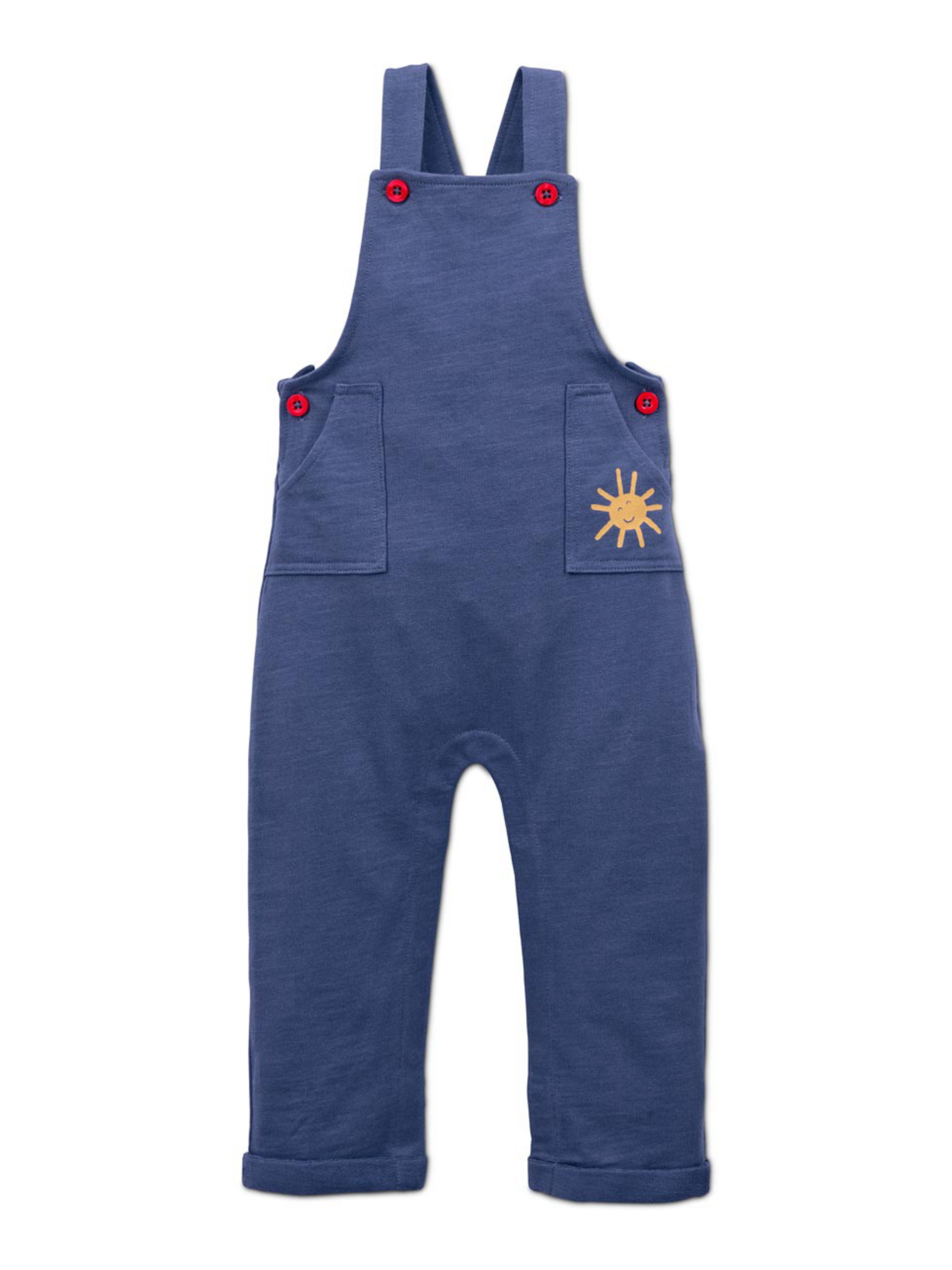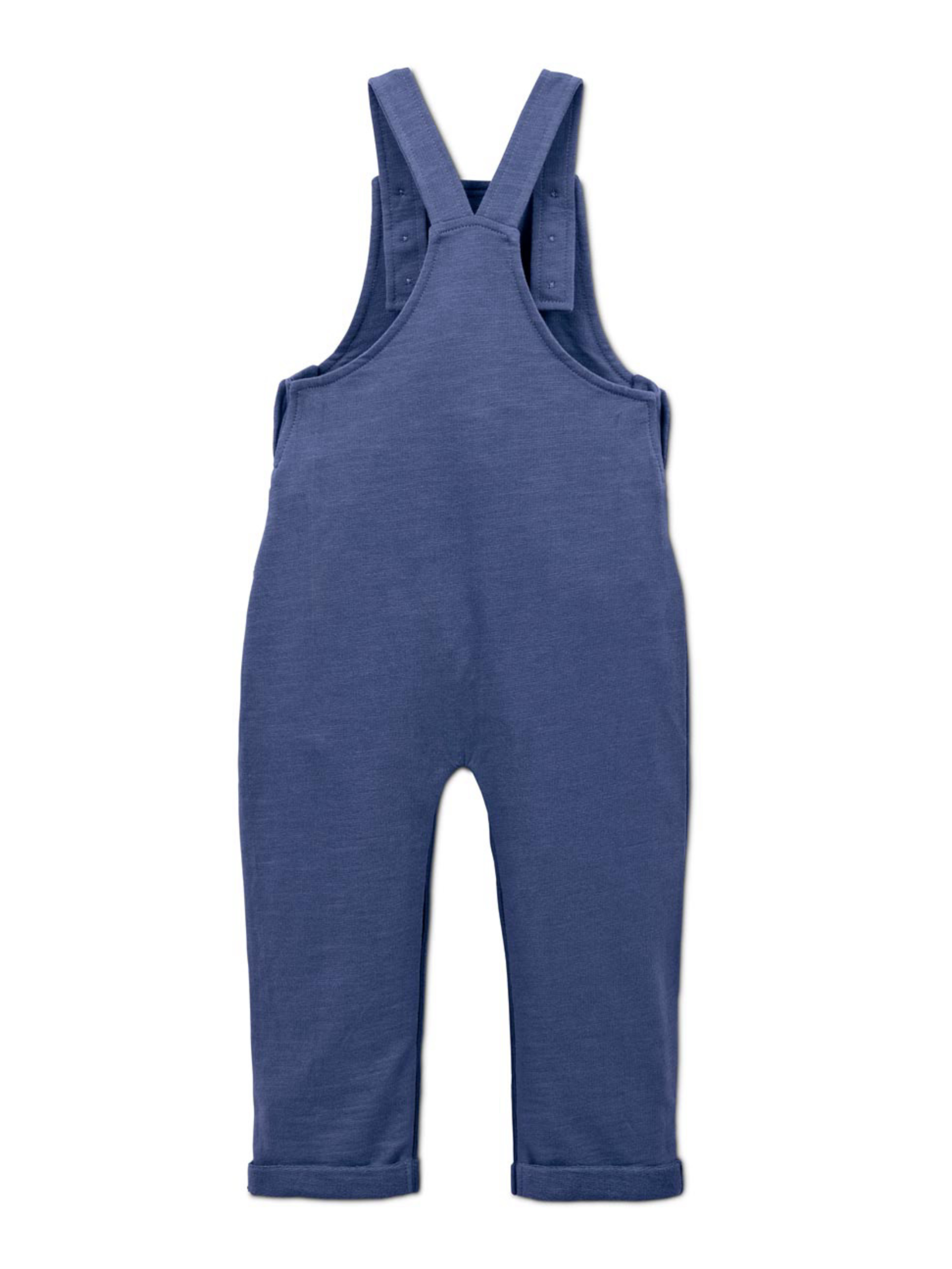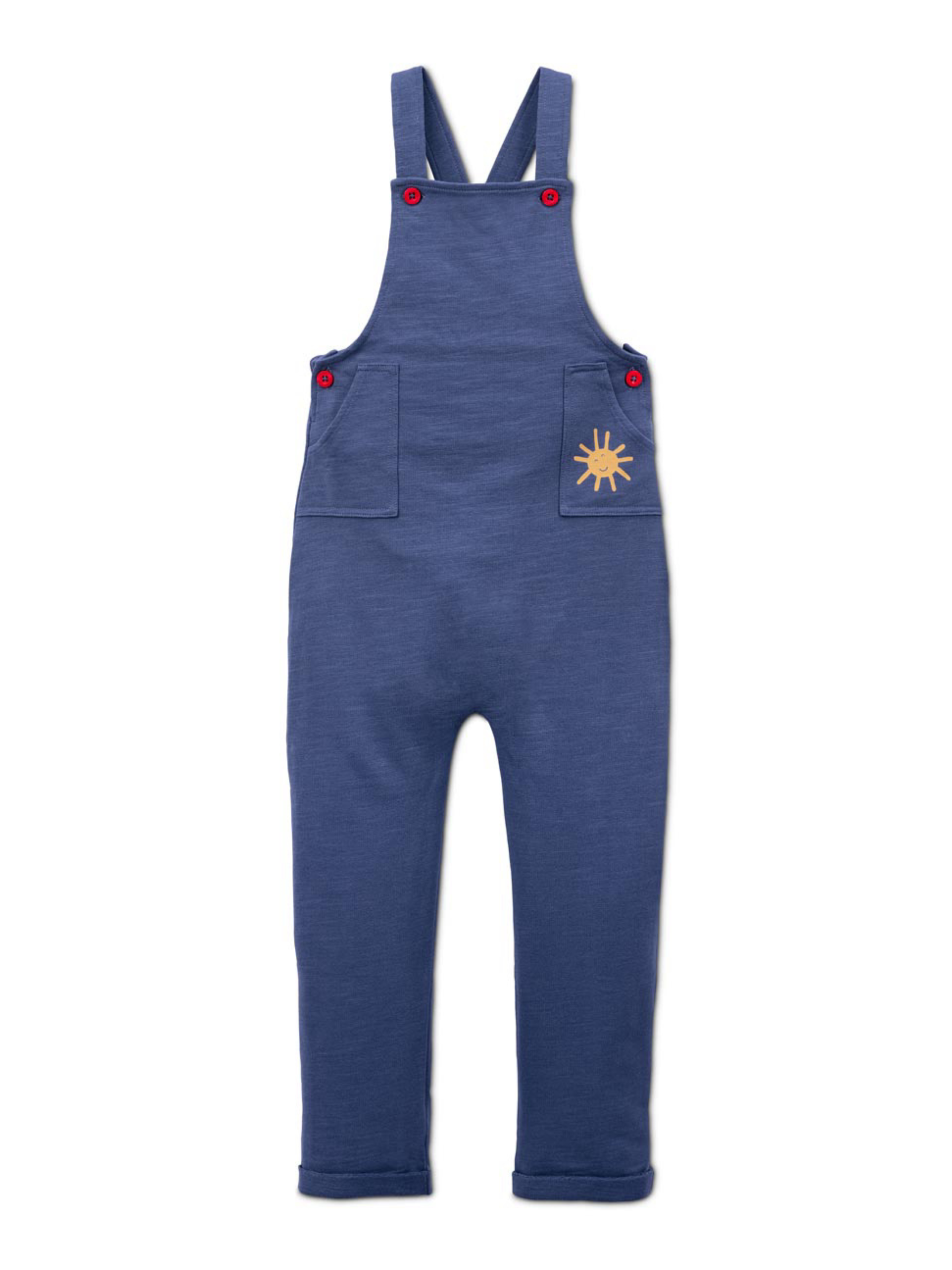 Сертифіковано GOTS Штани з регульованими бретелями на кнопках Штани з накладними кишенями спереду гр. 50/56 – 86/92 Штани відкриваються повністю застібками в промежині За винятком розміру. Застібки 98/104 на плечі для зручного одягання та знімання Перевірено на вміст шкідливих речовин – сторонніми акредитованими інститутами колір сині штани матеріал 100% бавовна (органічне вирощування) Розмір 62-68: ПОТ: 22 см, Напівобхват стегон:28 см, Довжина:57 см, крокова довжина: 19 см. Одяг бренду Tchibo зазвичай не має паперових етикеток. У більшості випадків внутрішні бірки зі складом тканини, назвою бренду або розміром зрізані частково або повністю.