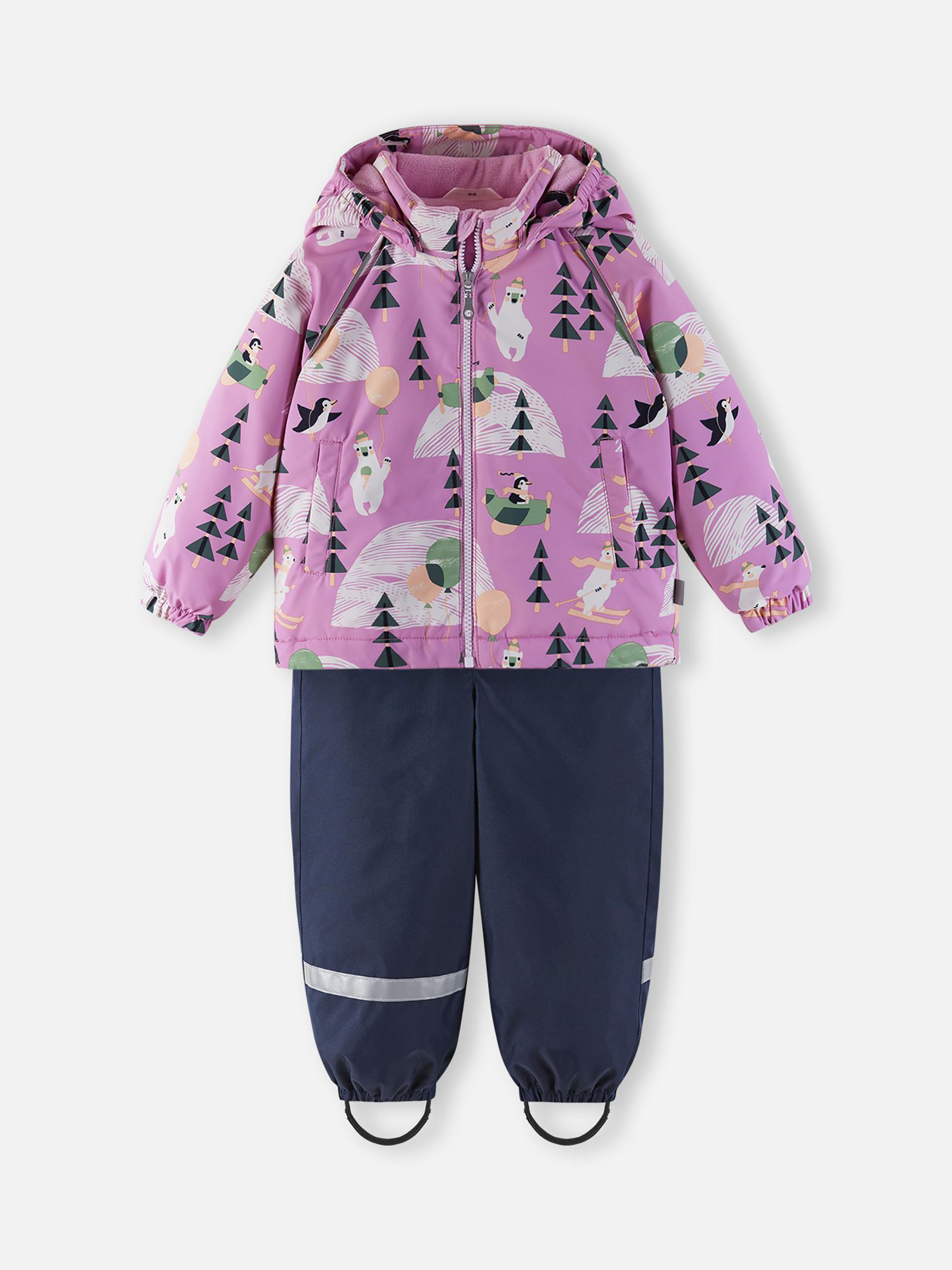Комплект зимовий Tutta Marius Склад: 100% поліестер, з поліуретановим покриттям Матеріал: Taslan rec GRS/Oxford Температурний режим: -15°...-30°C Показник водонепроникності, мм: 3000 Показник знососійкості (за тестом Мартіндейла): 20000 Вітронепроникний матеріал Світловідбивні деталі Міцний матеріал|Водонепроникний, вітрозахисний і дихаючий матеріал|Шви задньої частини штанів проклеєні|Підкладка з гладкого поліестеру|Утеплена модель|Безпечний знімний капюшон|Еластичні манжети на рукавах та холошах|Регульований поділ|Знімні еластичні штрипки|Дві прорізні кишені|Регульовані еластичні підтяжки|Деталі, що відбивають світло Догляд: Прати окремо, вивернувши навиворіт. Застебнути блискавки та липучки. Прати миючим засобом, що не містить відбілюючих речовин. Полоскати без спеціального засобу. Щоб уникнути зміни кольору, виріб необхідно вийняти з пральної машинки відразу після закінчення програми прання. Можна сушити в сушильній шафі або центрифузі (макс. 40°C). Цей красивий зимовий комплект для малюків сповнений чарівного духу зими, а ще він дуже практичний! Комплект виготовлений із міцного, вітронепроникного та дихаючого матеріалу з верхнім водо- та брудовідштовхуючим шаром, він забезпечує повний комфорт під час веселих прогулянок. Безпечний знімний капюшон прикрашає красиве, пухнасте штучне хутро, а регульований поділ дозволяє регулювати куртку ідеально по фігурі. Зверніть увагу на зручні знімні штрипки, за рахунок яких штани не задираються, і знімні регульовані підтяжки - штани не спадатимуть, як не бігай!