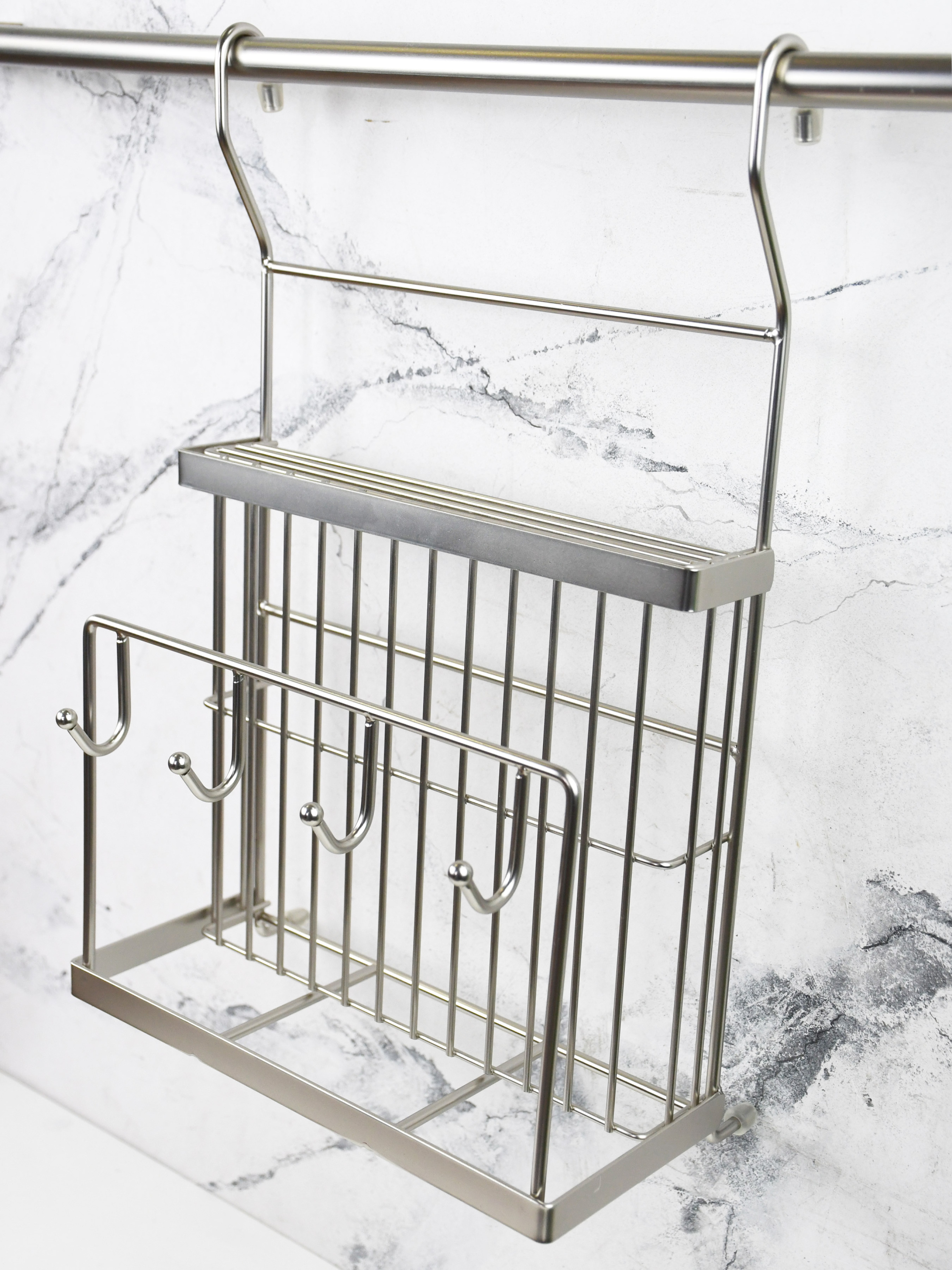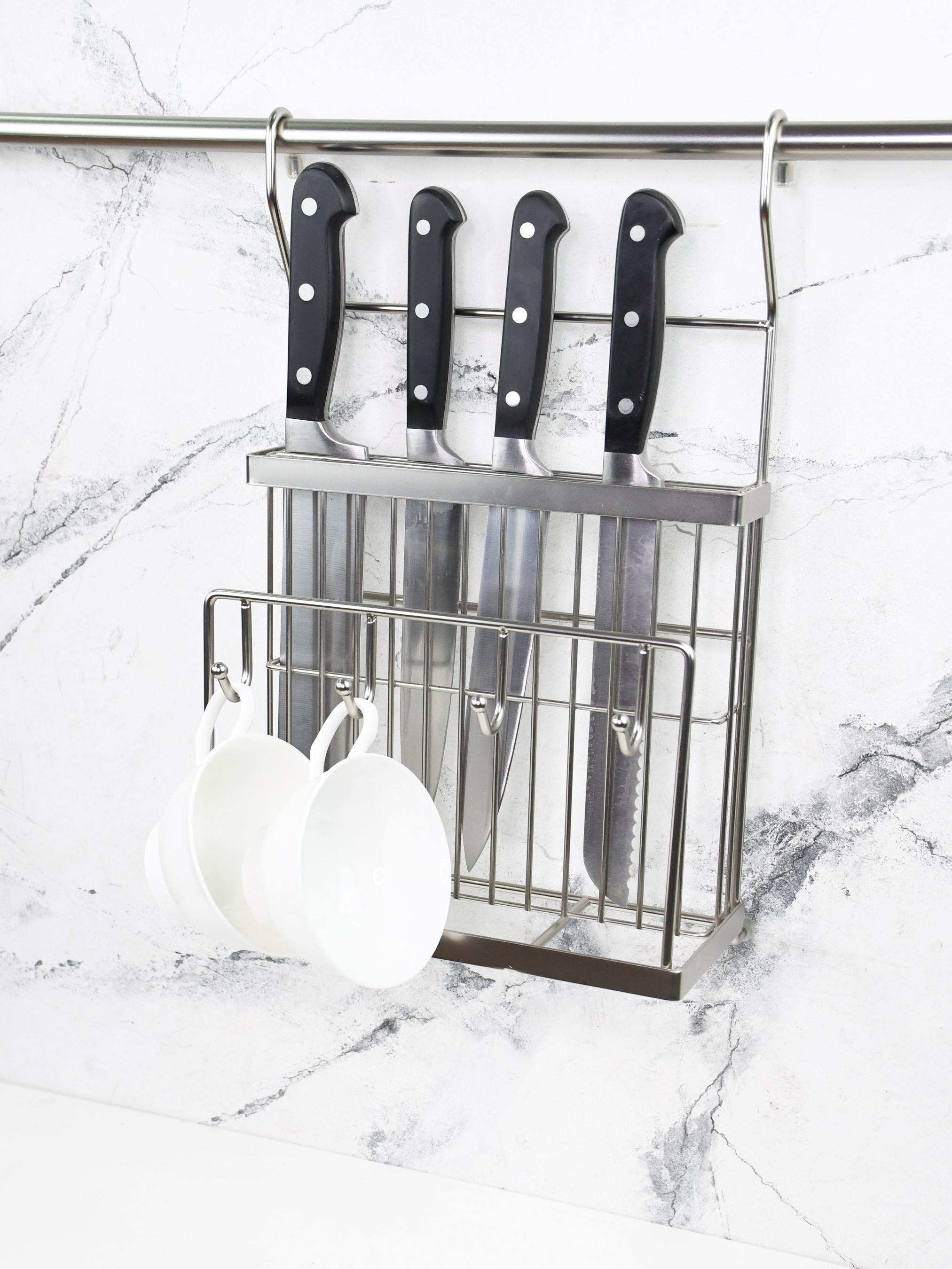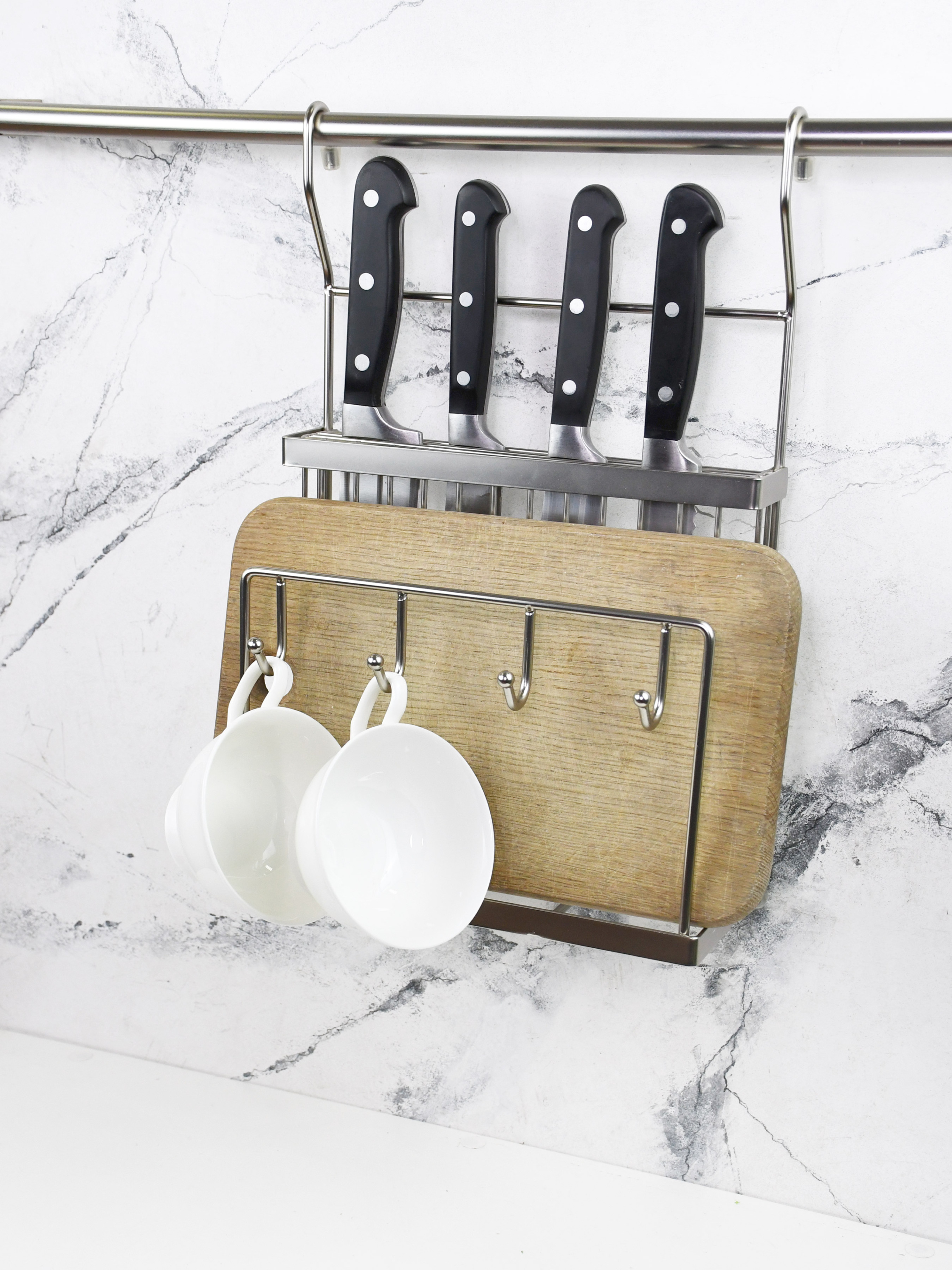 Полиця для ножів та дощок з гачками на рейлінг Lemax модель MX-427 NM