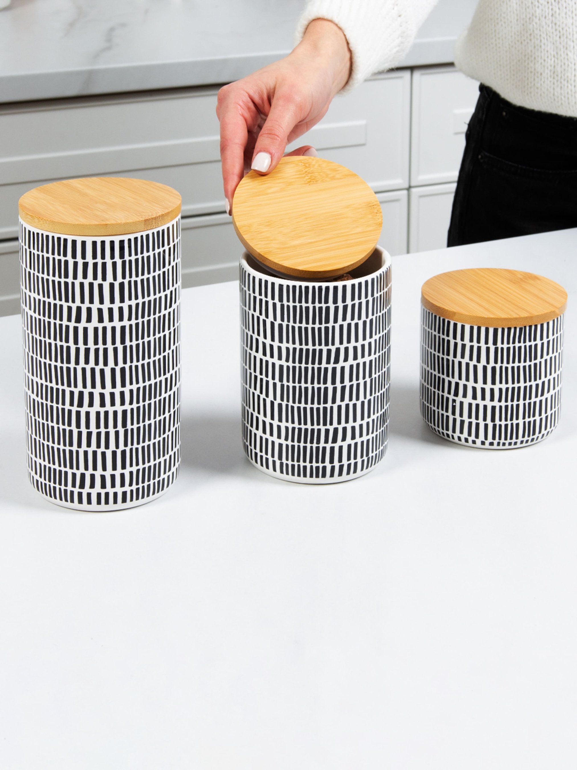 Ємність для зберігання з візерунком сіра/дерево MBM HOME модель KP-16 L GRAY/WOOD