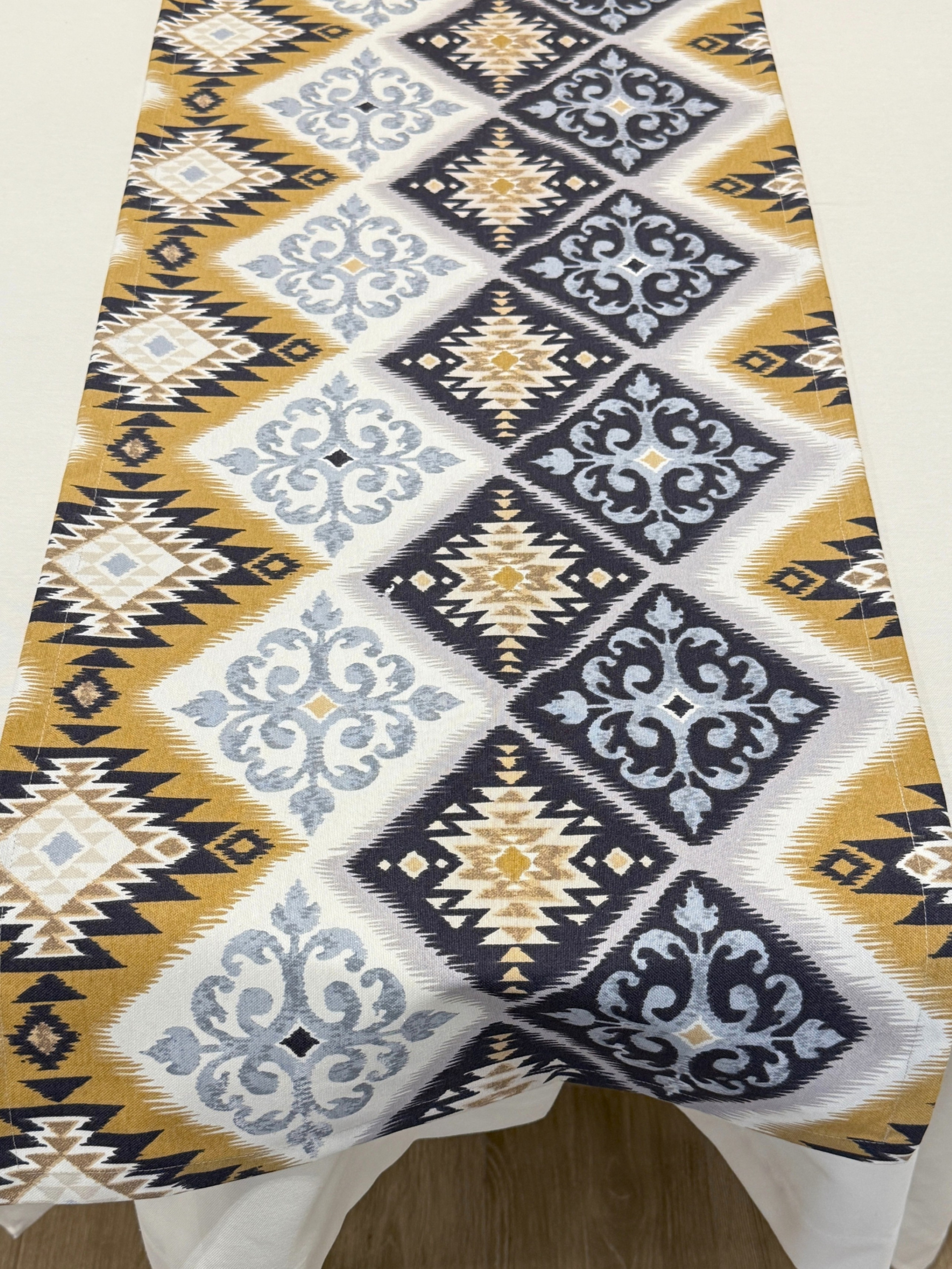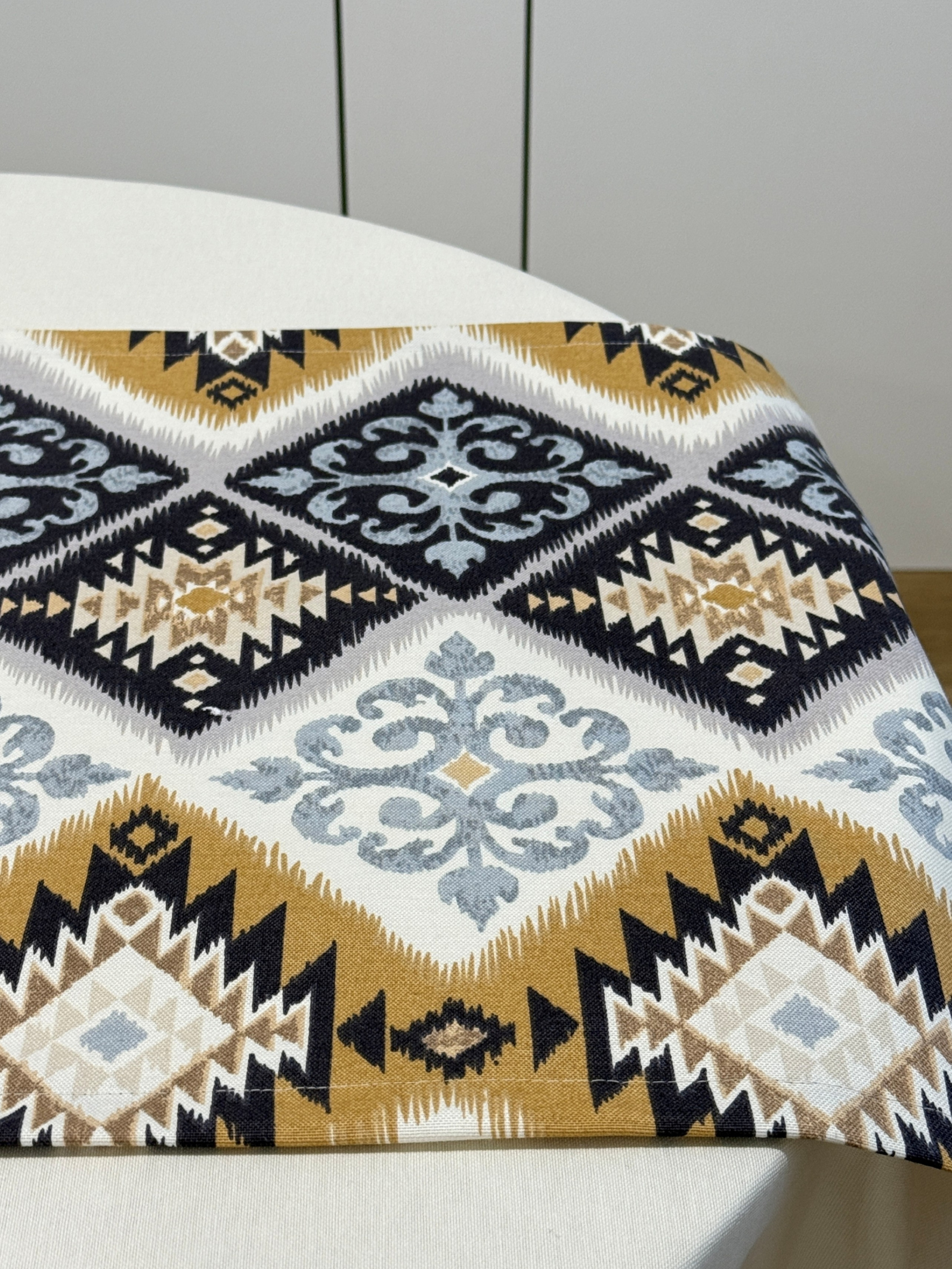 Ранер виготовлений з тканини Duck, що має водо- та брудовідштовхувальні властивості.Тканина проходить спеціальну обробку тефлоновим просоченням, що створює бар'єр для всіх видів рідин: води, напоїв, навіть жирних соусів, олії.Їх легко видалити за допомогою звичайної серветки.
