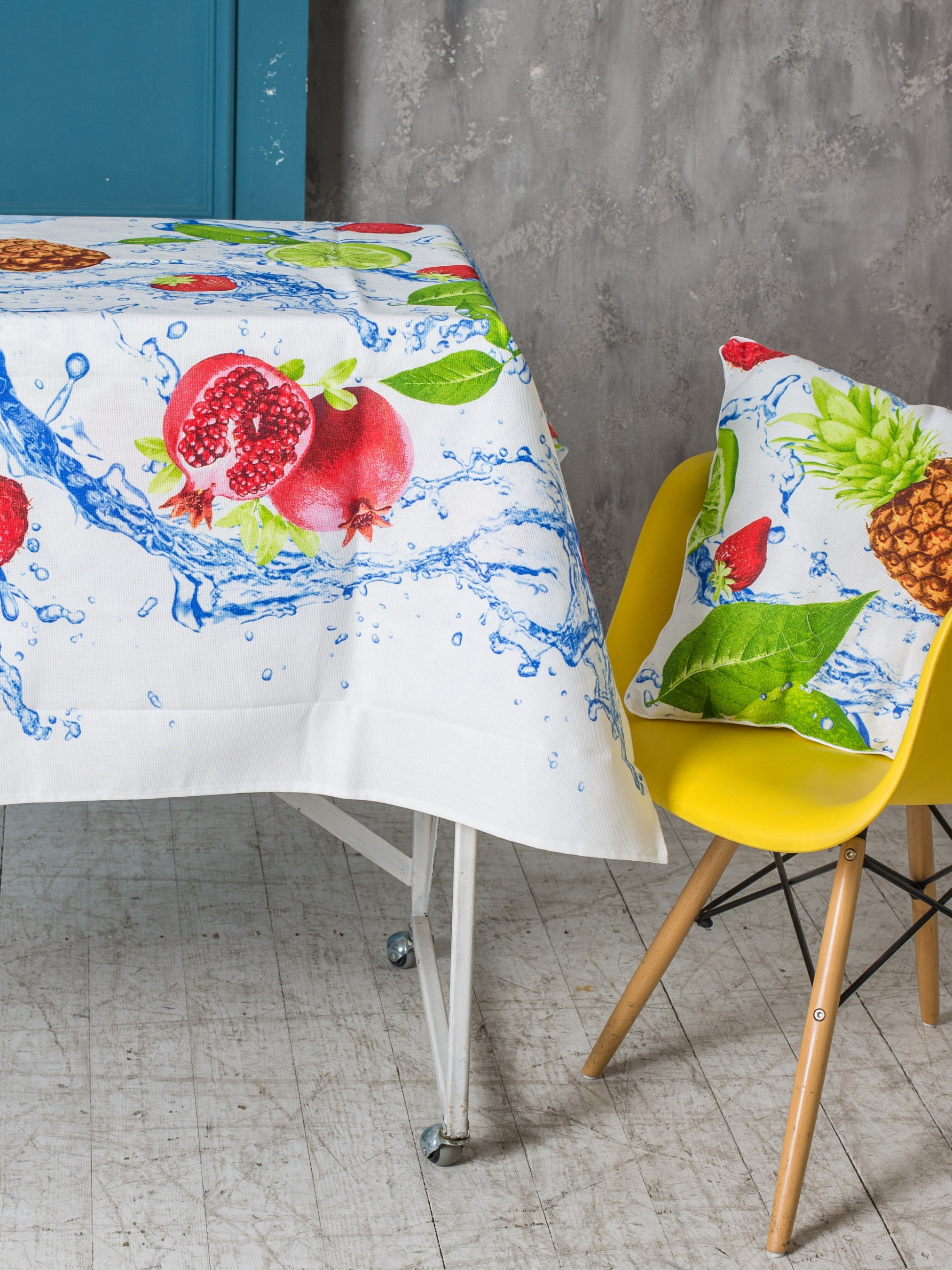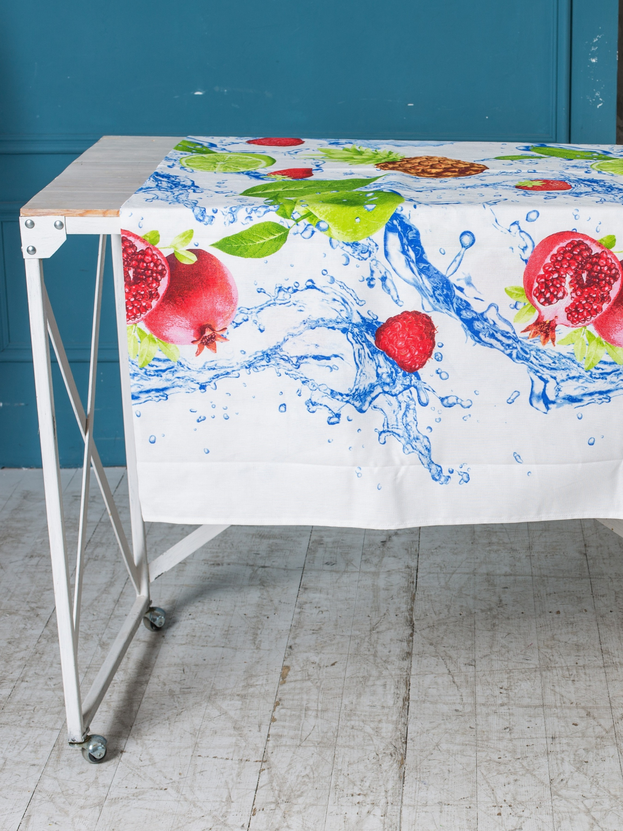 Скатертина бавовняна біла з фруктами Фреш Ecotton модель 19662