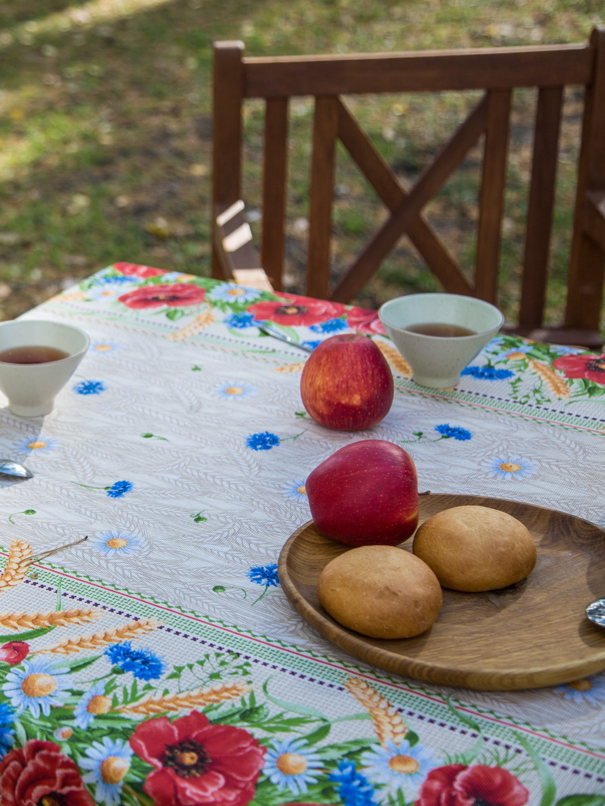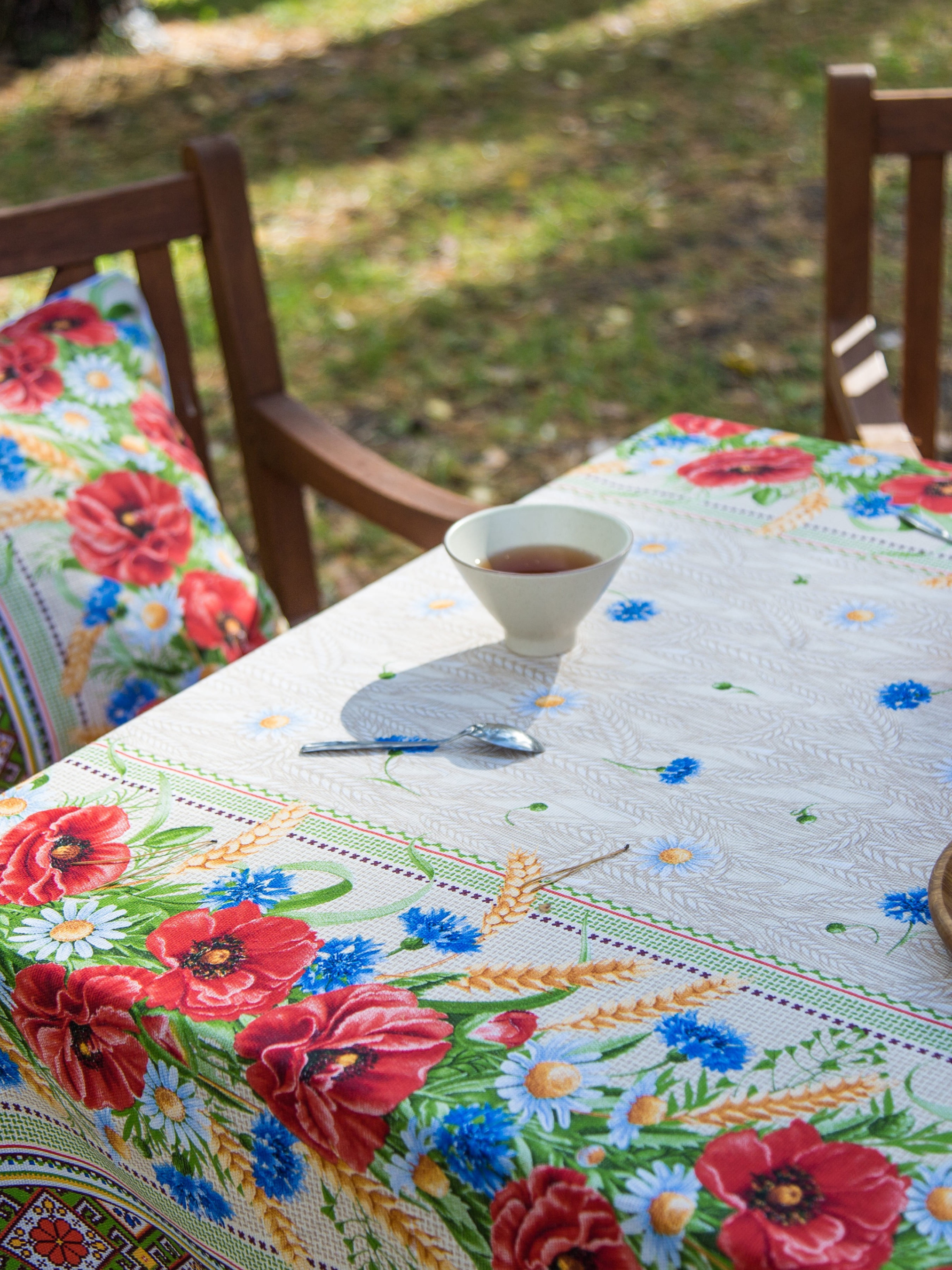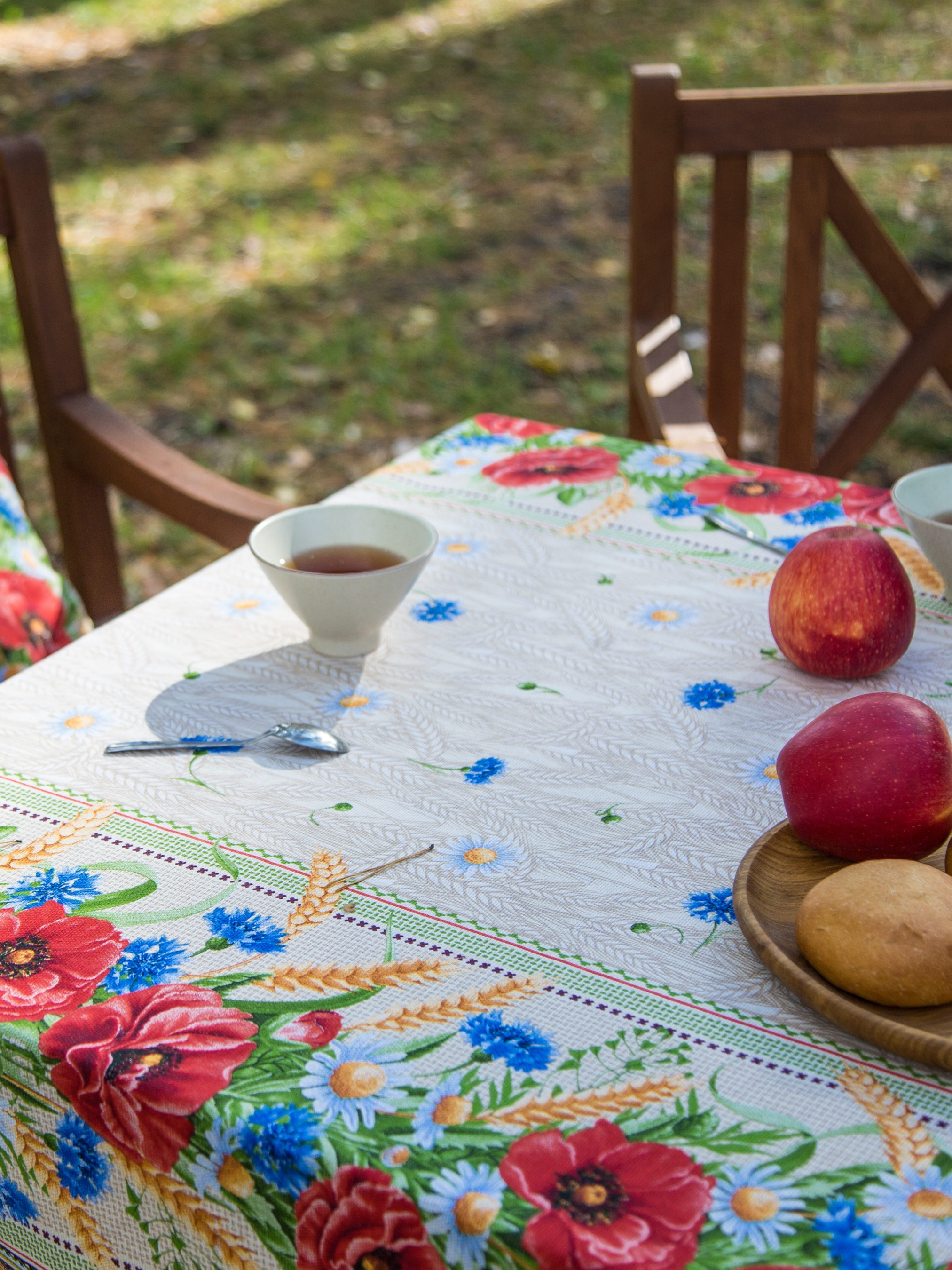 Скатертина бавовняна з квітами та колосками Ecotton модель 19913