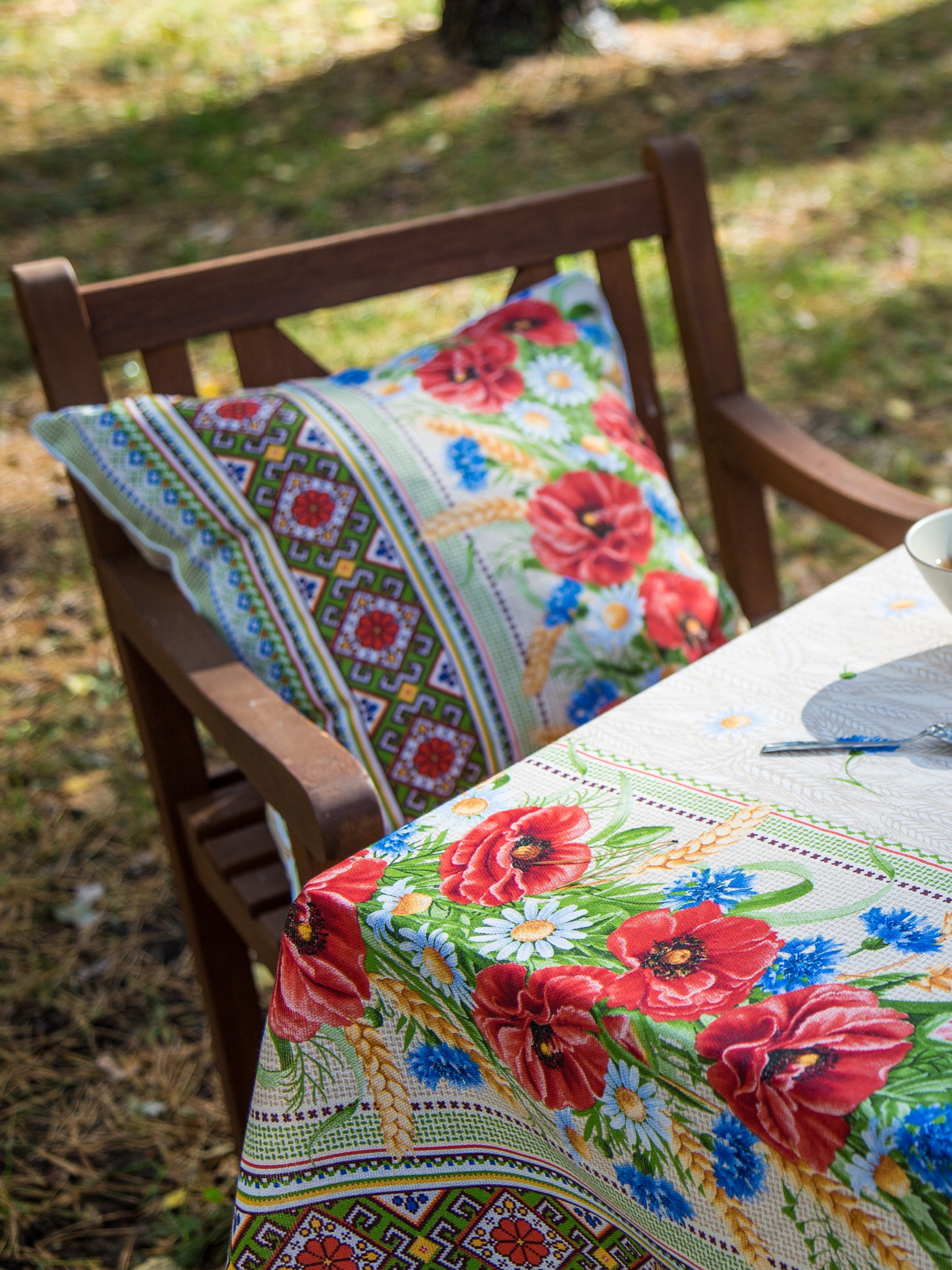 Бажаєте змінити дизайн інтер'єру без істотних витрат? Все, що потрібно для цього – оновити свій текстиль. Найголовніше – правильно вибрати колірну гаму. Адже саме фіранки, покривала, скатертини, серветки, подушки здатні перетворити інтер'єр, зробити його оригінальним та затишним. Найкращий варіант для пошиття таких виробів – тканина «рогожка», що нагадує лляне полотно з нанесеним малюнком. За технічними характеристиками – це міцний матеріал, що не вимагає спеціального догляду, легко піддається термообробці, сухому та вологому чищенню, навіть при високих температурах. Оскільки рогожка має високий ступінь зносостійкості, це ідеальна тканина для пошиття скатертини. Тому часті прання (але з дотриманням наших рекомендацій) не псують цю тканину: ні її зовнішній вигляд, ні властивості. * Увага! Колір і відтінок може відрізнятися, залежно від налаштувань монітора (яскравість, контраст, насиченість), а також освітлення. * Прання виробів з нейтральними миючими засобами у теплій воді при максимальній температурі 40°С. * Не відбілювати, не можна використовувати миючі засоби, що містять хлор, і пральні порошки з відбілювачами. * Гладити при середній температурі (до 150°С). * Делікатне віджимання та сушка.