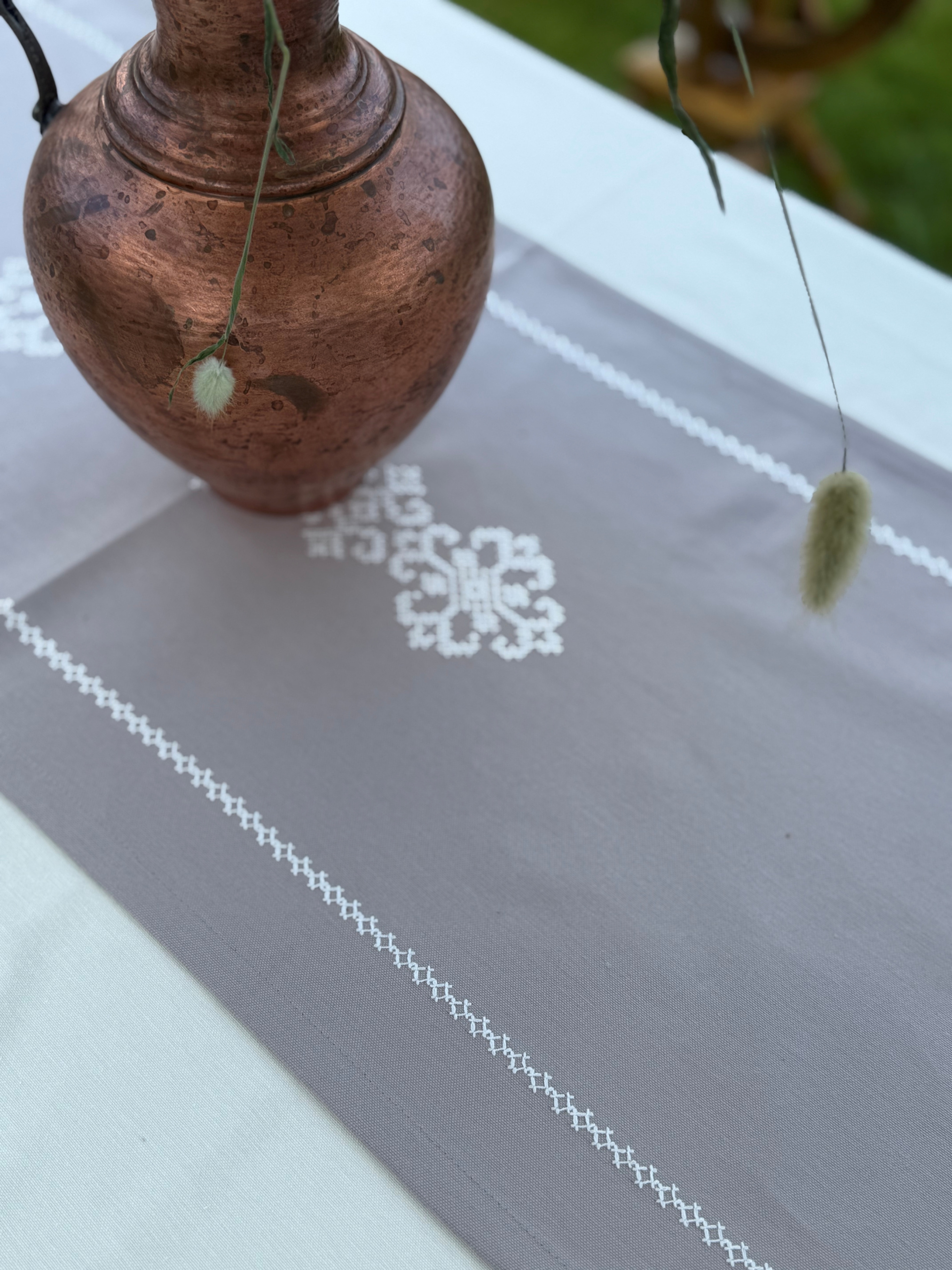 EcottonРанер-доріжка для обіднього столу з вишивкою White on Grey водовідштовхуюча в подарунковій упаковці