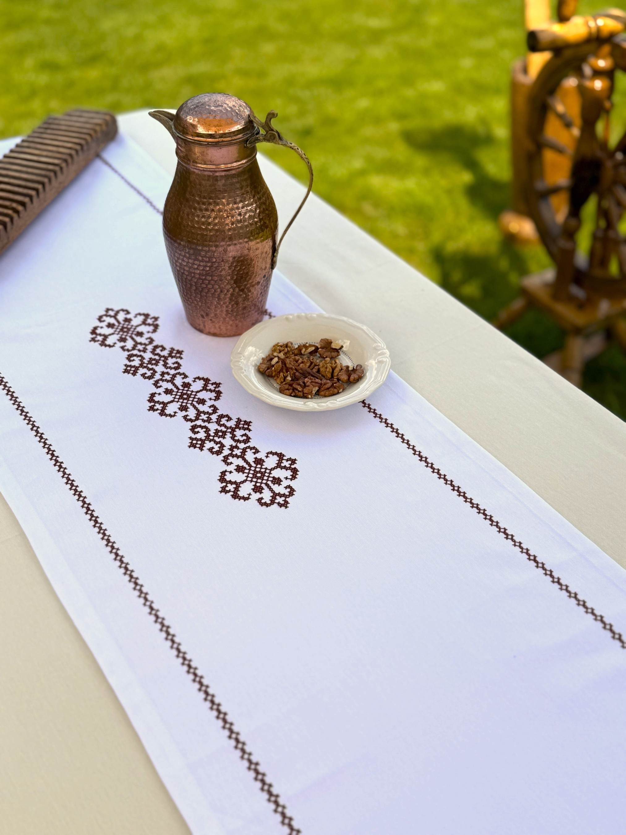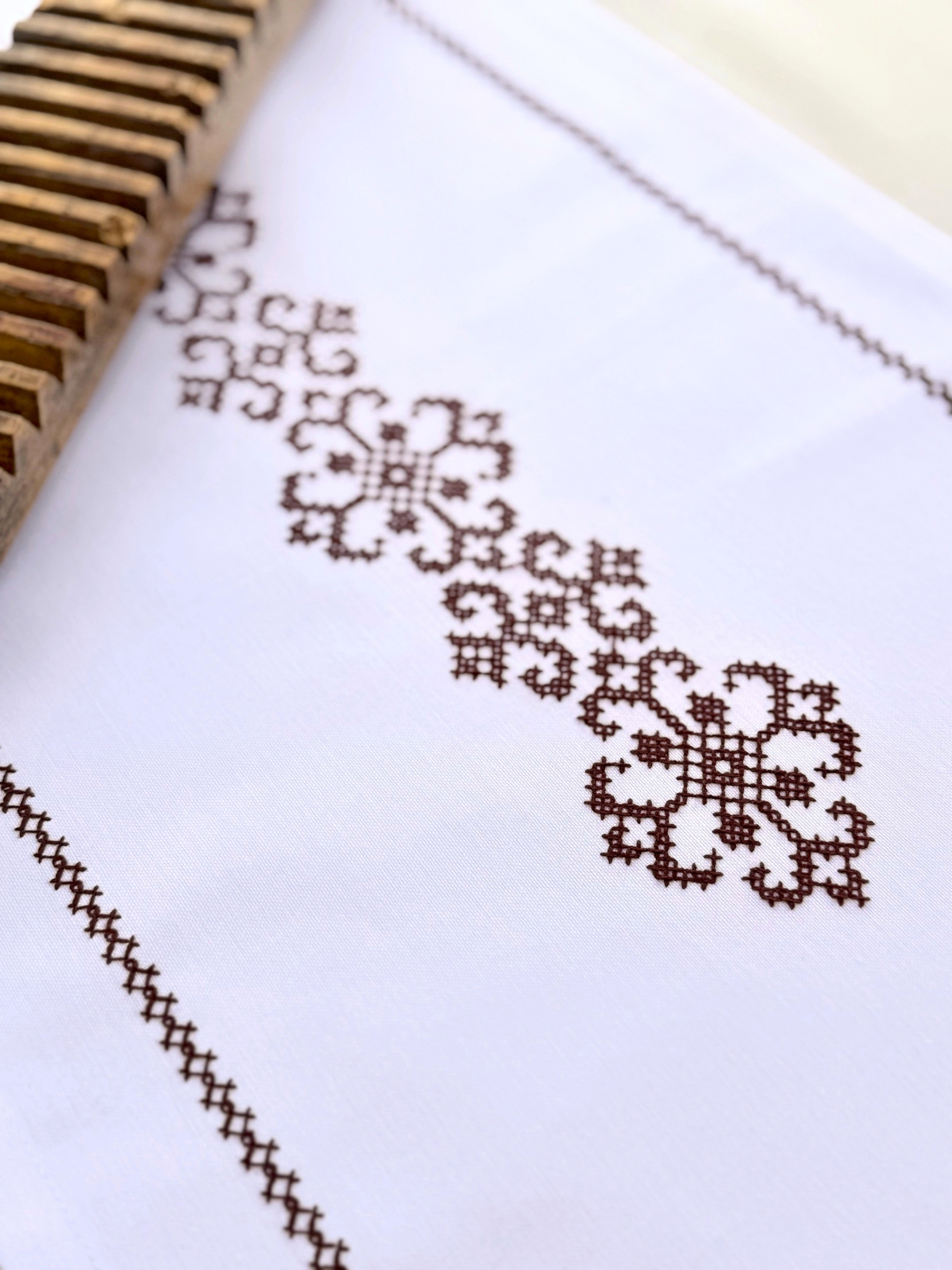 EcottonРанер-доріжка для обіднього столу з вишивкою Brown on White водовідштовхуюча в подарунковій упаковці
