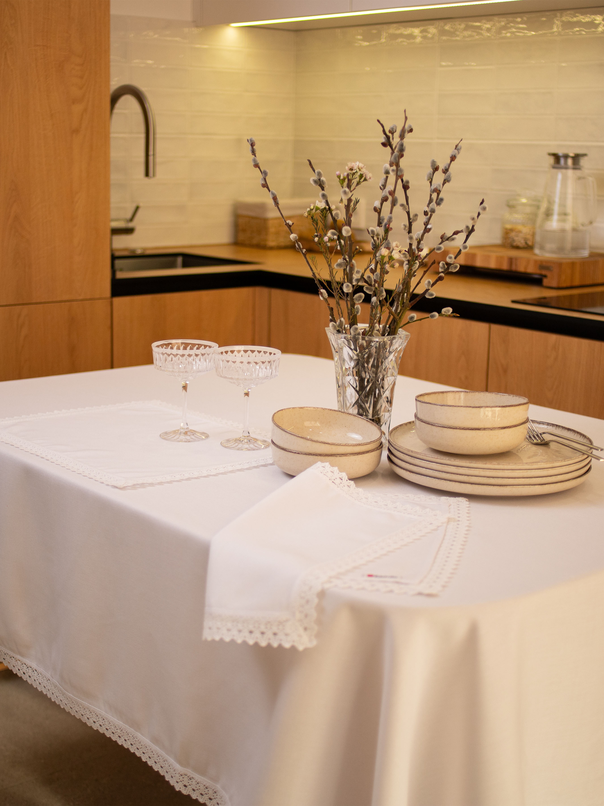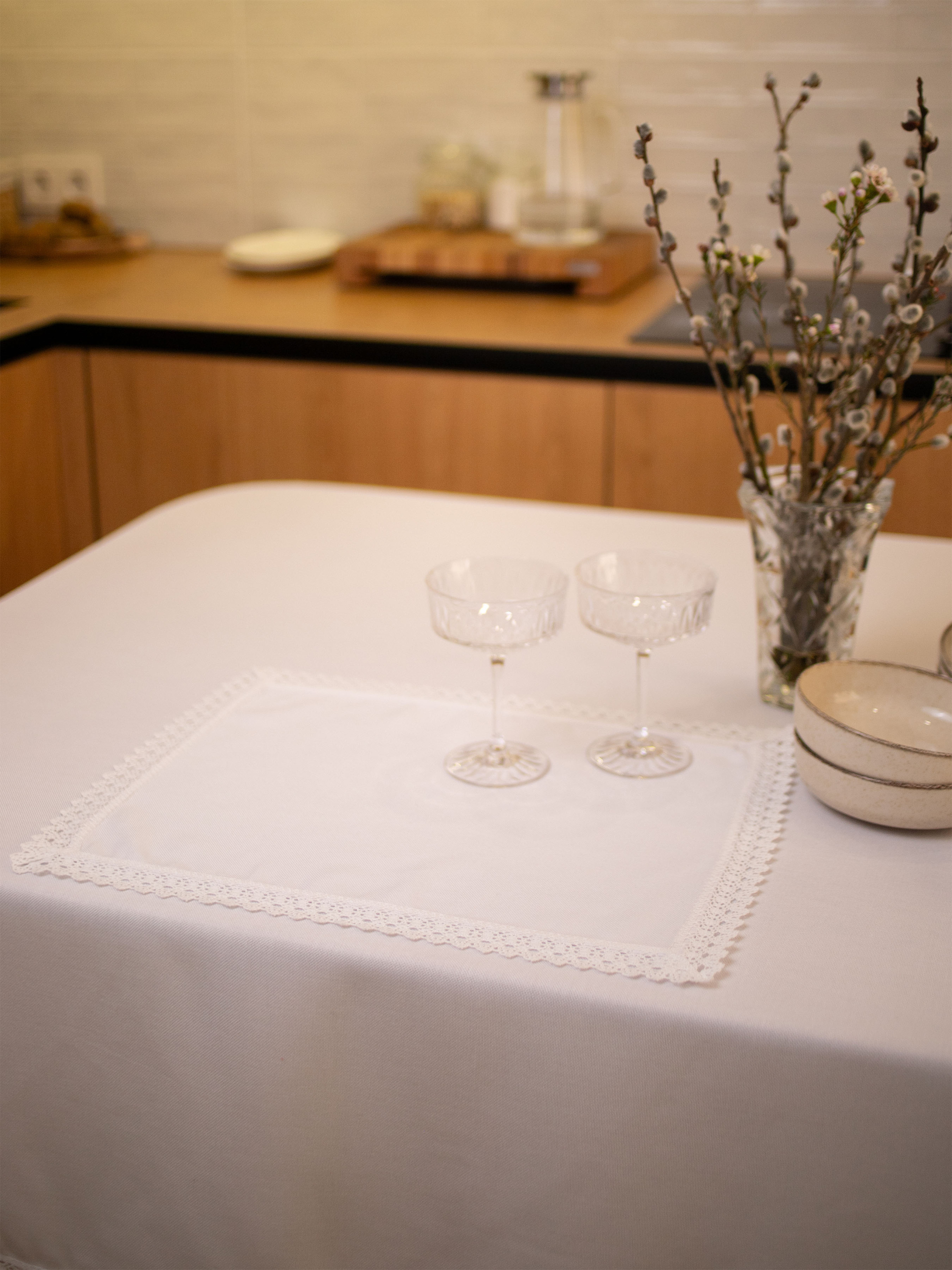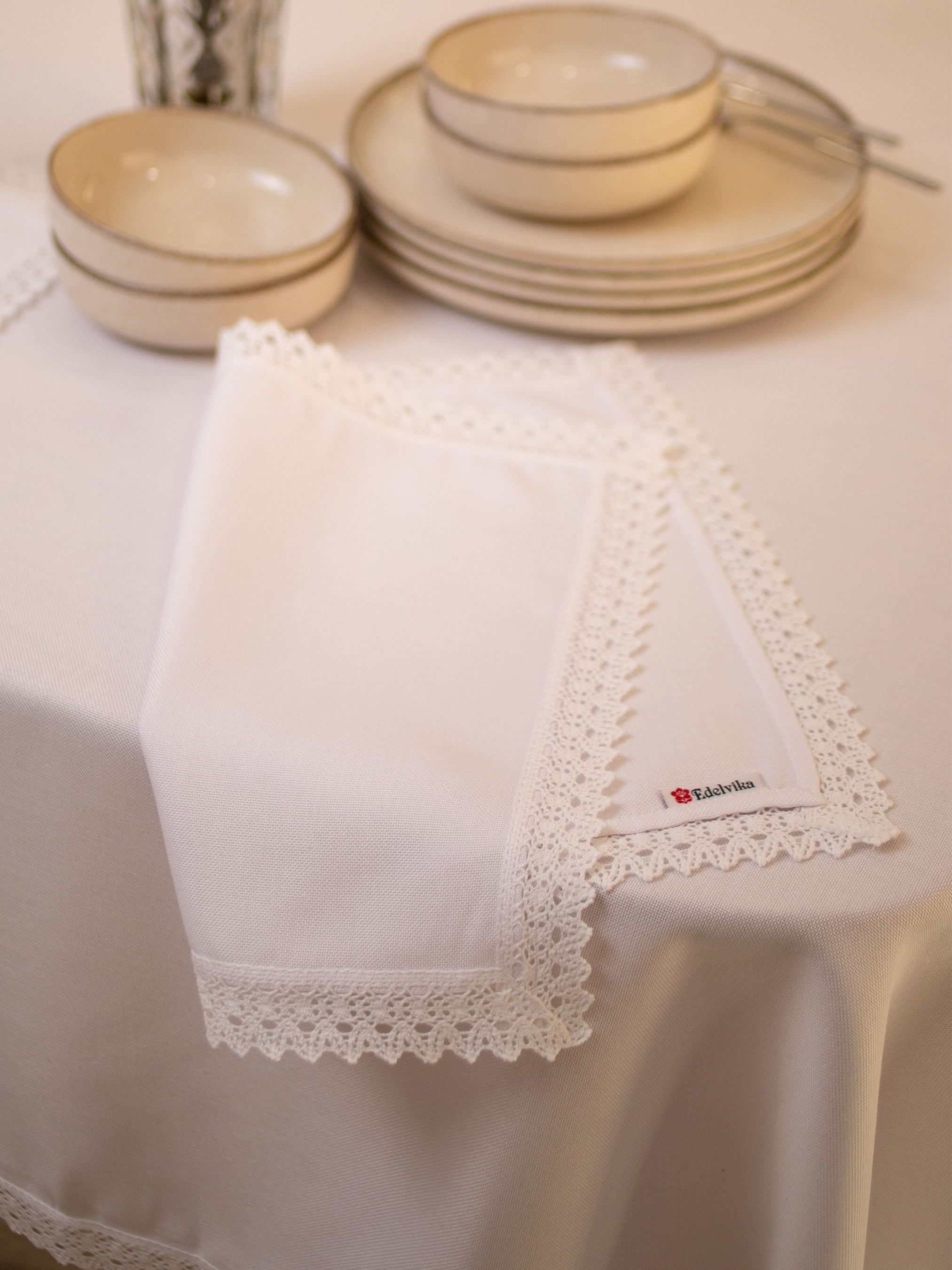 Універсальний комплект з двох серветок з поліестеру та модалу в білому кольорі стане елегантним доповненням до будь-якого святкового чи повсякденного столу. Вишукані мереживні краї додають витонченості та ніжності, роблячи ці серветки ідеальними для різних випадків. Цей комплект серветок чудово поєднується як з класичними, так і сучасними стилями сервірування. Їх можна використовувати з білими або кремовими скатертинами, що створить вишукану і стриману атмосферу. Також серветки чудово виглядатимуть в з яскравими кольорами текстилю, додаючи особливих акцентів у вашому інтер’єрі. Такий комплект підійде для святкових подій, а також для повсякденних обідів, коли хочеться створити атмосферу затишку та невимушеності.