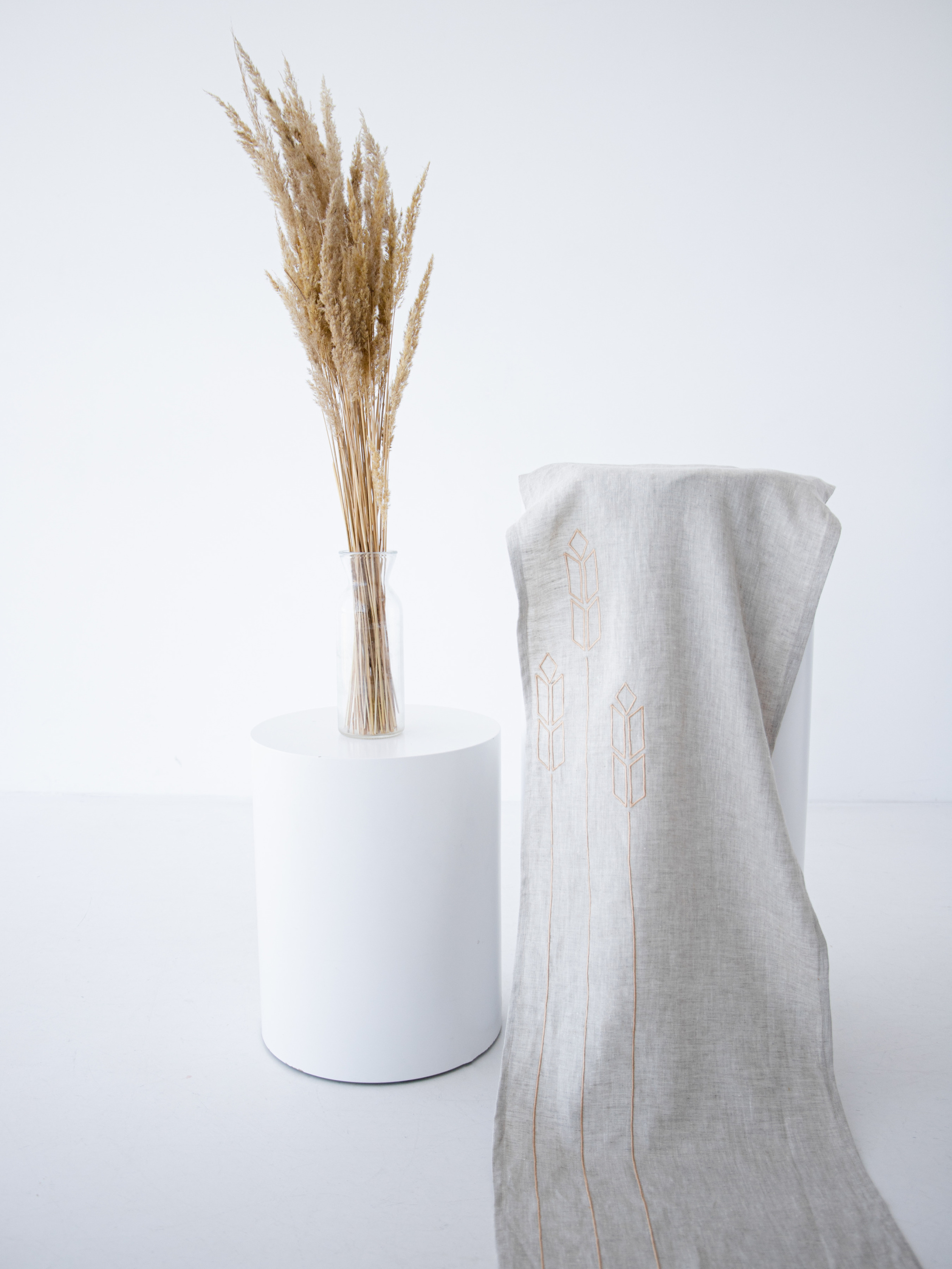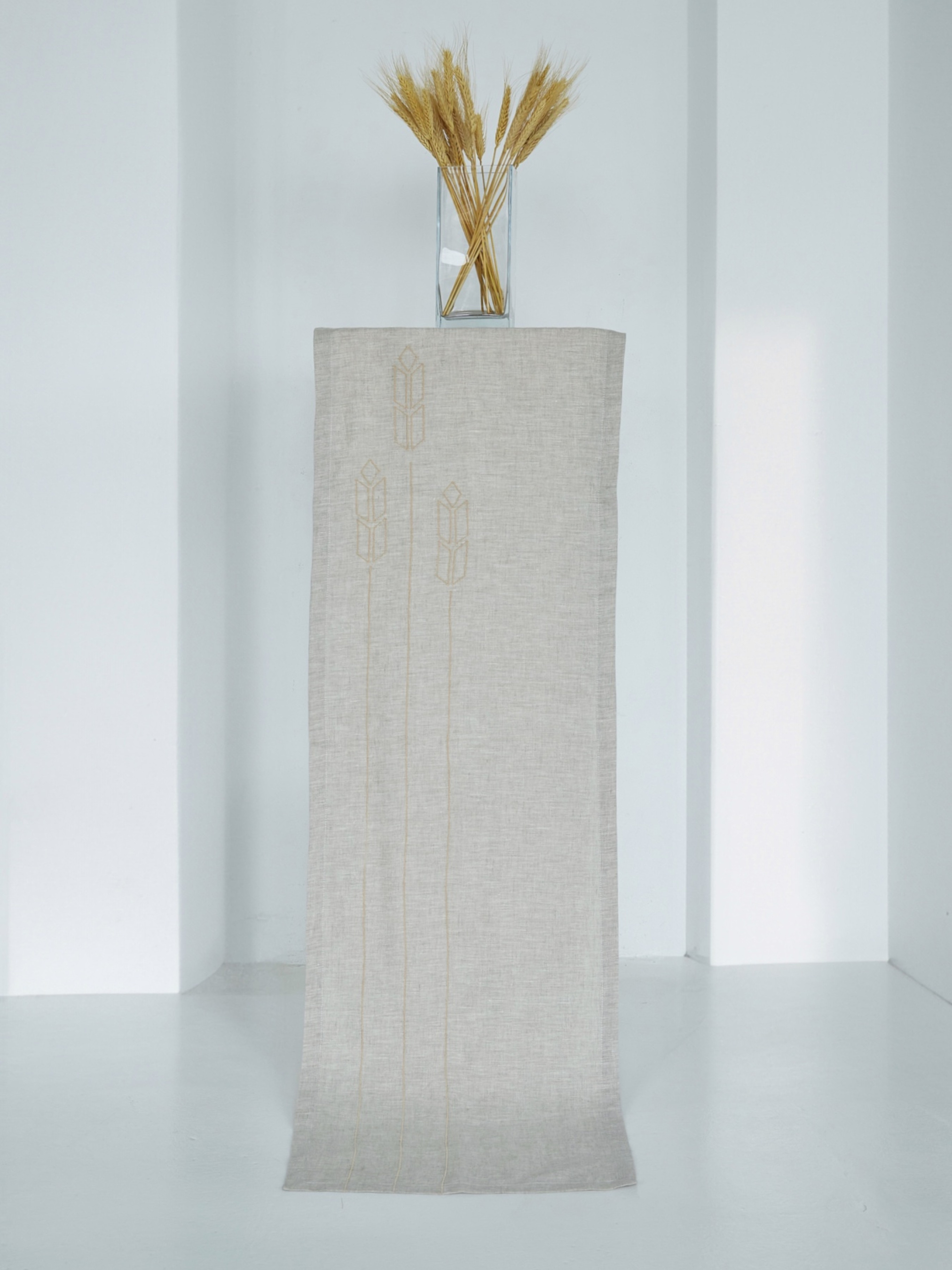 Ранер (доріжка) з льону з машинною вишивкою "Колоски" GNIZDO модель LRMESC-001-S
