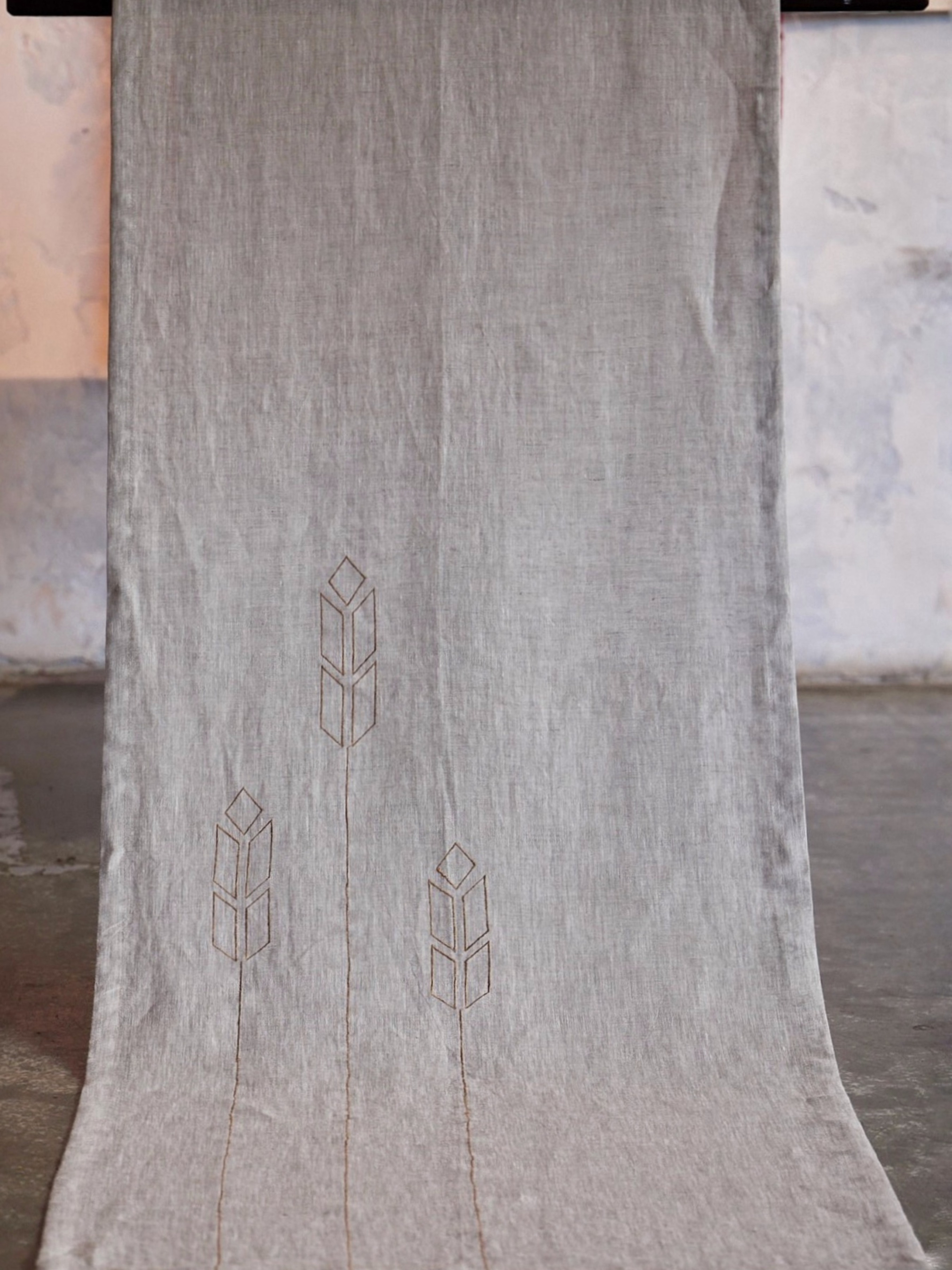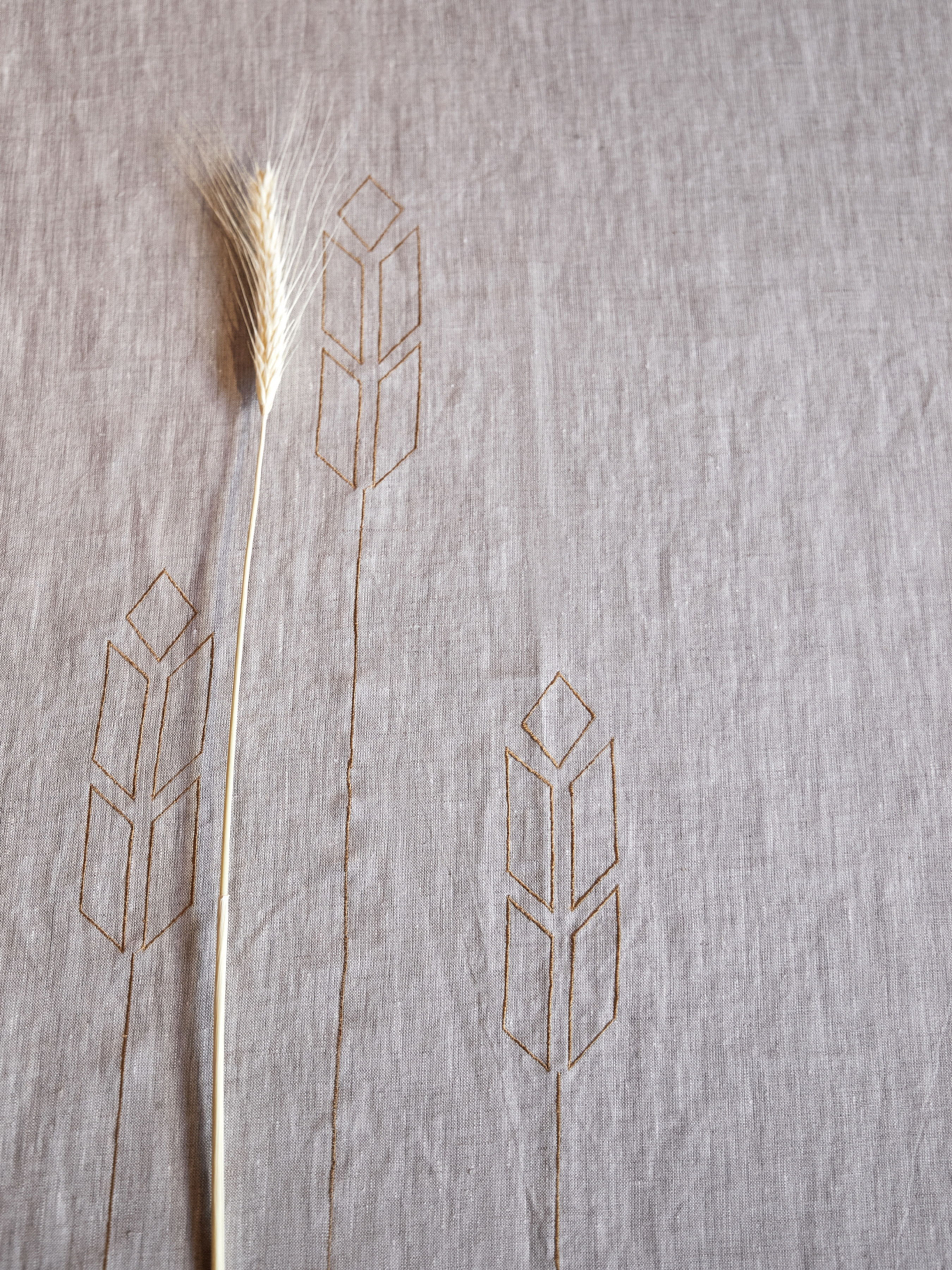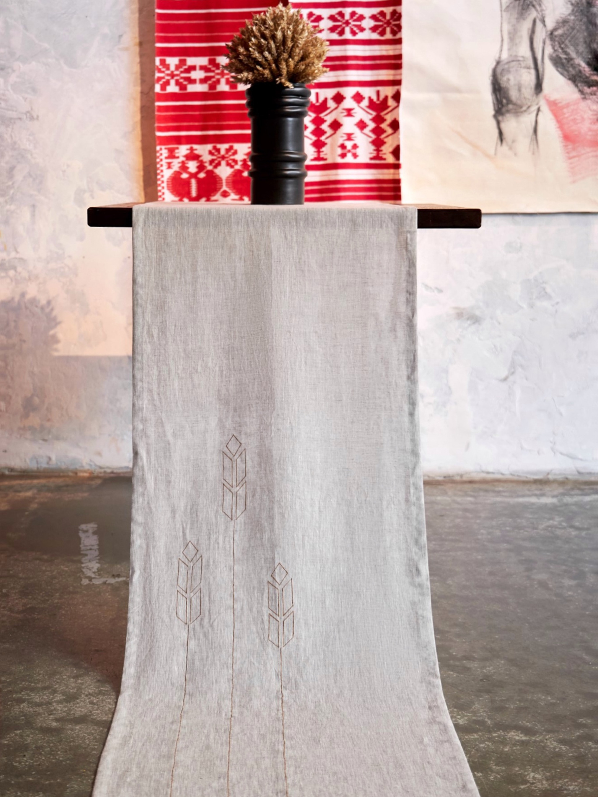 Колекція "Колоски" — це творчий витвір, присвячений українському зерну, що став символом плодючості та національної гордості. Переосмислені форми колосків, представлені у геометричній симетрії, втілюють в собі витончені мотиви та дизайни, нагадуючи нам про сакральне значення зерна в нашій культурі. Зерно, як символічний елемент, відтіняється у різних формах, виражаючи його багатогранність та символізуючи плідність, розквіт та достаток. Колекція "Колоски" не лише передає глибинну пошану до історії та культурної цінності зерна в Україні, але й акцентує увагу на збереженні сільськогосподарських традицій нашої країни. Кожна геометрична форма колоска стає своєрідним сакральним символом, що витісняє історію України, від голодоморів 30-х років до сучасних викликів, таких як блокування зерна у портах 2022 року. Колекція "Колоски" — це наше визнання ціни кожного колоска, яку ми знаємо і поважаємо. Ця колекція, важлива для нашої нації, стає не лише мистецьким витвором, а й символом гідності, праці та вірності традиціям. Ми розділяємо не лише красу, а й працю та повагу до культури, яку маємо можливість дарувати світові. Доріжка лляна на стіл (ранер) з вишивкою Матеріал 100% небілений класичний льон, машинна вишивка