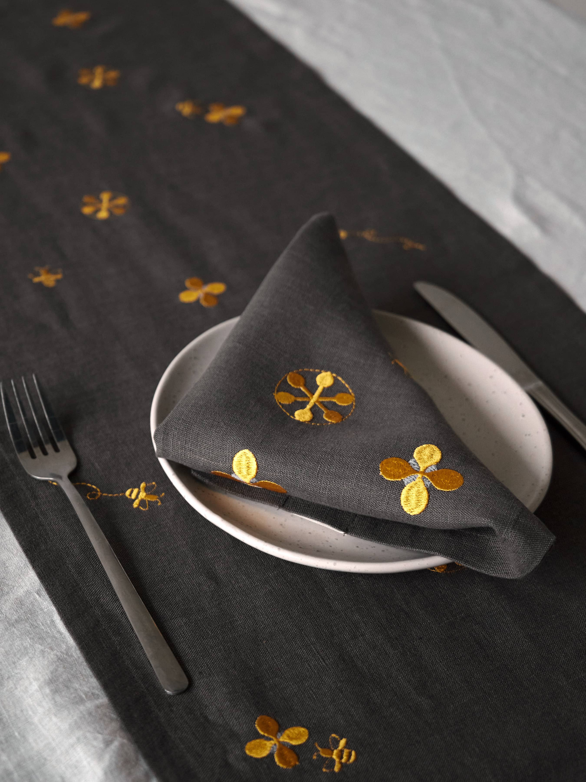 GNIZDOНабір з 2-х серветок столових з льону з машинною вишивкою "Мед" в кольорі графіт